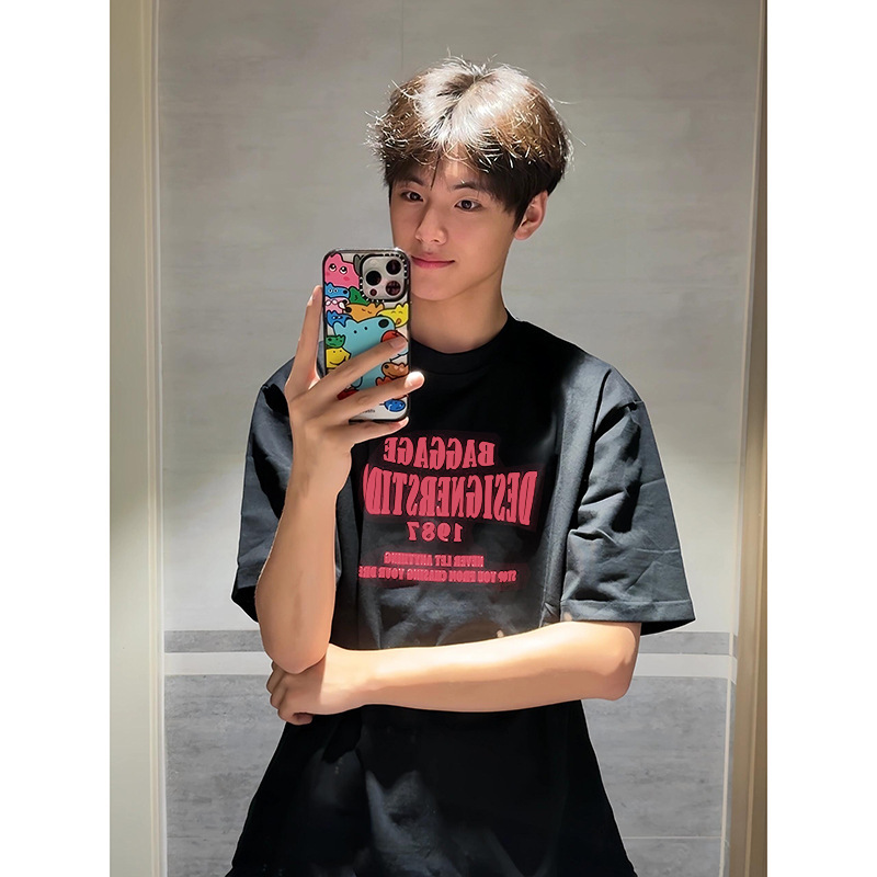아메리칸 스타일 헤비 숄더 티셔츠 남성용 여름 십대 스타일 신형 핸즈좀 반팔 클렌핏 작은 칼라 반소매 숄더 티셔츠스토어 가기