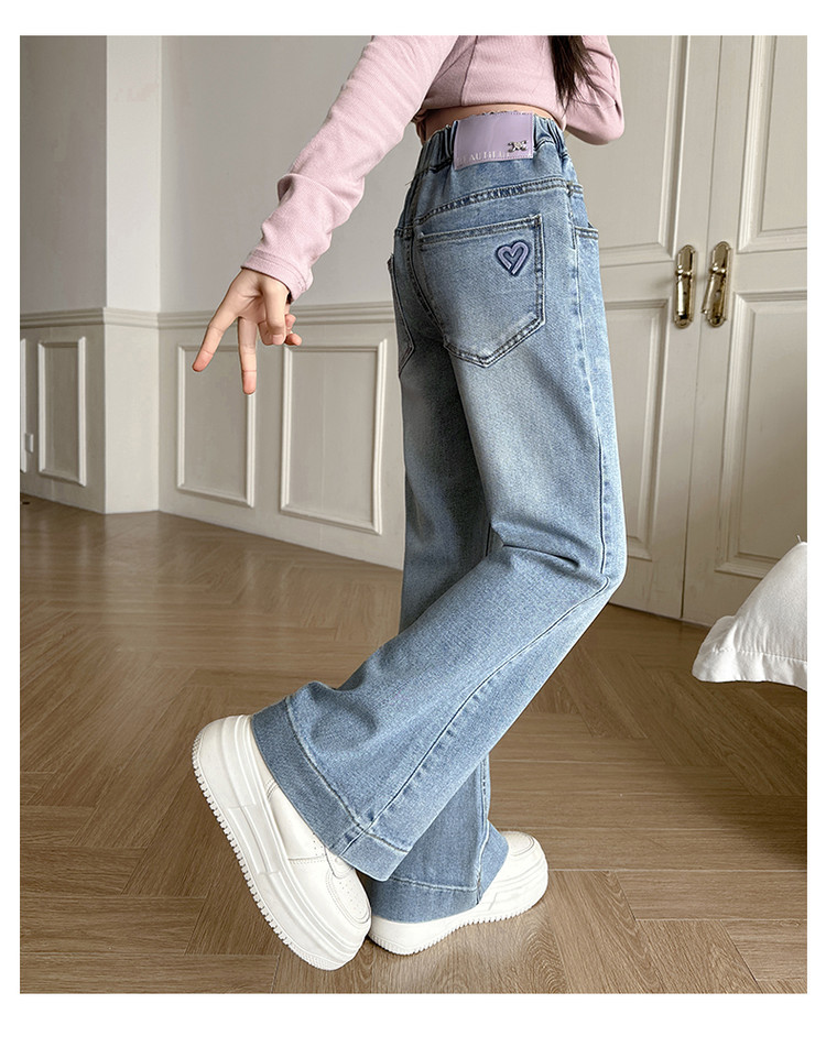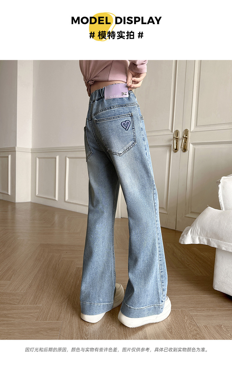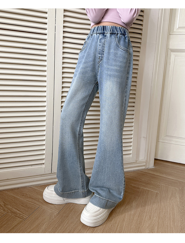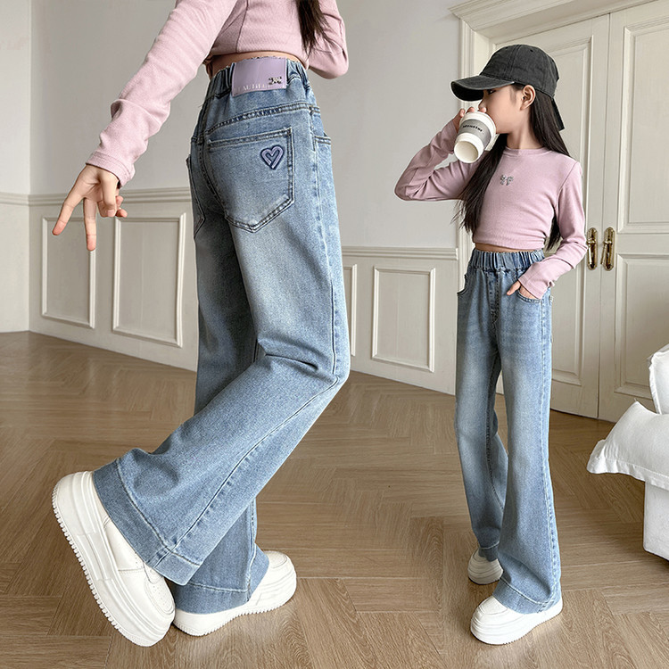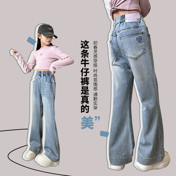 소녀 청바지 봄과 가을 2025 새로운 플레어 바지 소녀의 봄 캐주얼 바지 어린이 봄 유행 바지스토어 가기