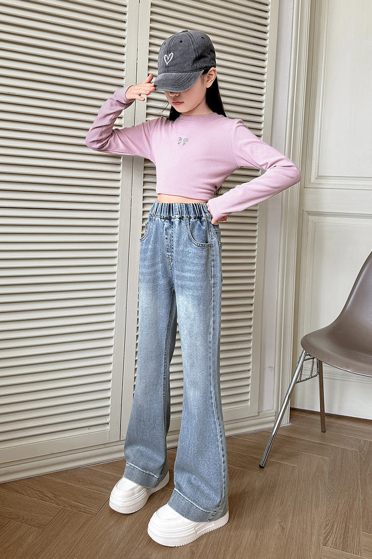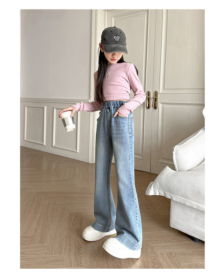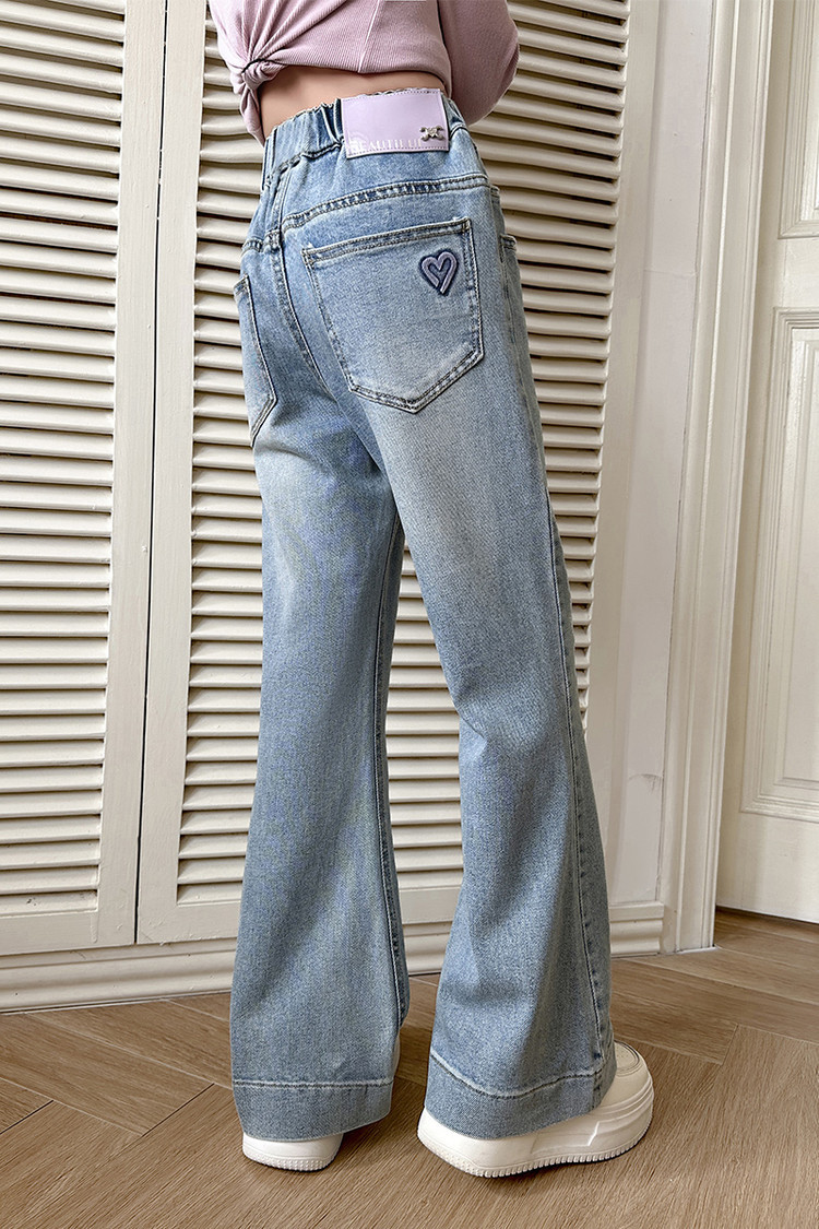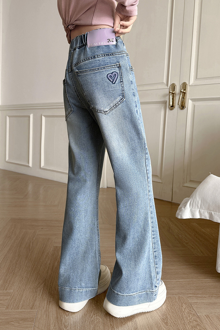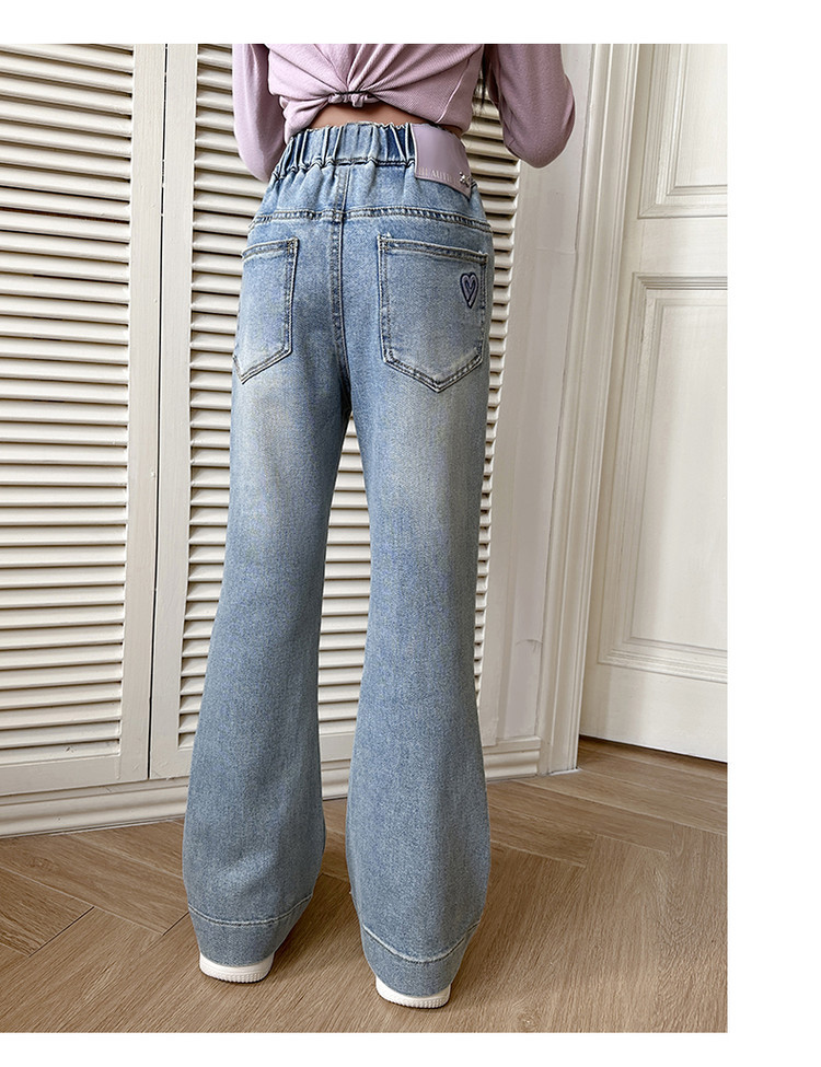 소녀 청바지 봄과 가을 2025 새로운 플레어 바지 소녀의 봄 캐주얼 바지 어린이 봄 유행 바지스토어 가기