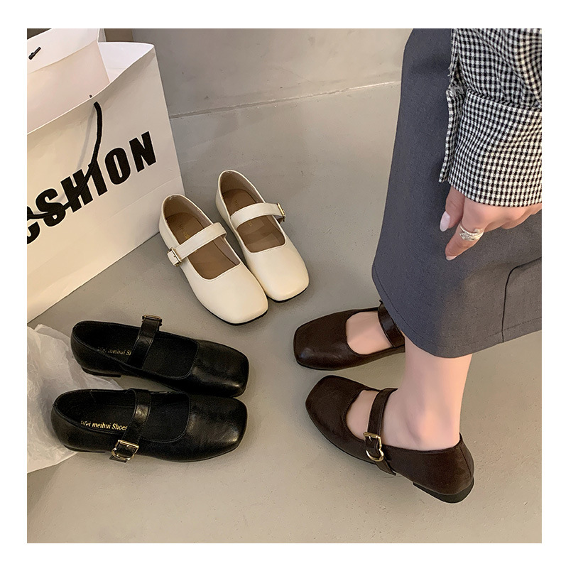 프랑스 레트로 얕은 입 늦은 저녁 바람 2025 봄 새로운 도착 한국 스타일 가죽 신발, 여성을위한 올 매치 스퀘어 발가락 소프트 솔스토어 가기