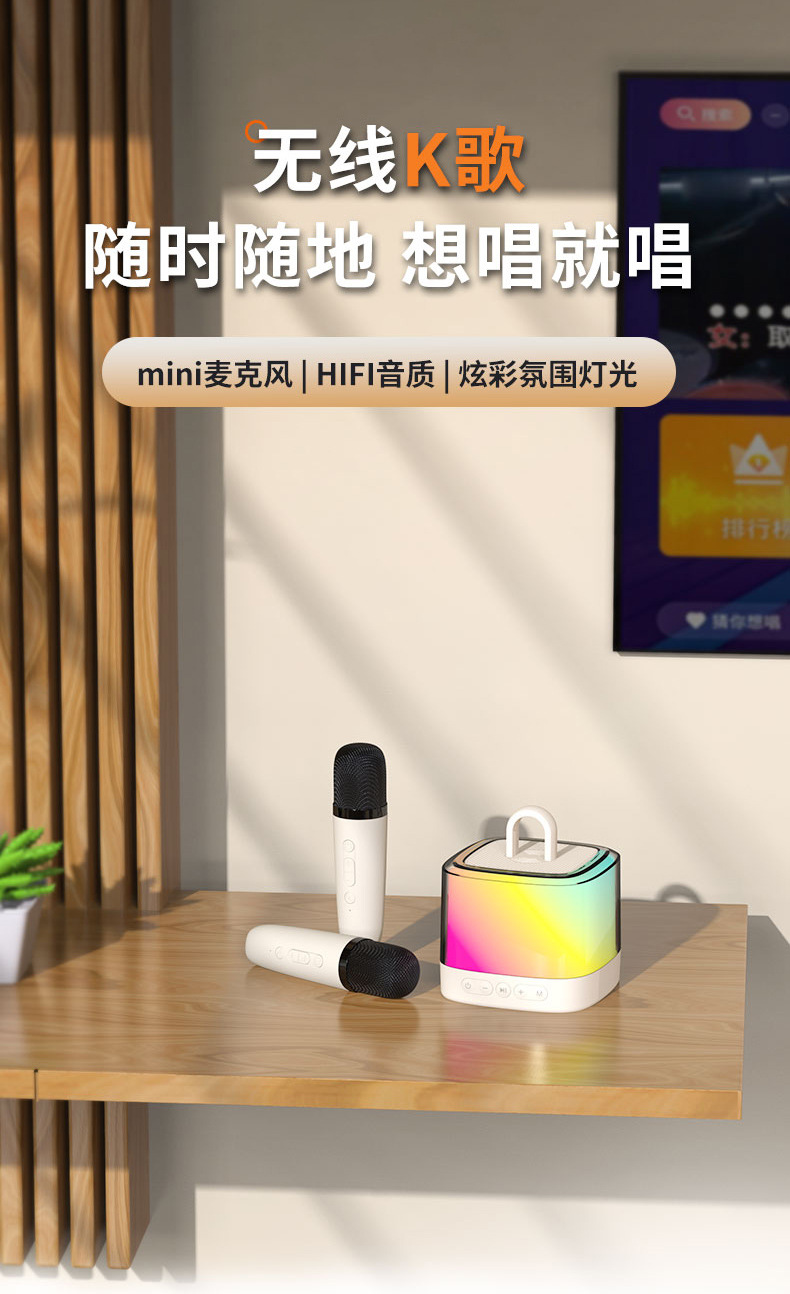 새로운 무선 K-노래 블루투스 스피커 휴대용 홈 야외 노래방 다채로운 분위기 빛 K-노래 통합 사운드스토어 가기