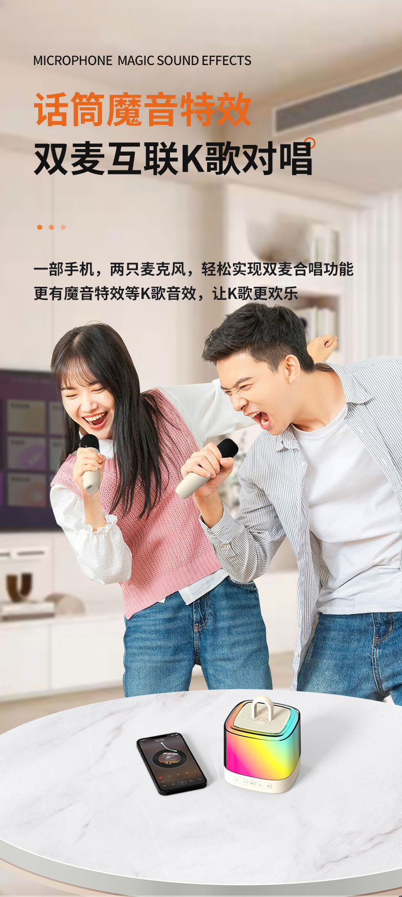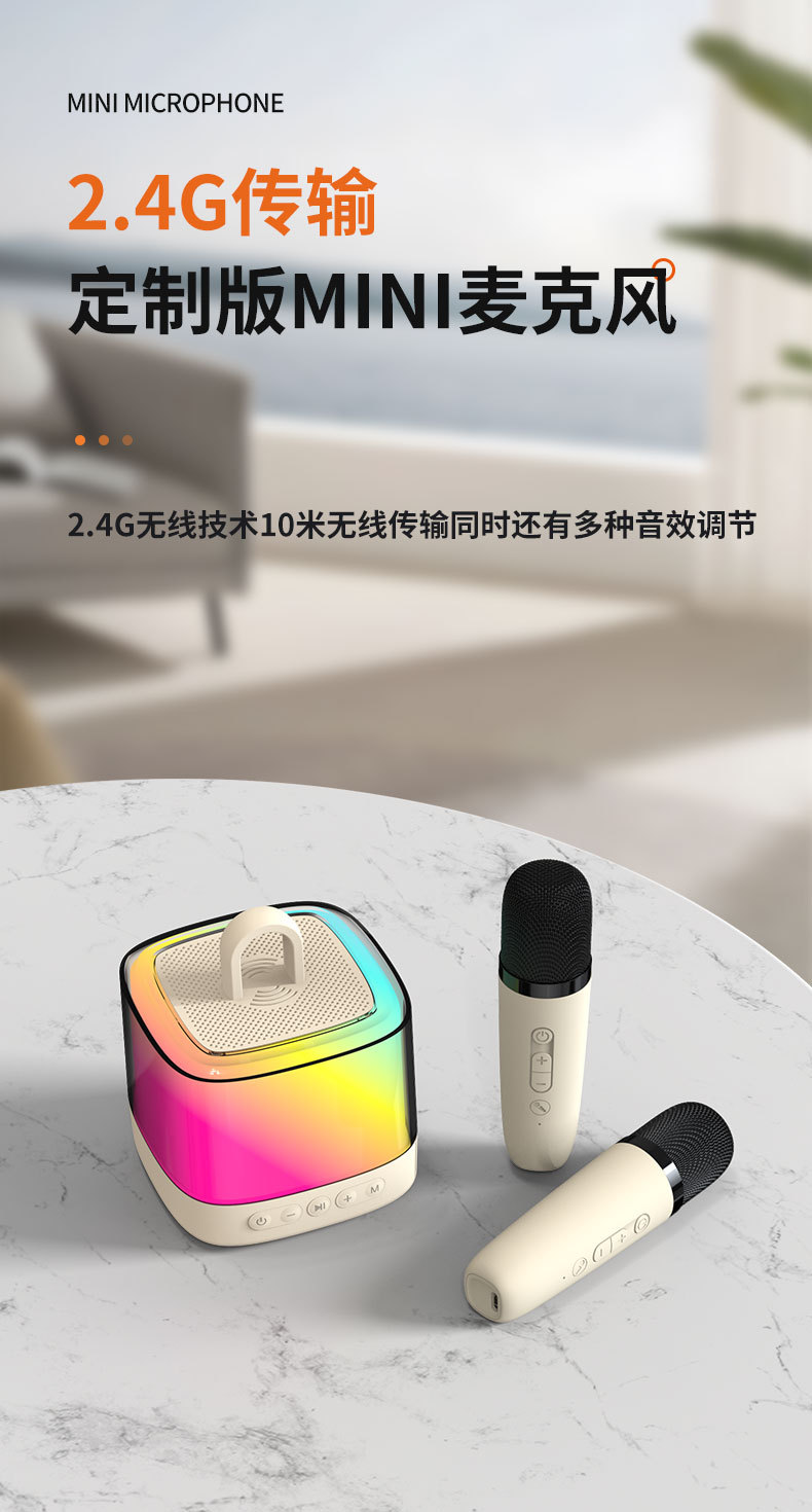 새로운 무선 K-노래 블루투스 스피커 휴대용 홈 야외 노래방 다채로운 분위기 빛 K-노래 통합 사운드