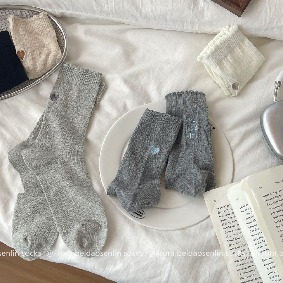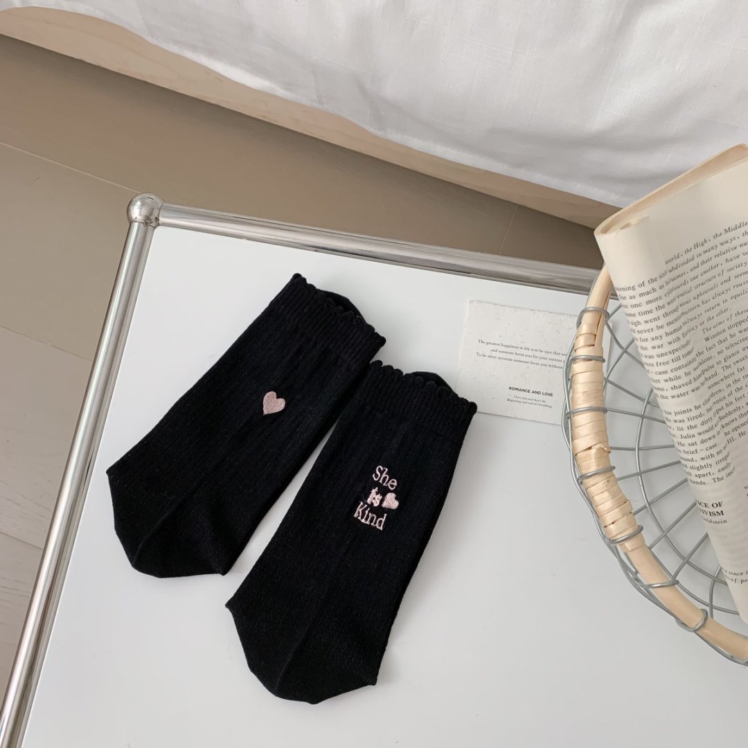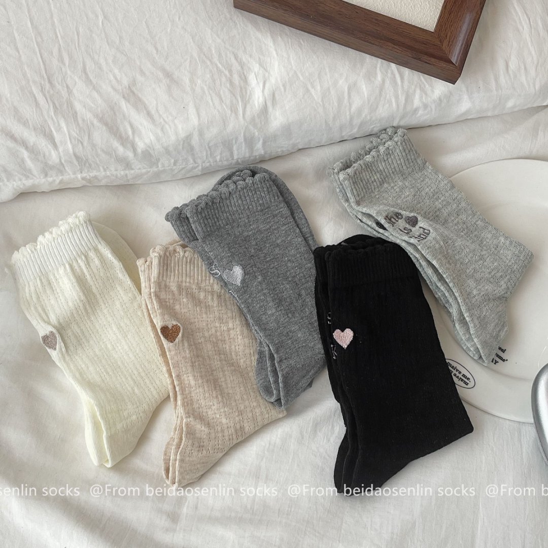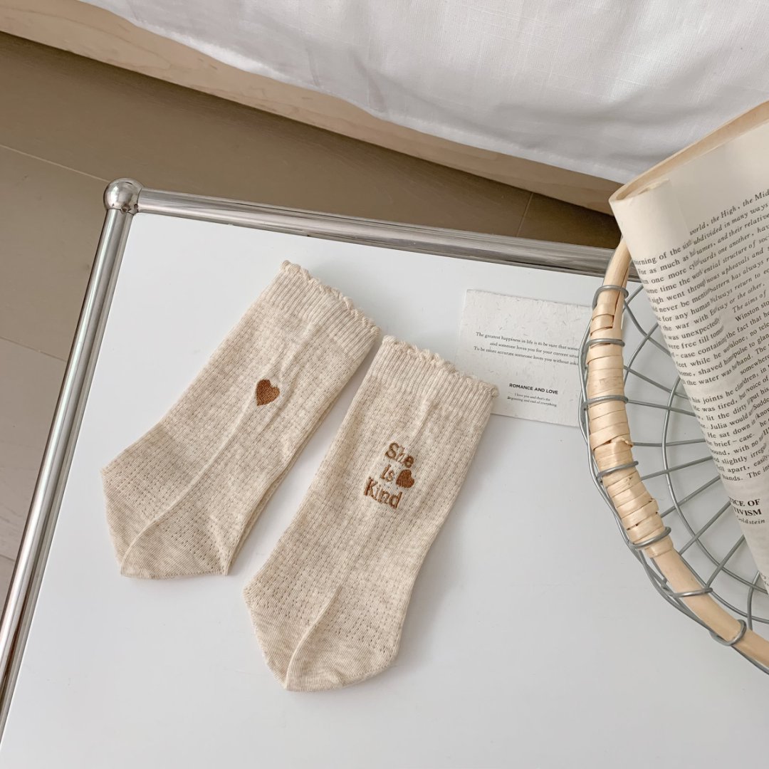 봄과 여름 여성 양말 새로운 중반 송아지 양말 수 놓은 사랑 메쉬 더미 양말 유행 한국 양말 여성 Zhuji 양말스토어 가기
