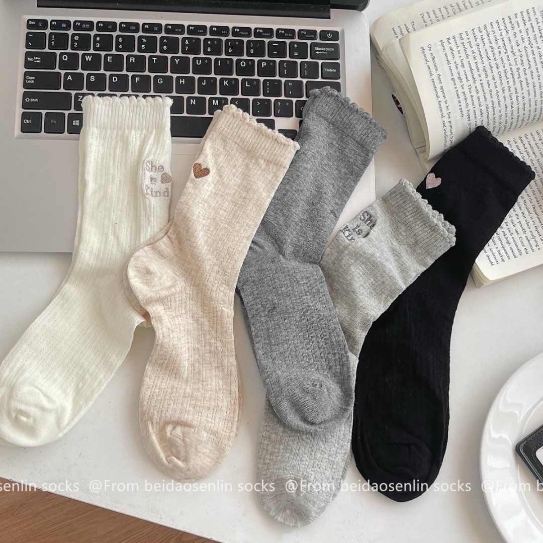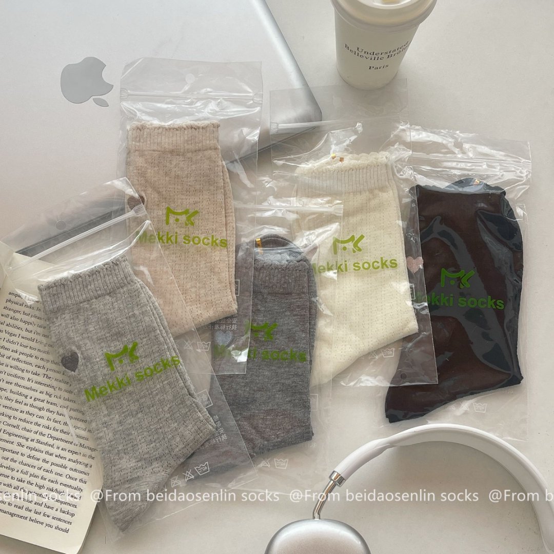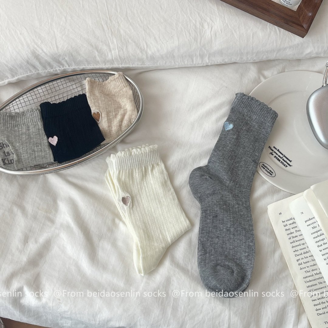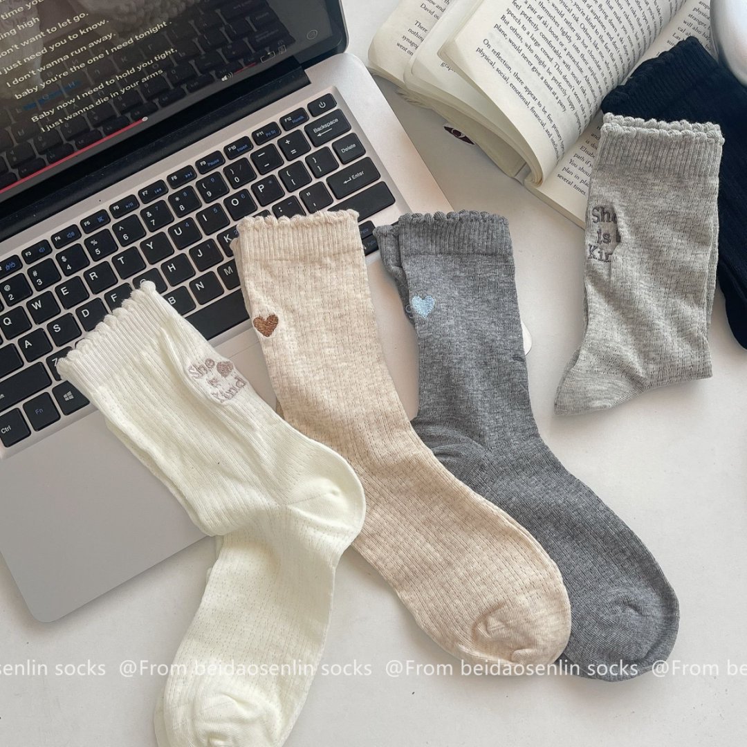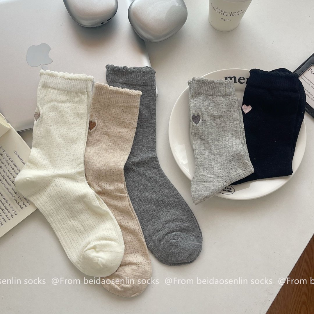 봄과 여름 여성 양말 새로운 중반 송아지 양말 수 놓은 사랑 메쉬 더미 양말 유행 한국 양말 여성 Zhuji 양말스토어 가기