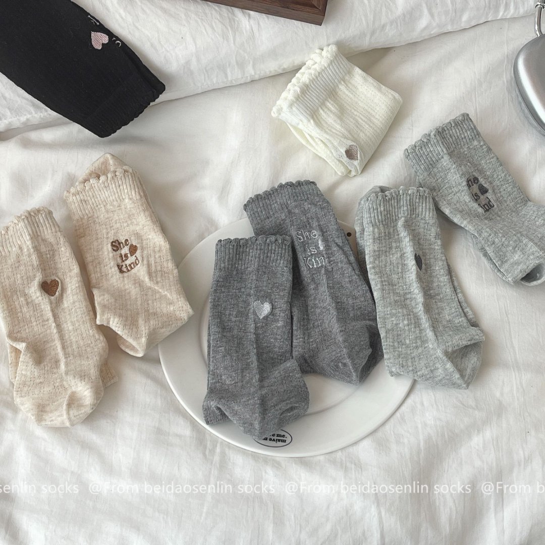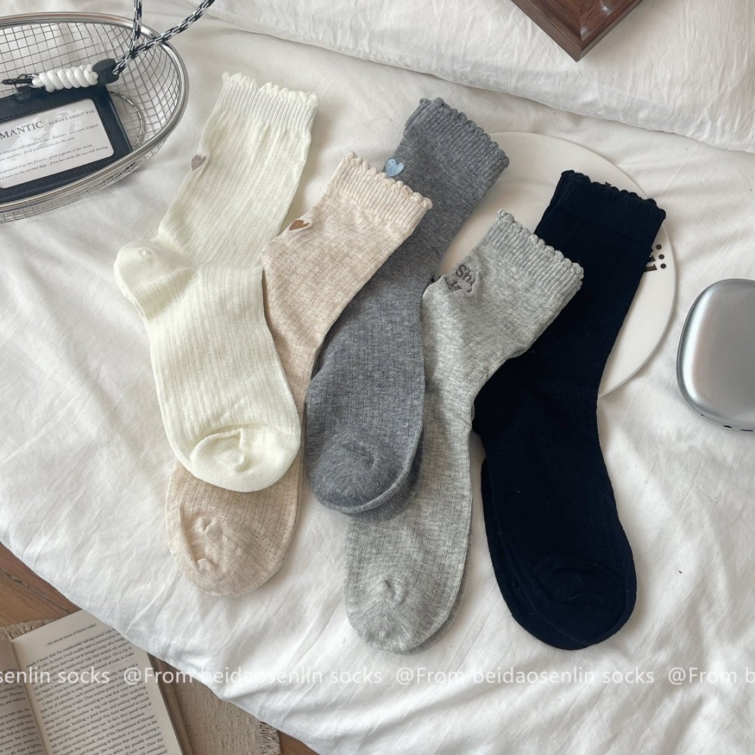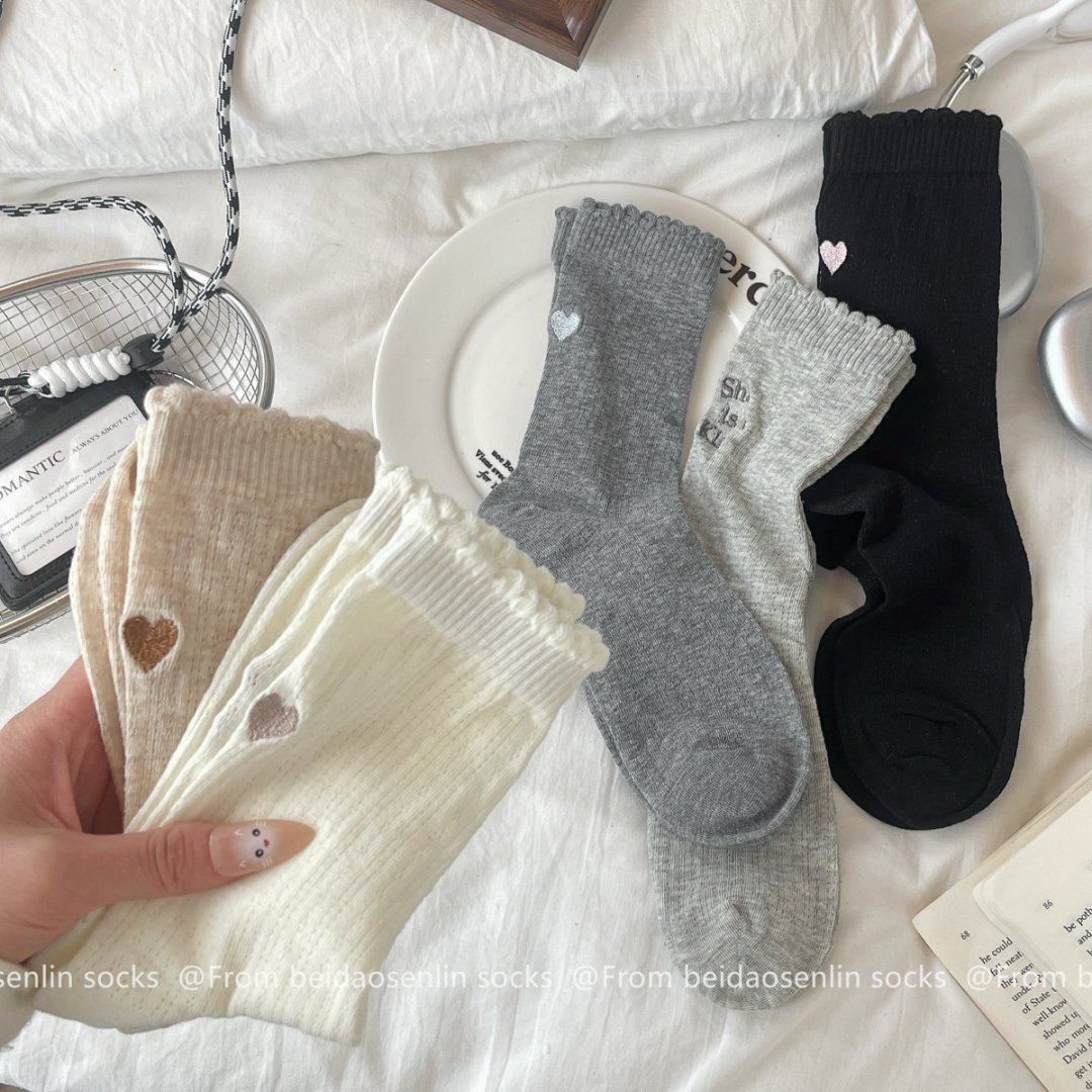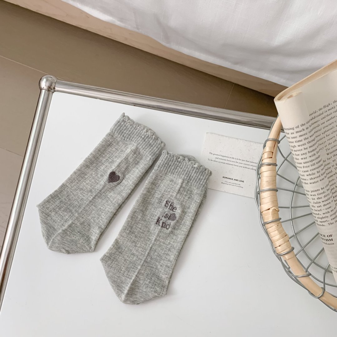 봄과 여름 여성 양말 새로운 중반 송아지 양말 수 놓은 사랑 메쉬 더미 양말 유행 한국 양말 여성 Zhuji 양말스토어 가기