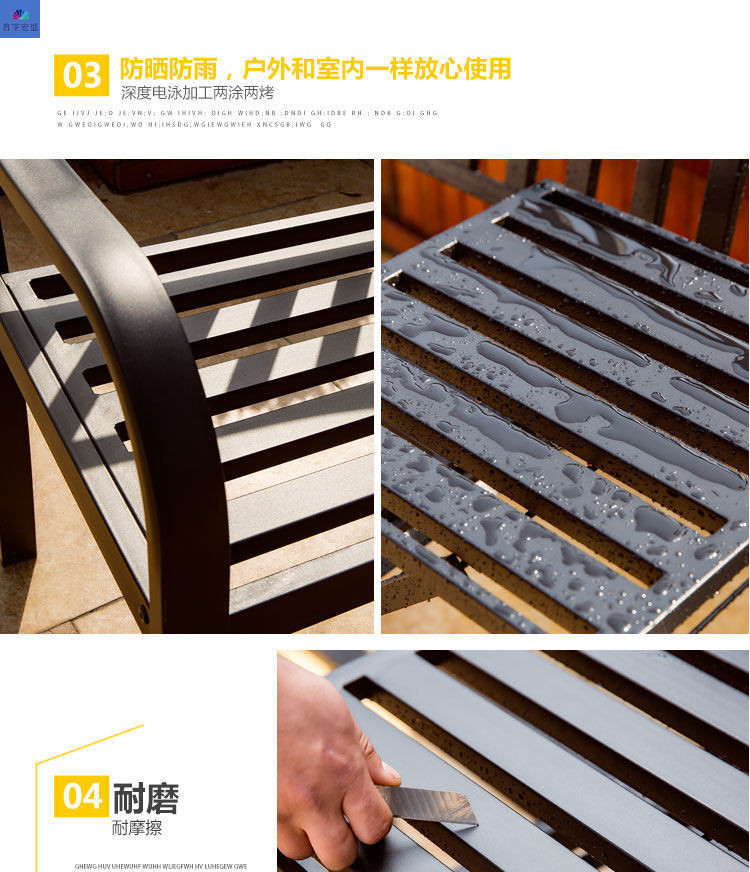 캐주얼 간단한 발코니 3 피스 테이블과 의자 야외 의자 철공 창조적 인 커피 테이블 안뜰 리프팅 작은 조합 야외