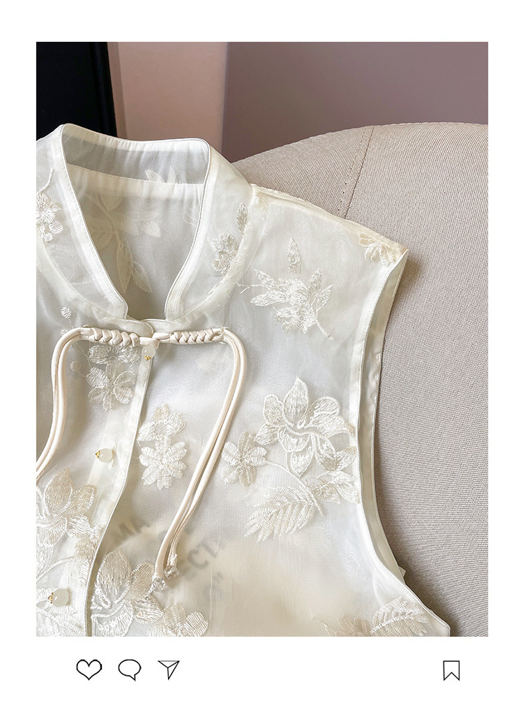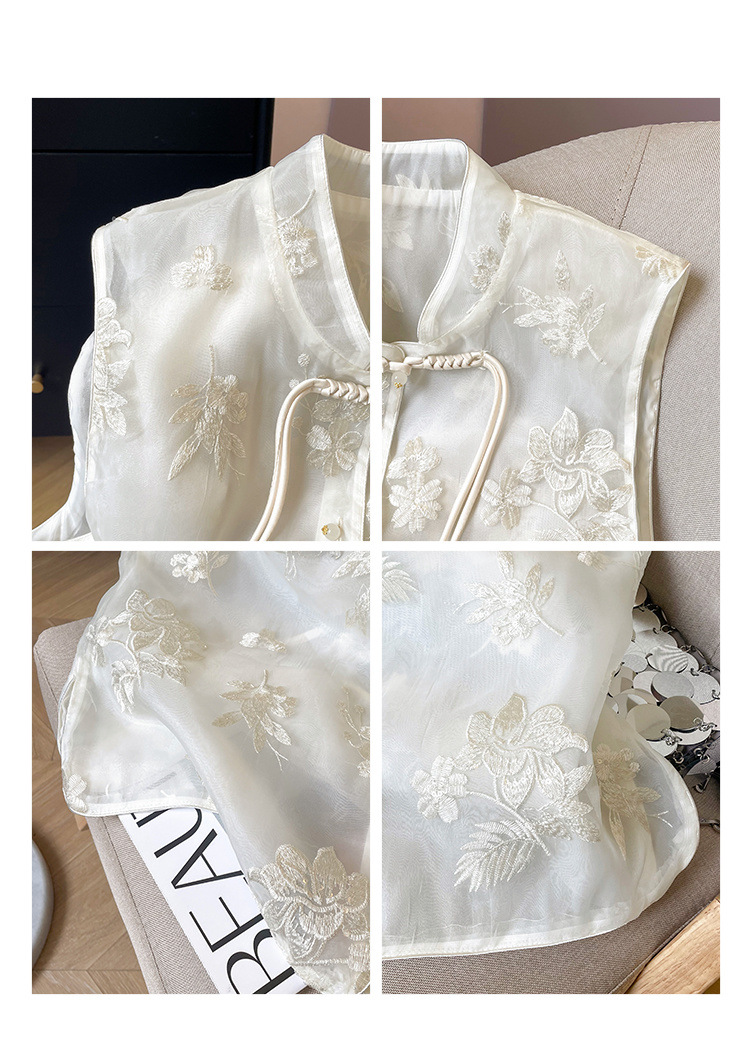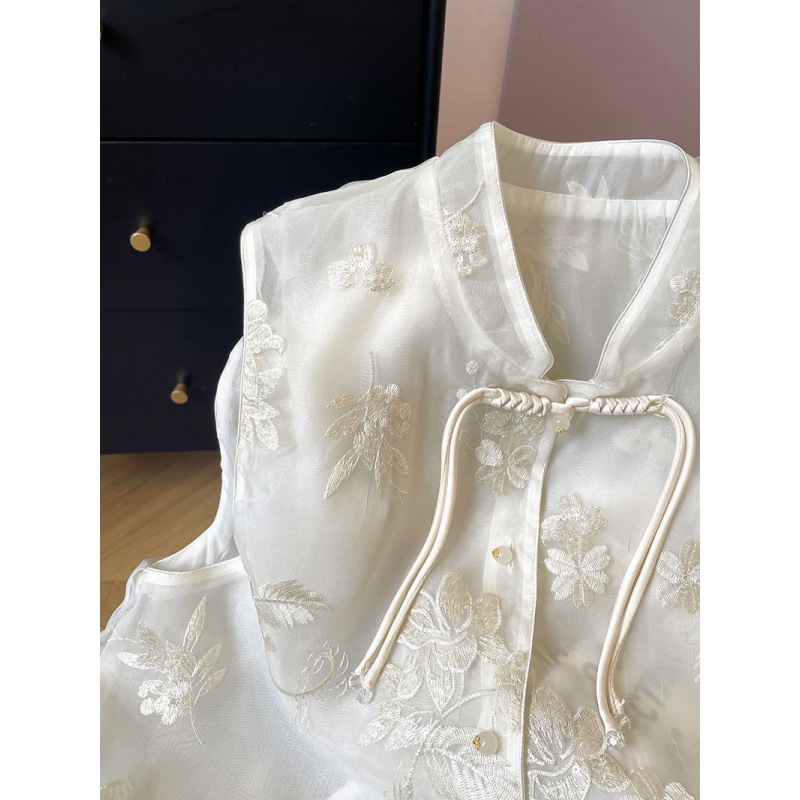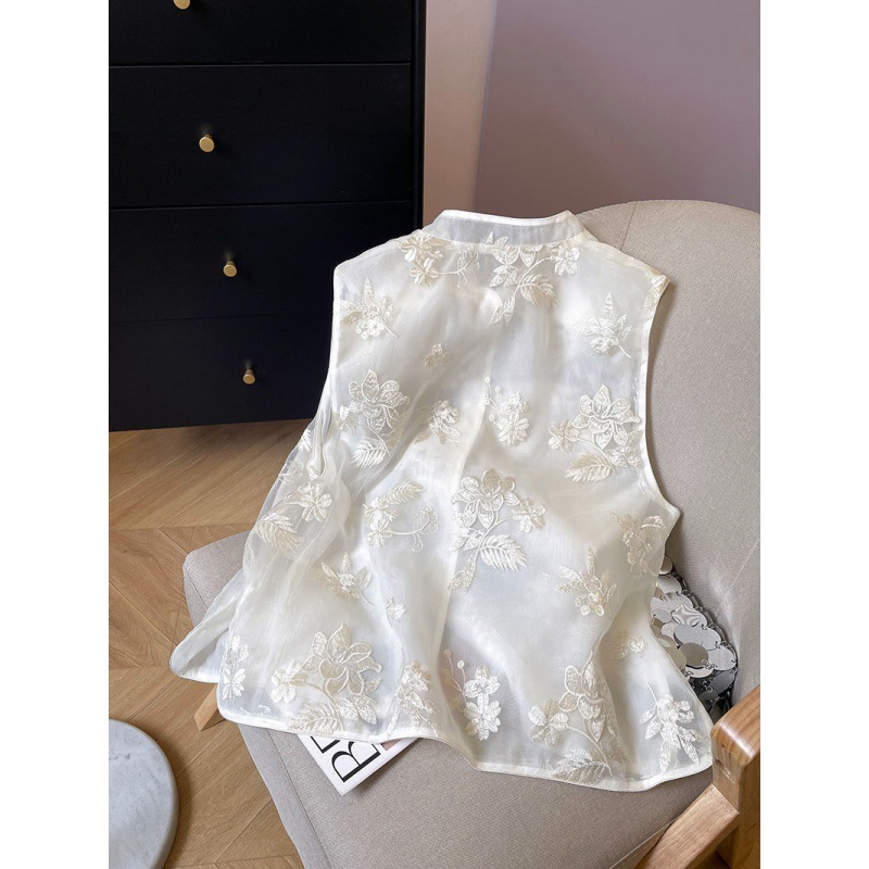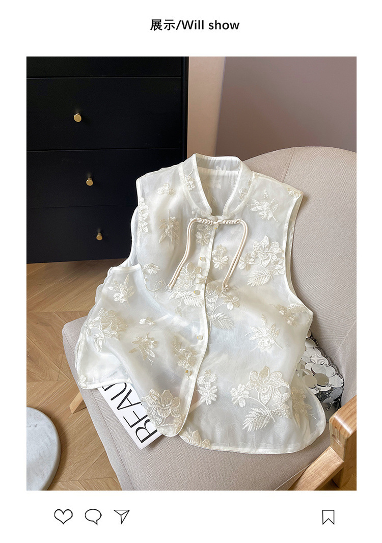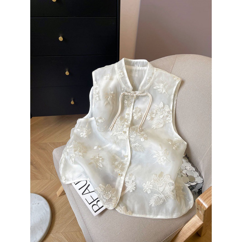 새로운 중국식 컨설팅 여성용 버클 자수 실크 조끼 여름 얇은 마이크로 투명 외부 조끼 조끼 조끼 착용스토어 가기