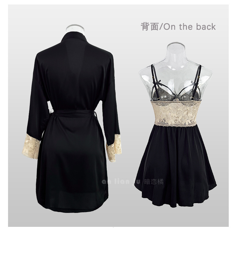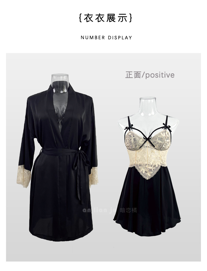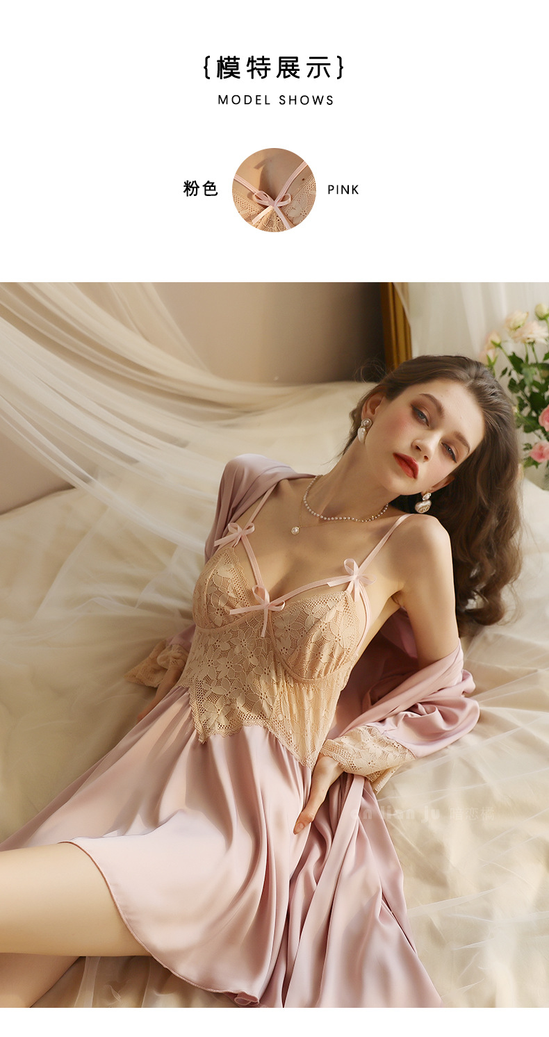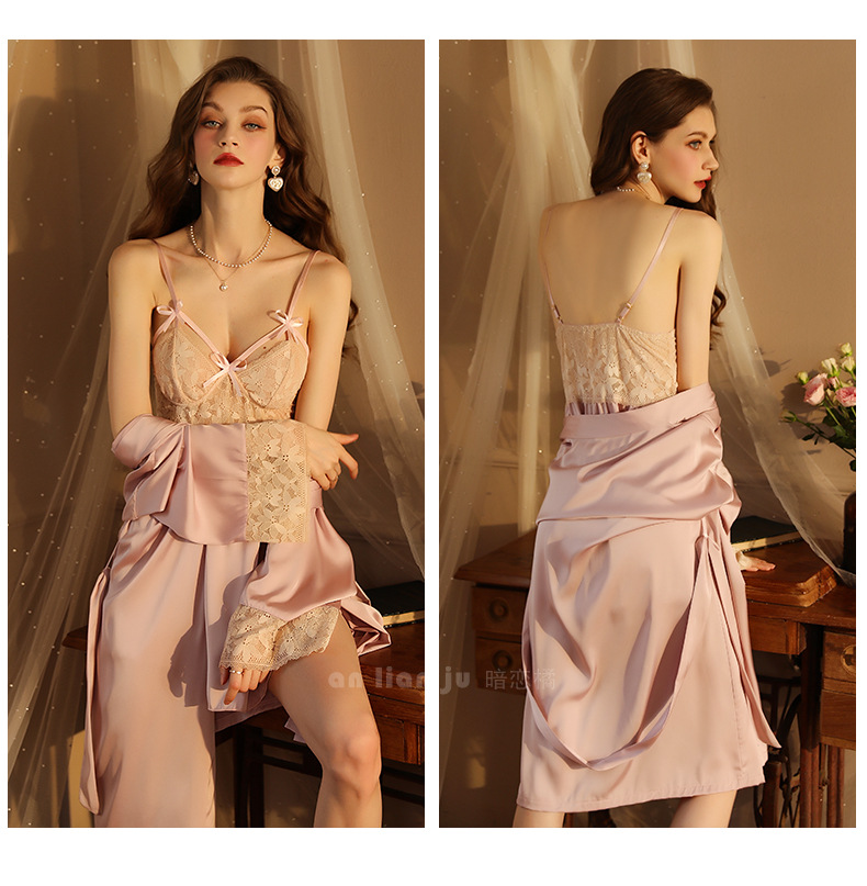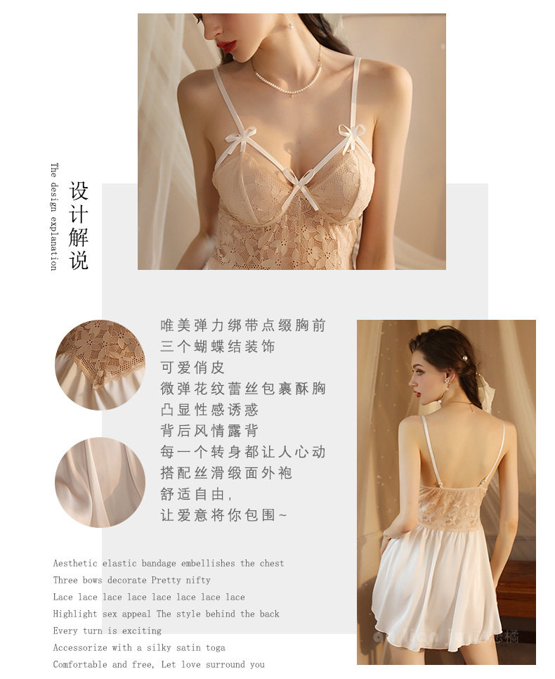섹시한 속옷 섹시한 프랑스 스타일 딥 V 레이스 활 나이트 드레스 순수 백리스 고급 새틴 슬링 세트 416스토어 가기