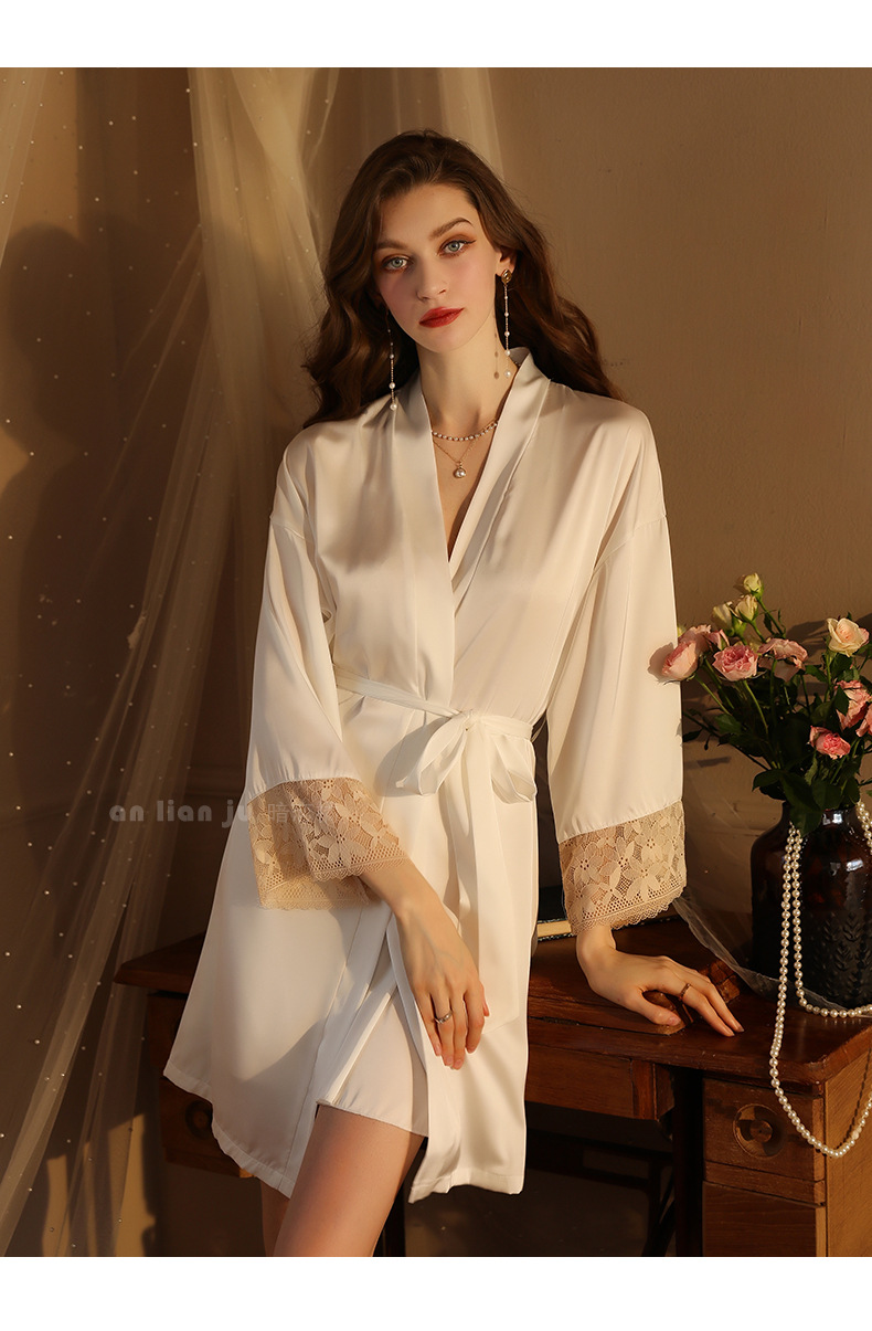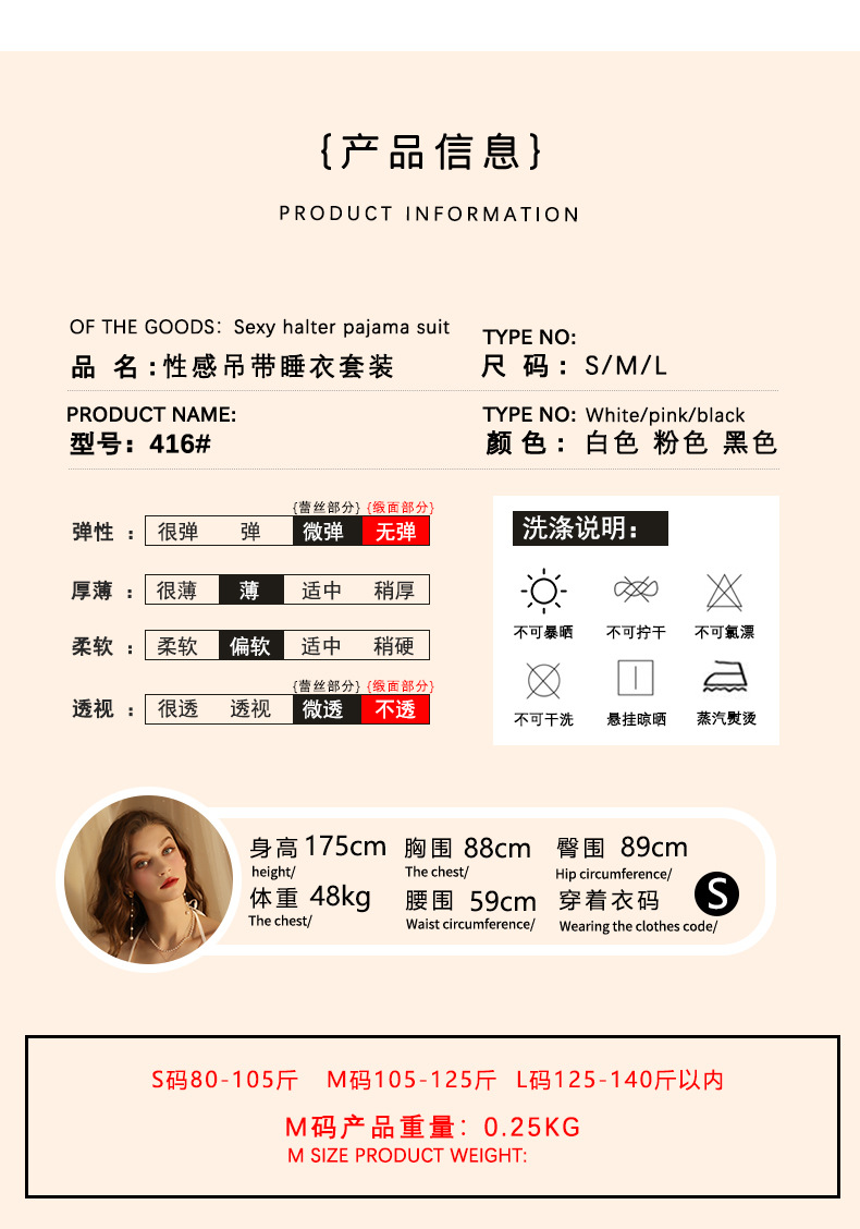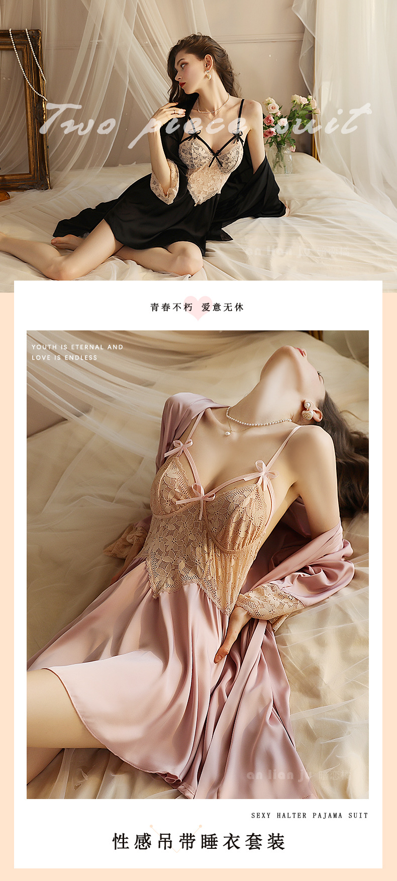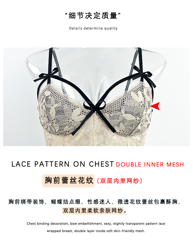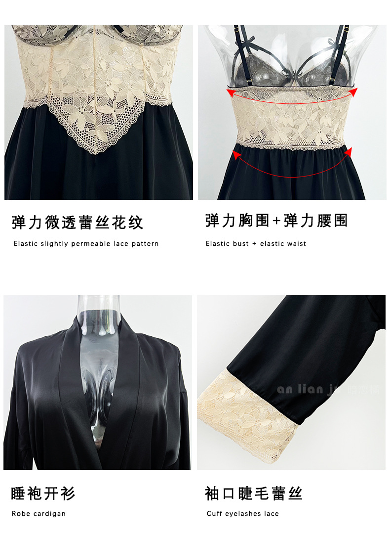 섹시한 속옷 섹시한 프랑스 스타일 딥 V 레이스 활 나이트 드레스 순수 백리스 고급 새틴 슬링 세트 416스토어 가기