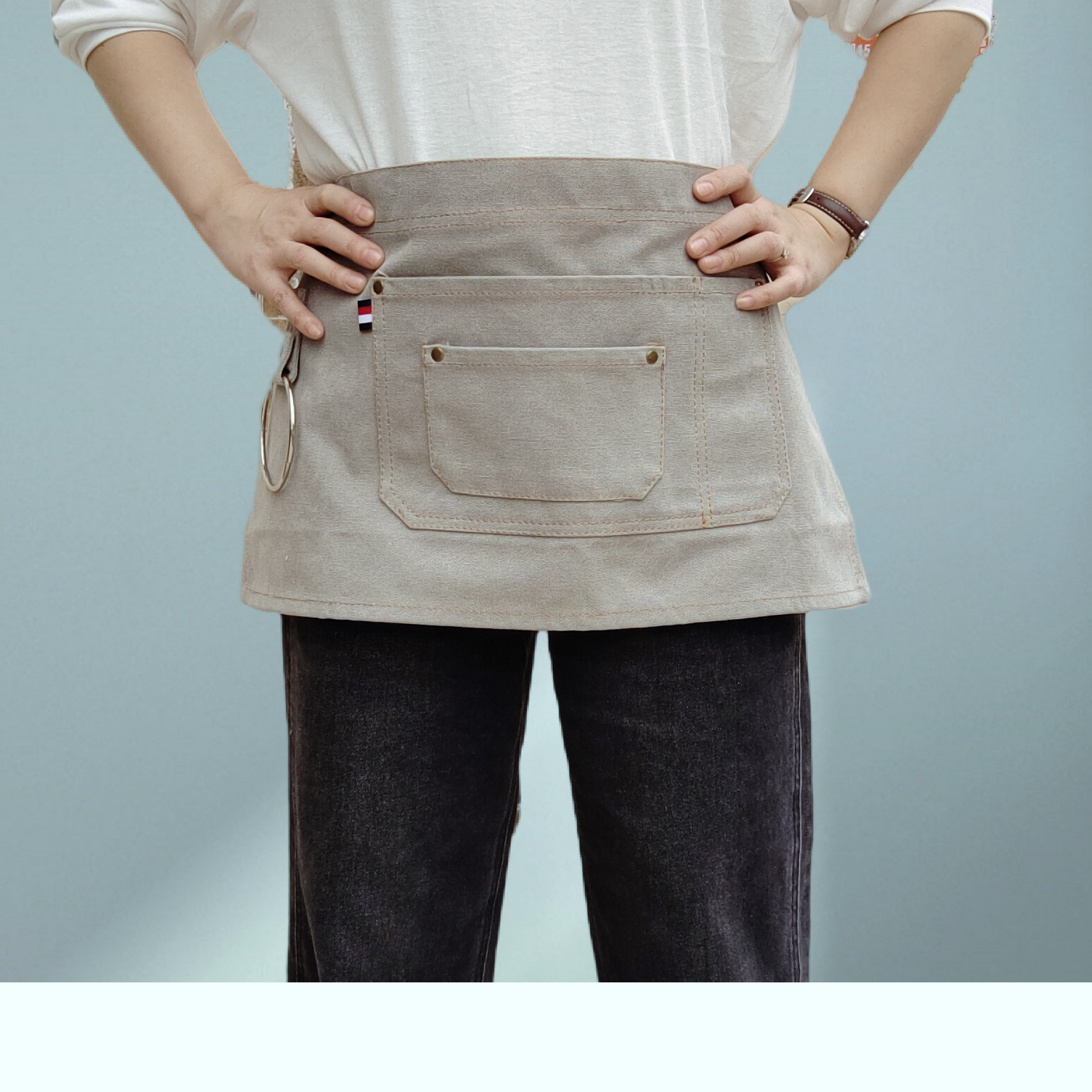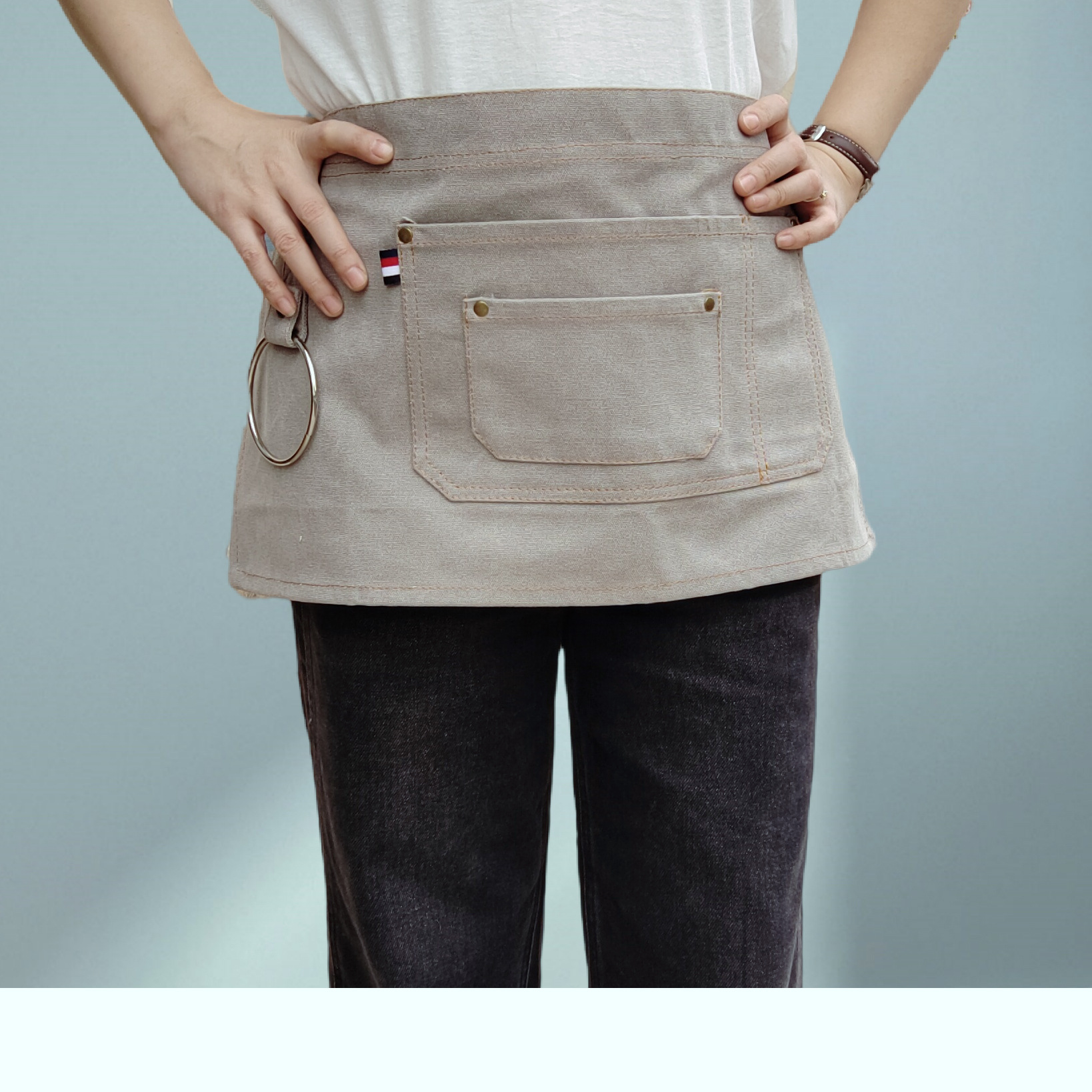 웨이터의 두꺼운 캔버스 절반 길이 짧은 앞치마 맞춤 로고 인쇄 레스토랑 허리를위한 특수 작업복