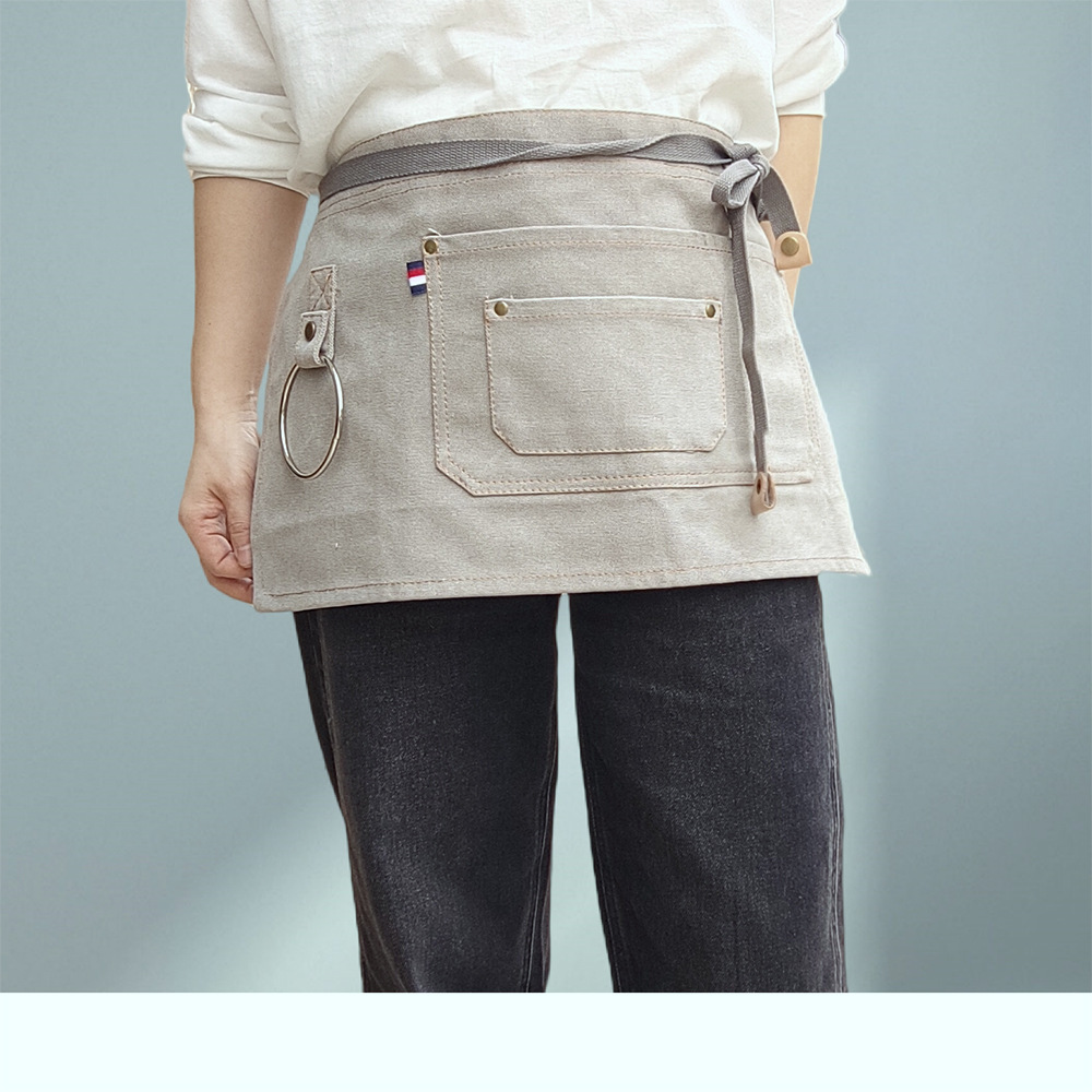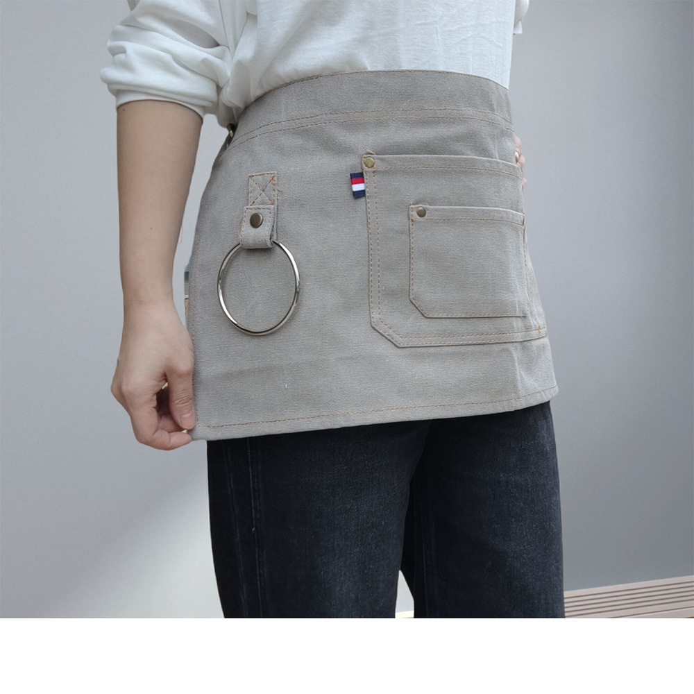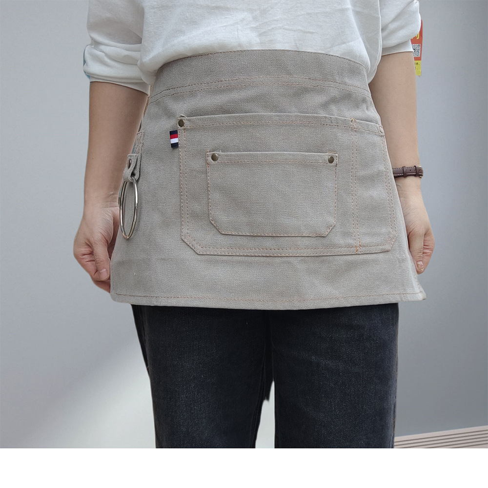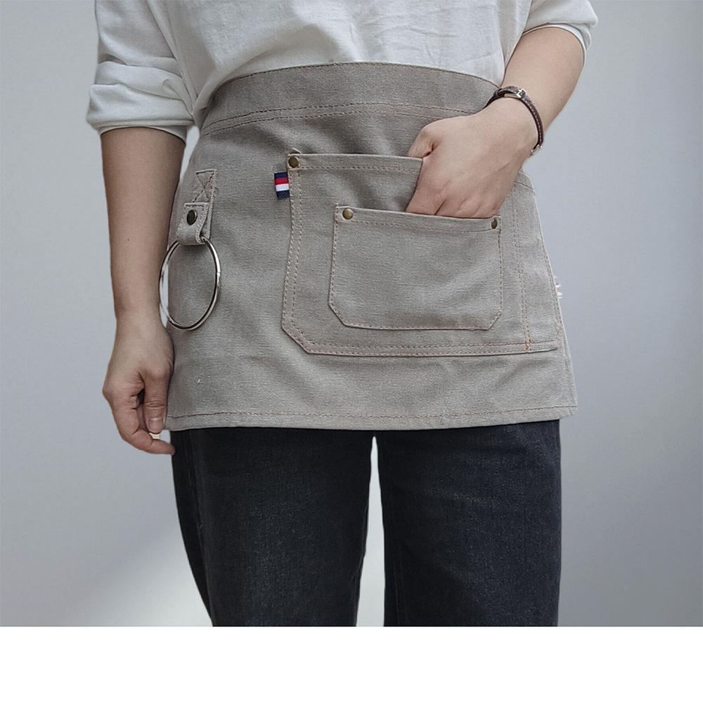 웨이터의 두꺼운 캔버스 절반 길이 짧은 앞치마 맞춤 로고 인쇄 레스토랑 허리를위한 특수 작업복스토어 가기
