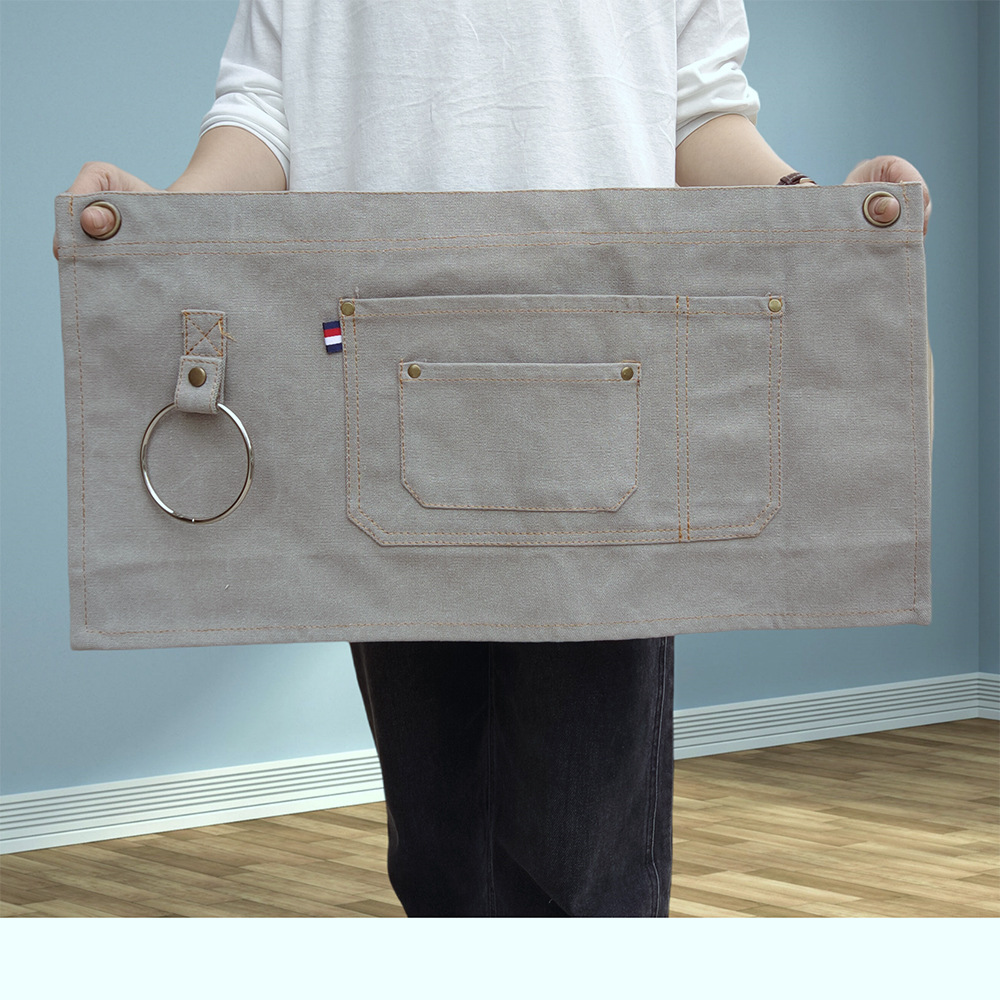 • 라이트 그레이 - 수건 걸이 고리가 있는 두꺼운 캔버스 반신 짧은 스타일