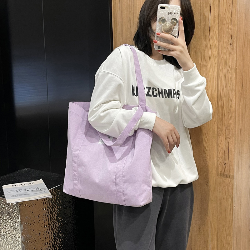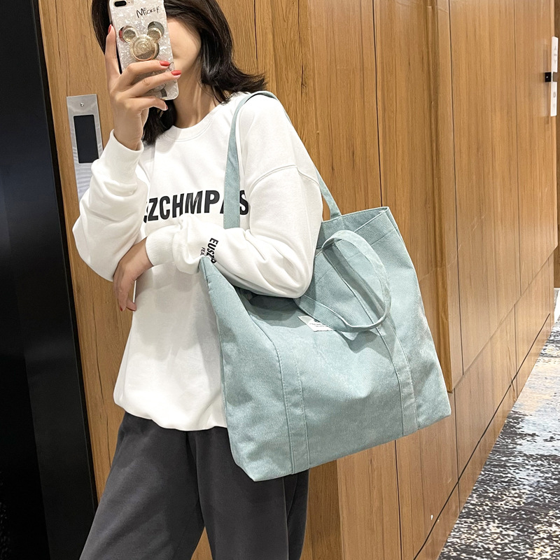 대용량 패브릭 레트로 봄 새로운 학생 클래스 토트 백 여성 유행 단색 올 매치 캐주얼 숄더 백