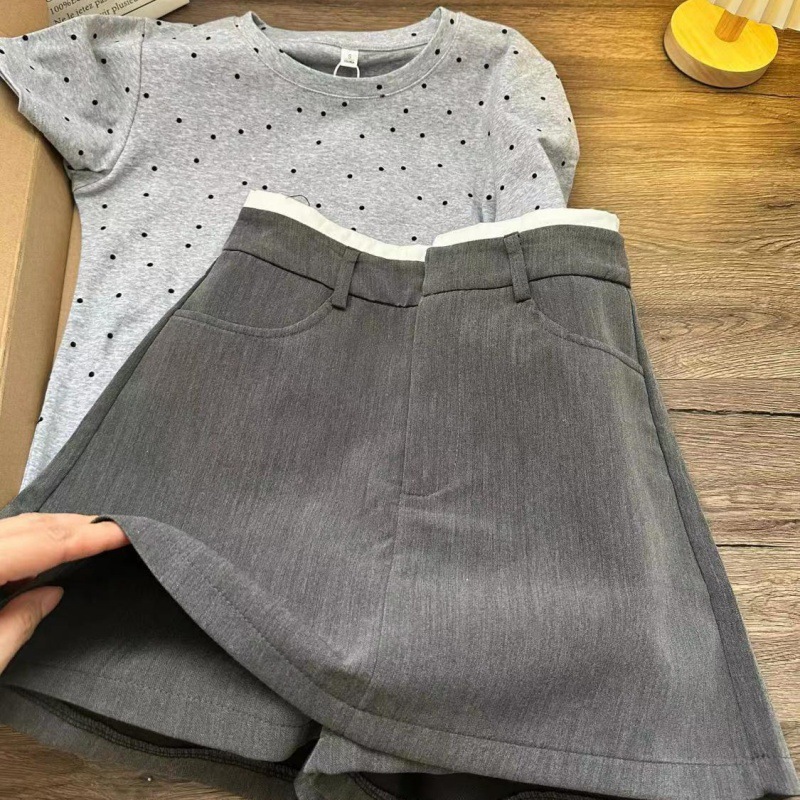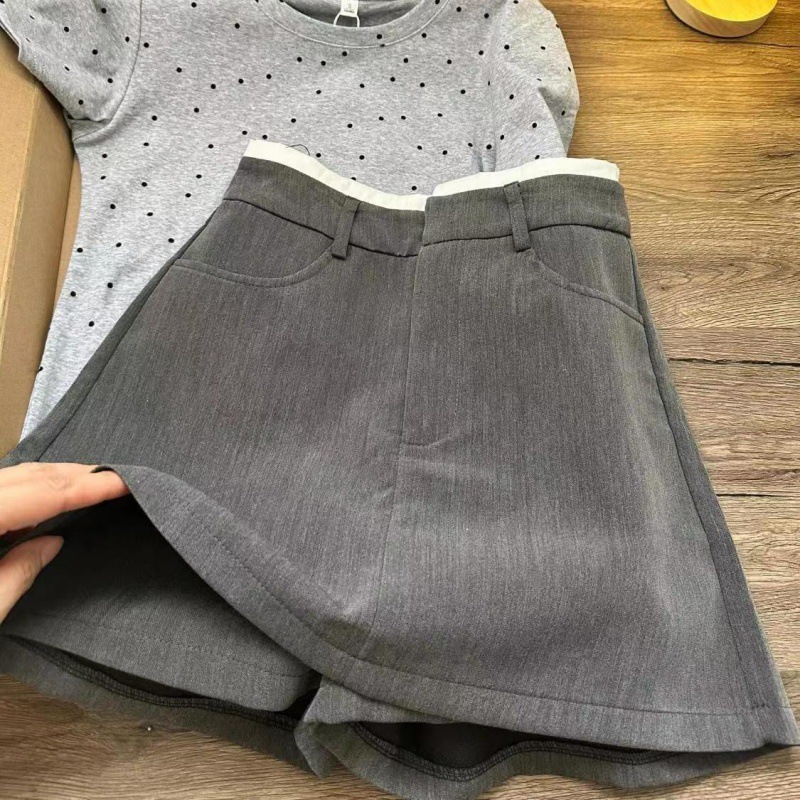 여름 세트 여성의 새로운 한국식 하이 엔드 센스 짧은 슬림 핏 컨설팅 반팔 셔츠 세트 긴 스커트 투피스 세트