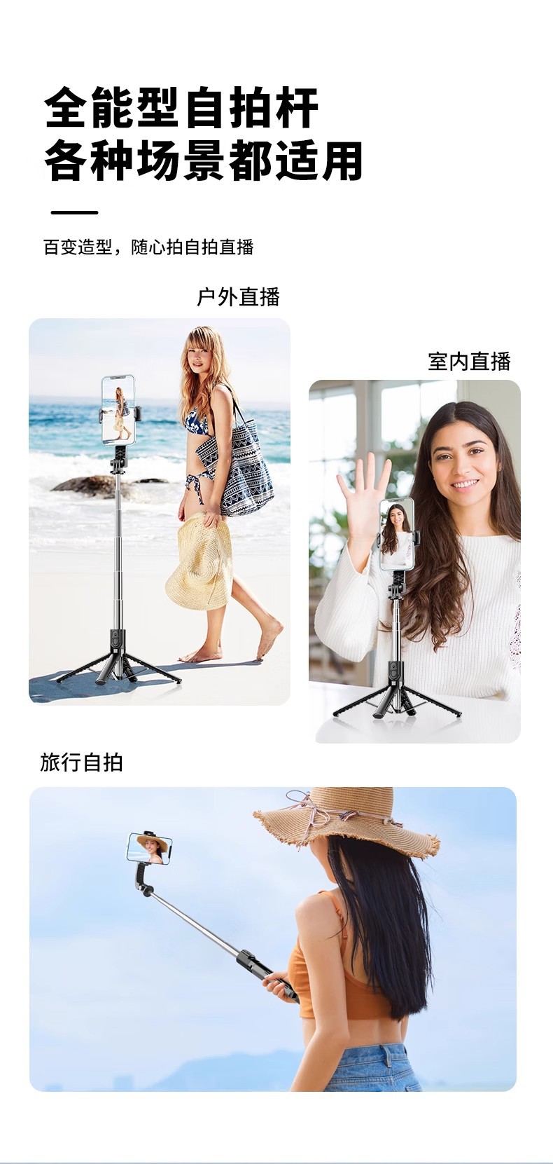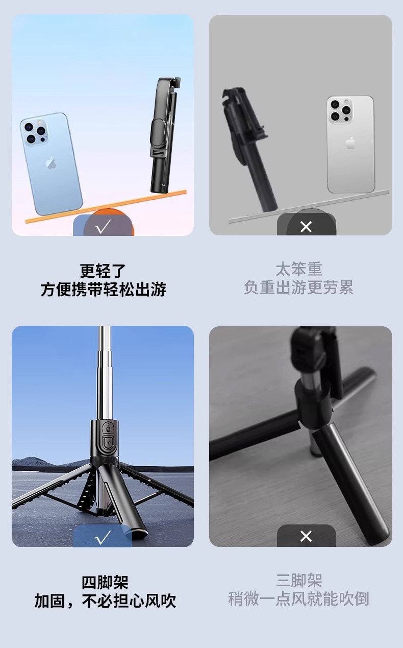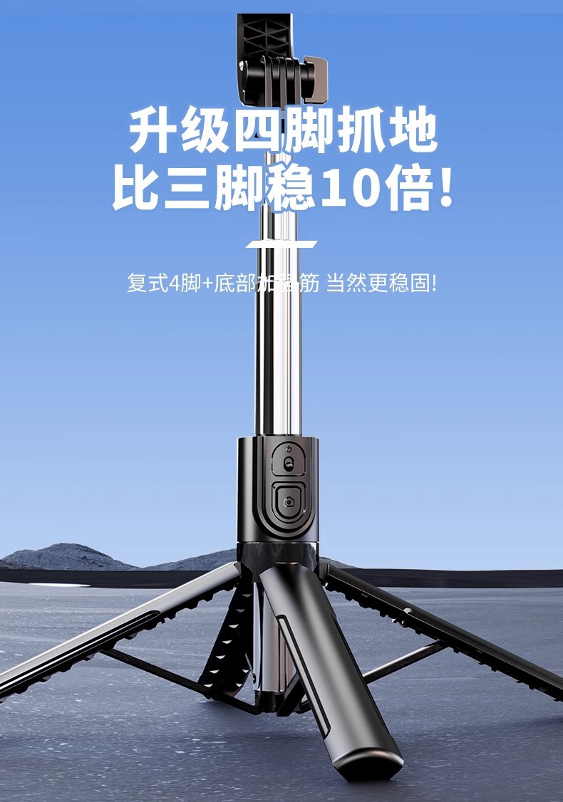 휴대 전화 셀카 스틱 쿼드 포드 카메라 비디오 라이브 핸드 헬드 착륙 보편적 인 여행 유물 제조 업체 도매