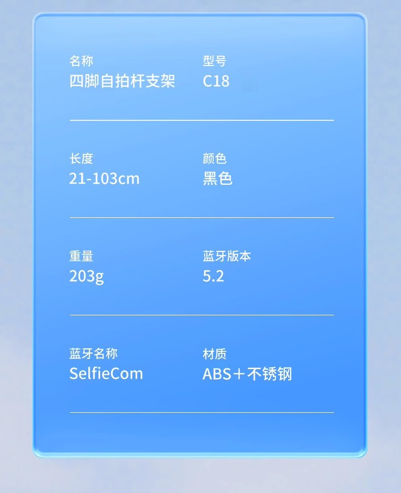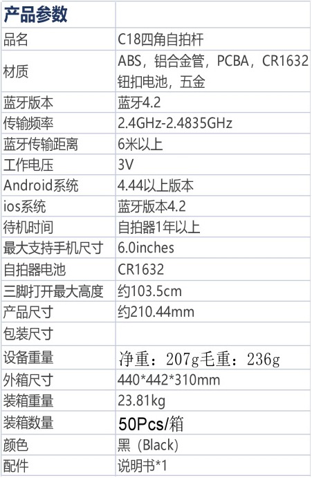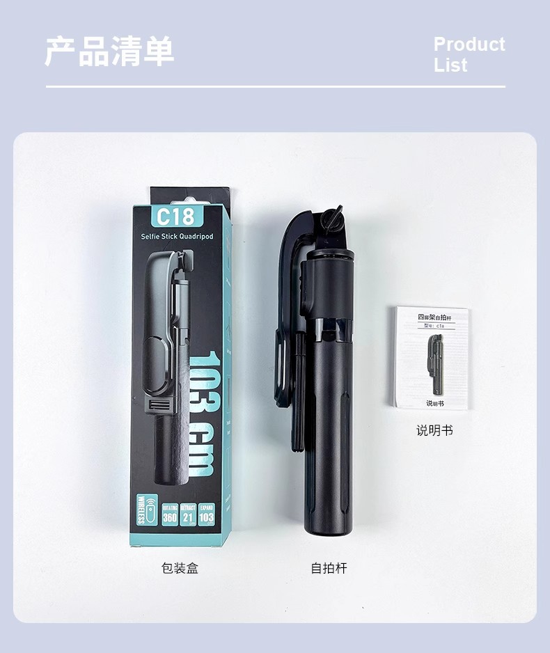 • C18 싱글 소형 조명 모델 블랙 [1 본체 셀카봉 + 버튼 배터리 블루투스 리모컨 + 소형 필라이트 1개]