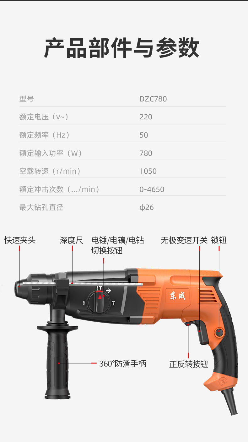 • [780W 3용도] 클러치 정방향 및 역방향 트위스트 드릴 패키지