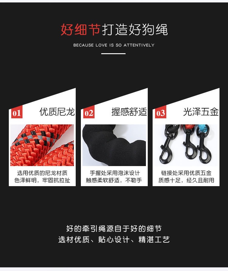 야간 반사사로 된 개줄, 폼 소재로 손에 꼬임 방지, 알루미늄 잠금장치, 애완견용 나일론 줄, 폭발 방지