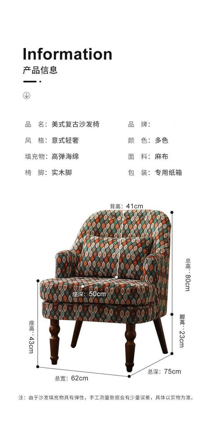 미국 레트로 소파 북유럽 침실 리셉션 게으른 직물 단단한 나무 작은 소파 조합 발코니 레저 소파 의자스토어 가기