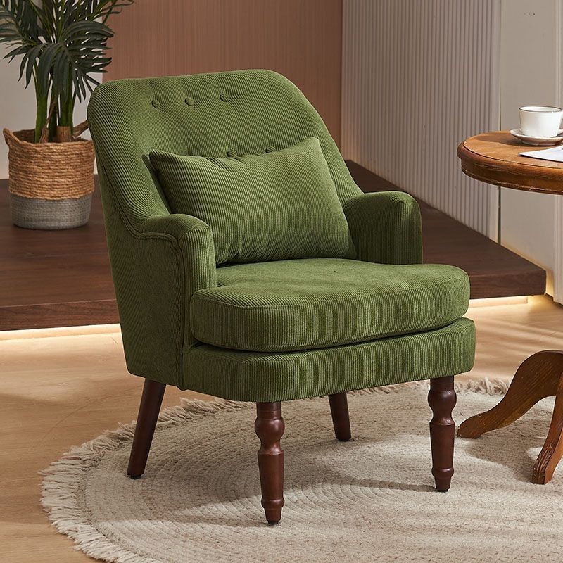 • 오프화이트 코듀로이 [원목 레트로 다리] 허리베개 포함
