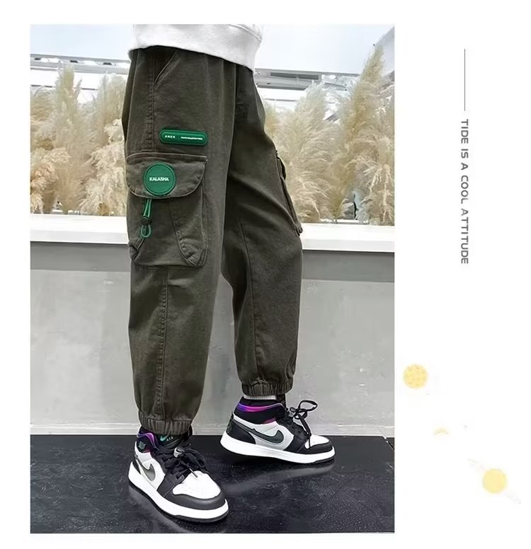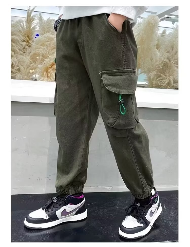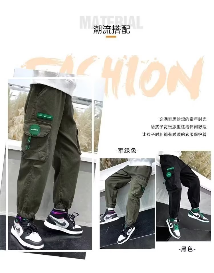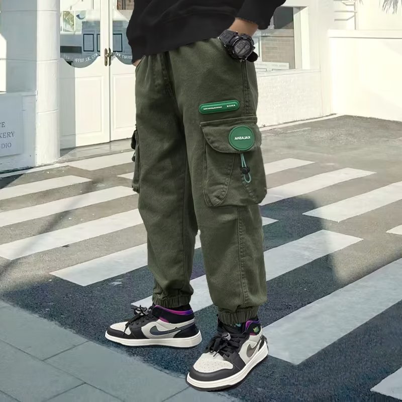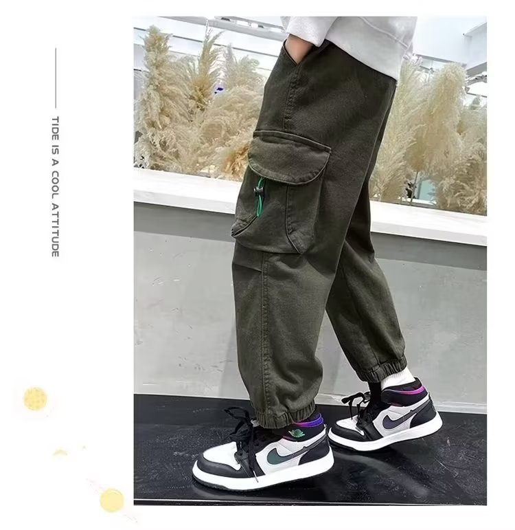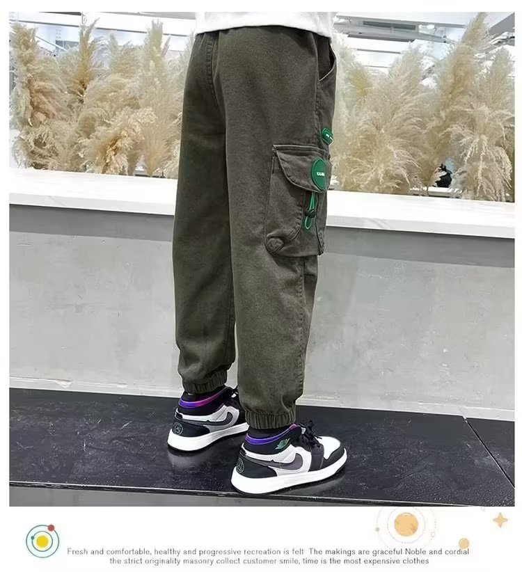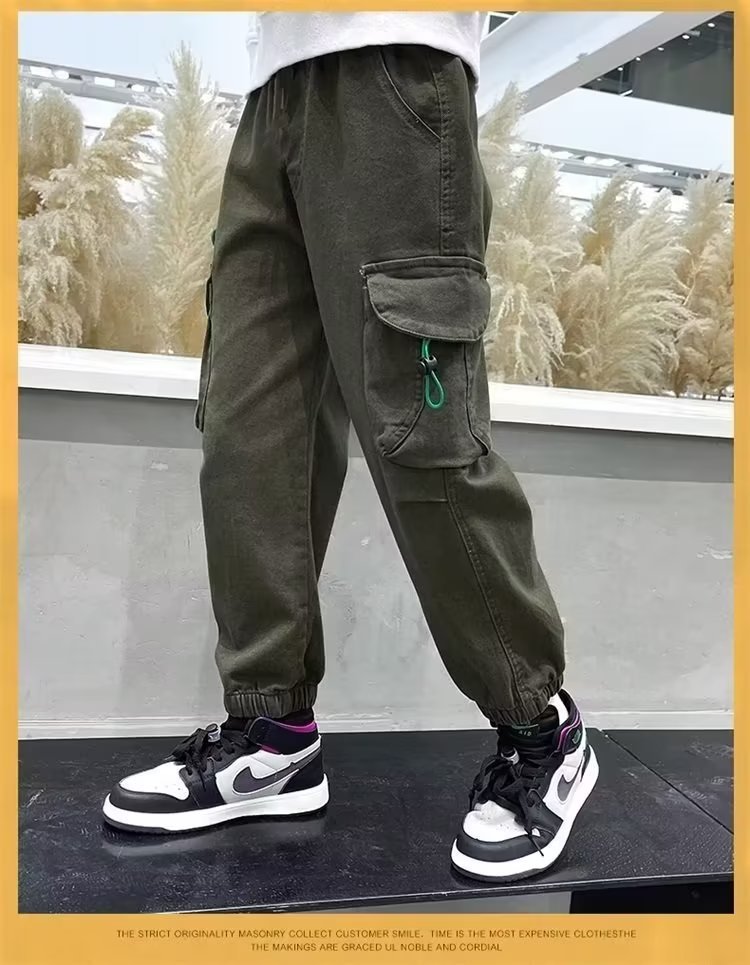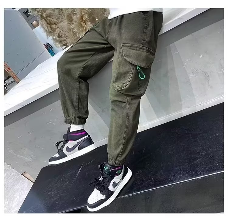 어린이 바지 봄과 가을 2025 새로운 도착 종다 어린이 바지 소년 캐주얼 작업복 느슨한 봄과 가을 유행 소년스토어 가기