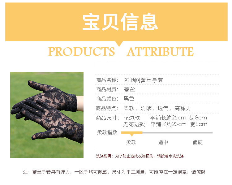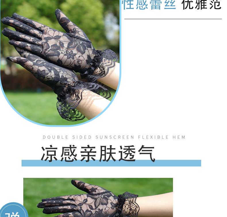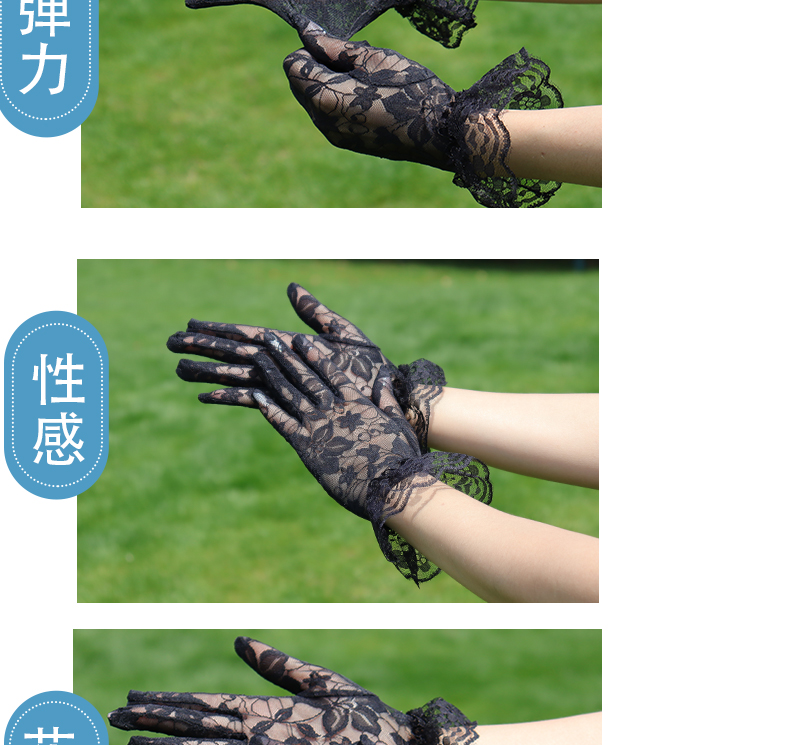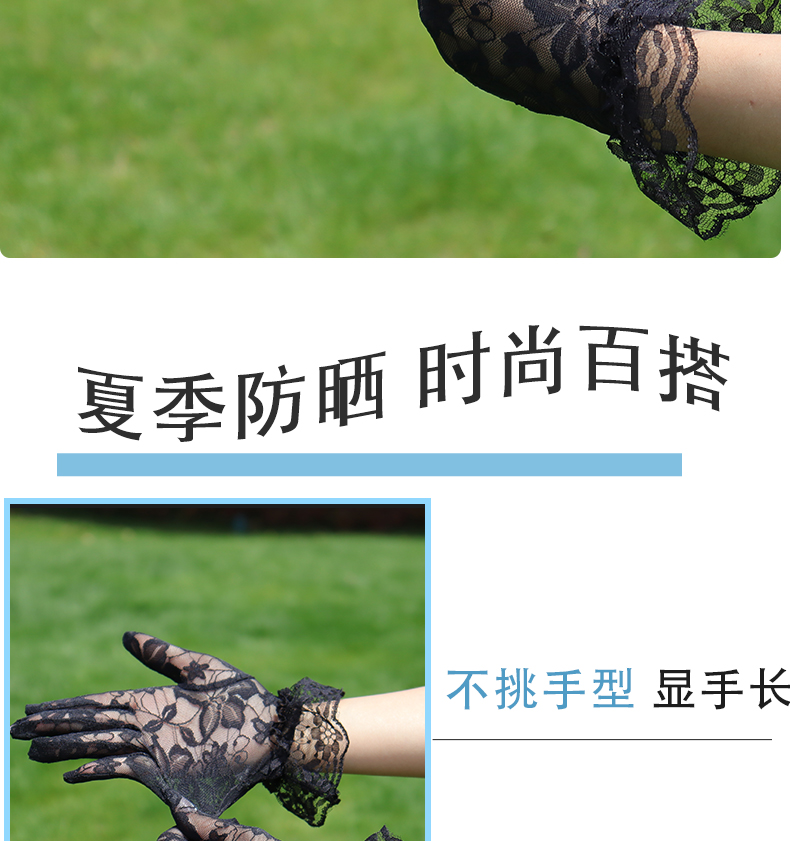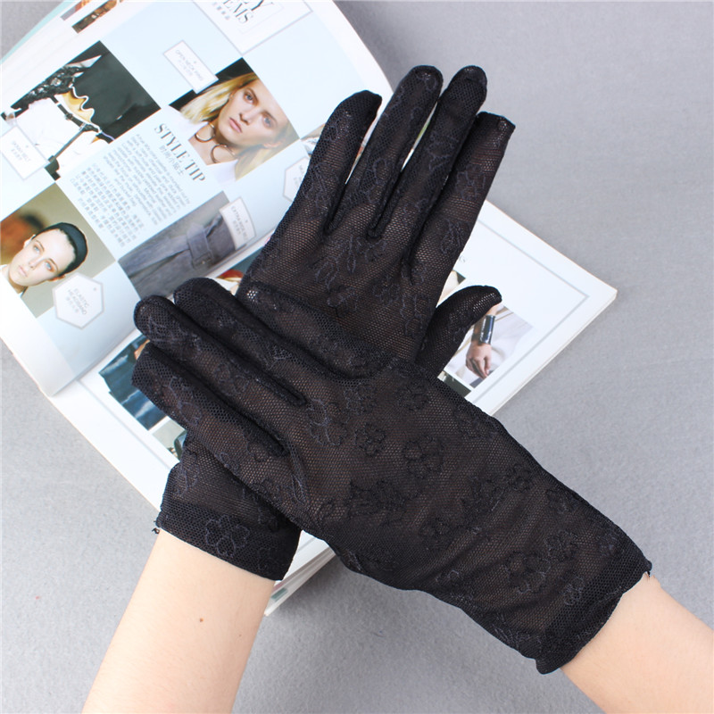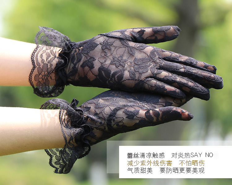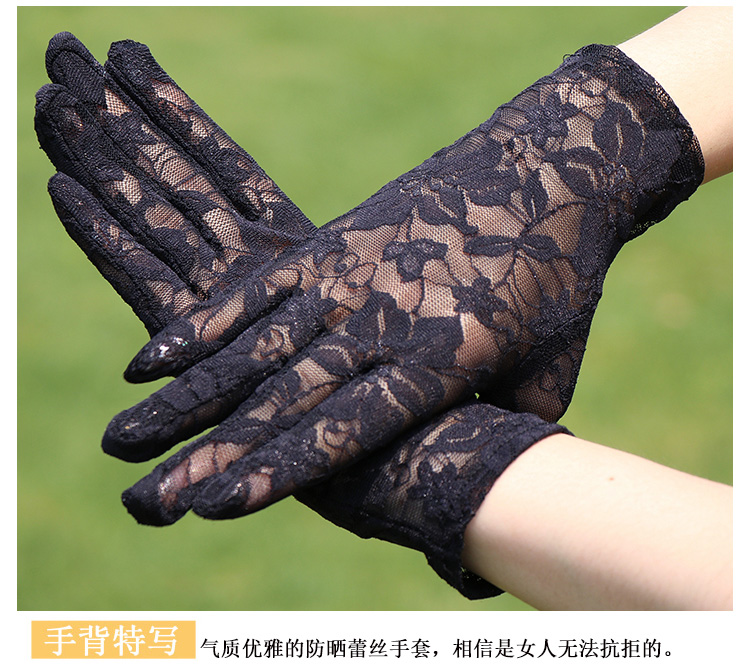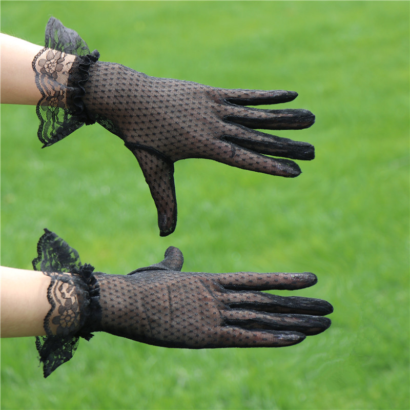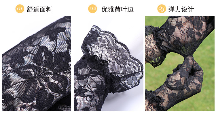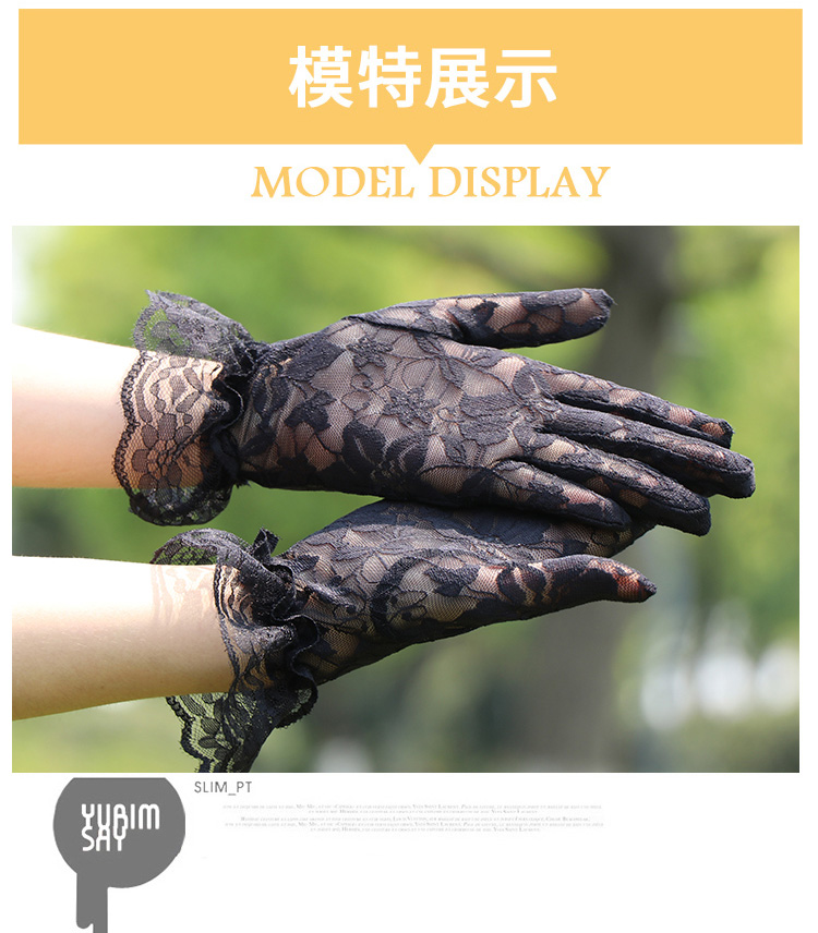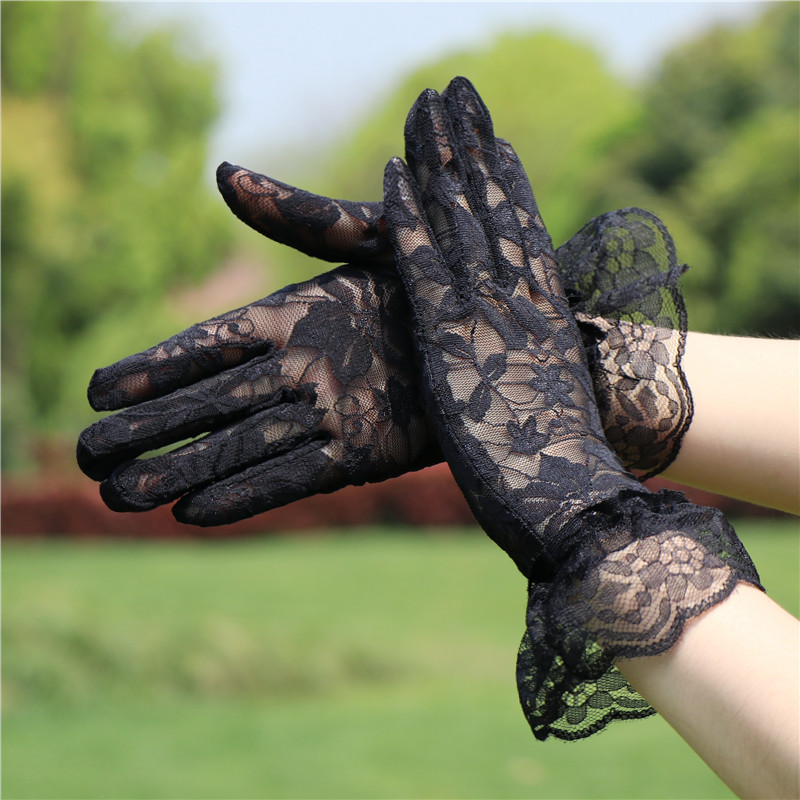 레이스 장갑 여성 얇은 복고풍 연예인 장군 청삼 액세서리 우아한 섹시한 봄과 가을 공연 패션 태양 보호 블랙