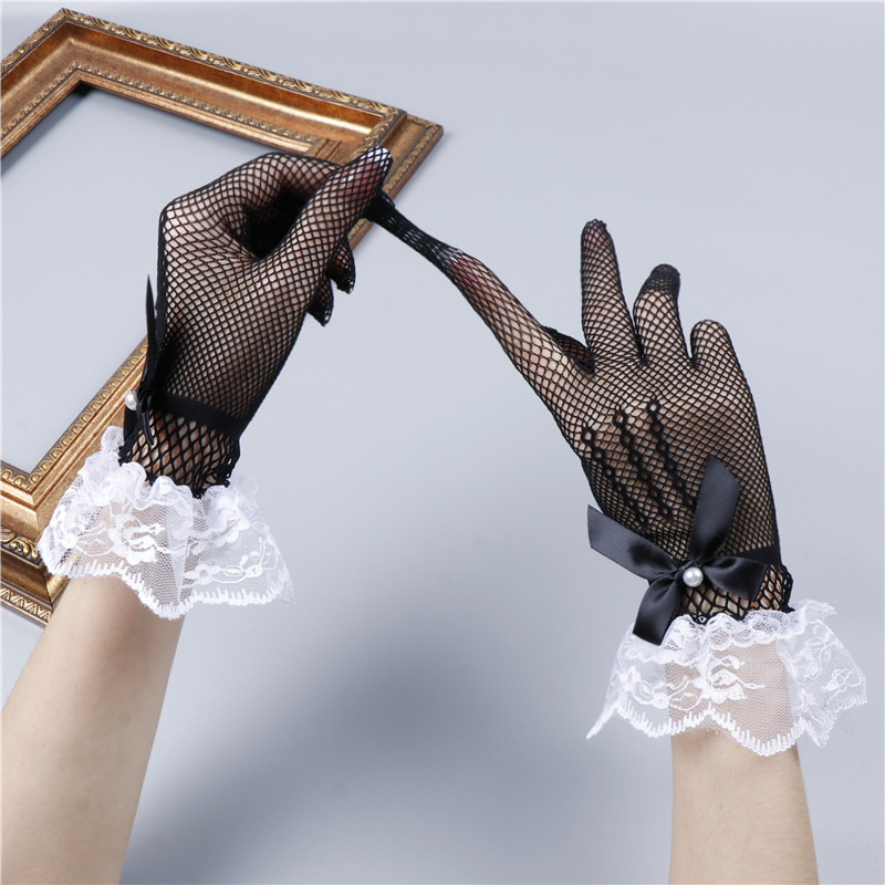 레이스 장갑 여성 얇은 복고풍 연예인 장군 청삼 액세서리 우아한 섹시한 봄과 가을 공연 패션 태양 보호 블랙스토어 가기