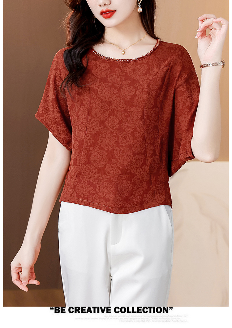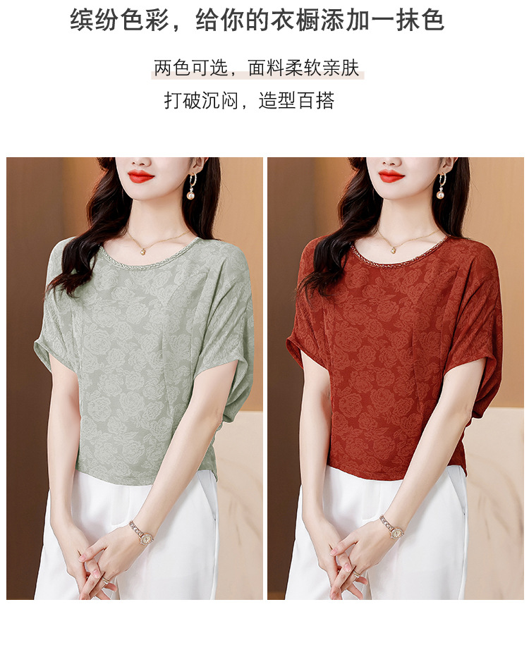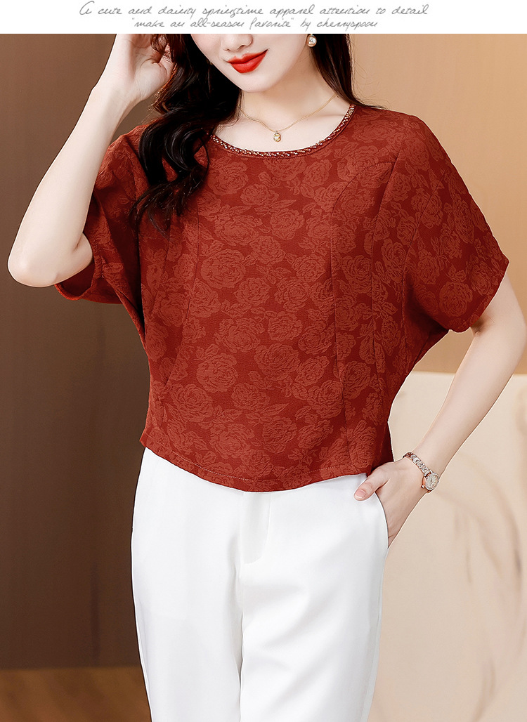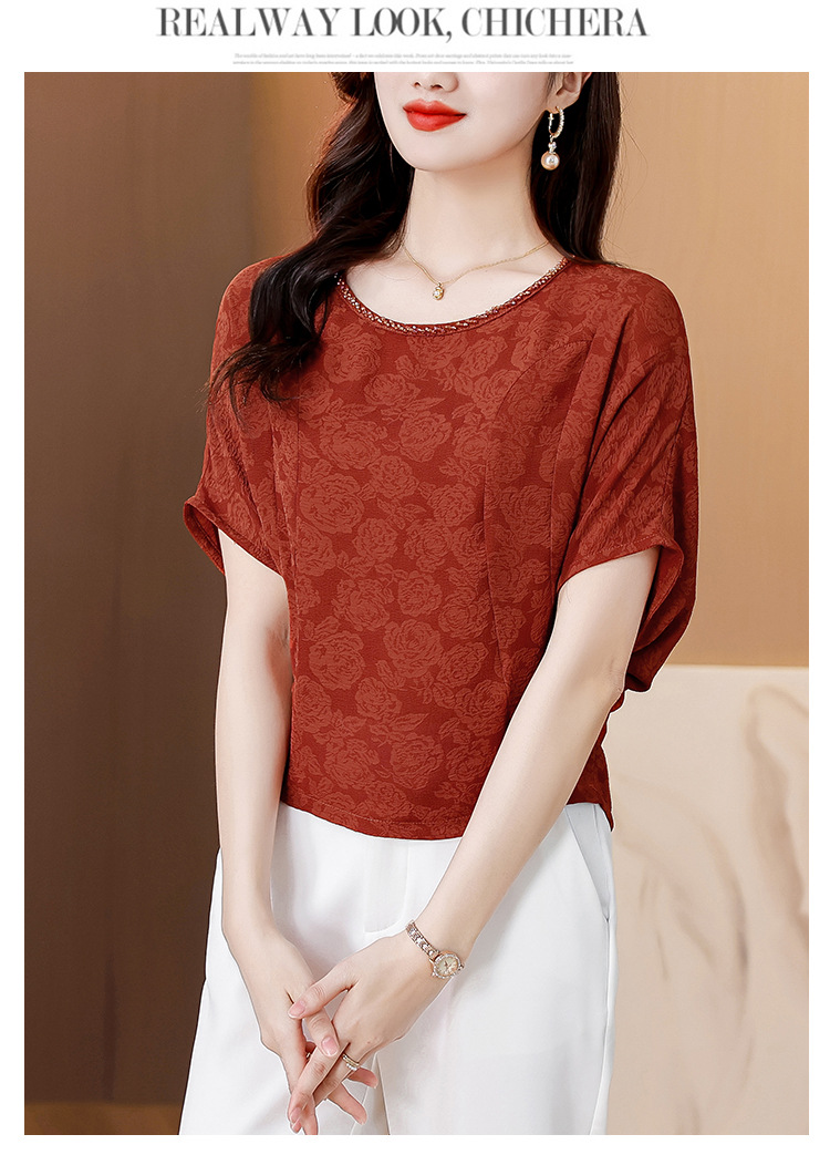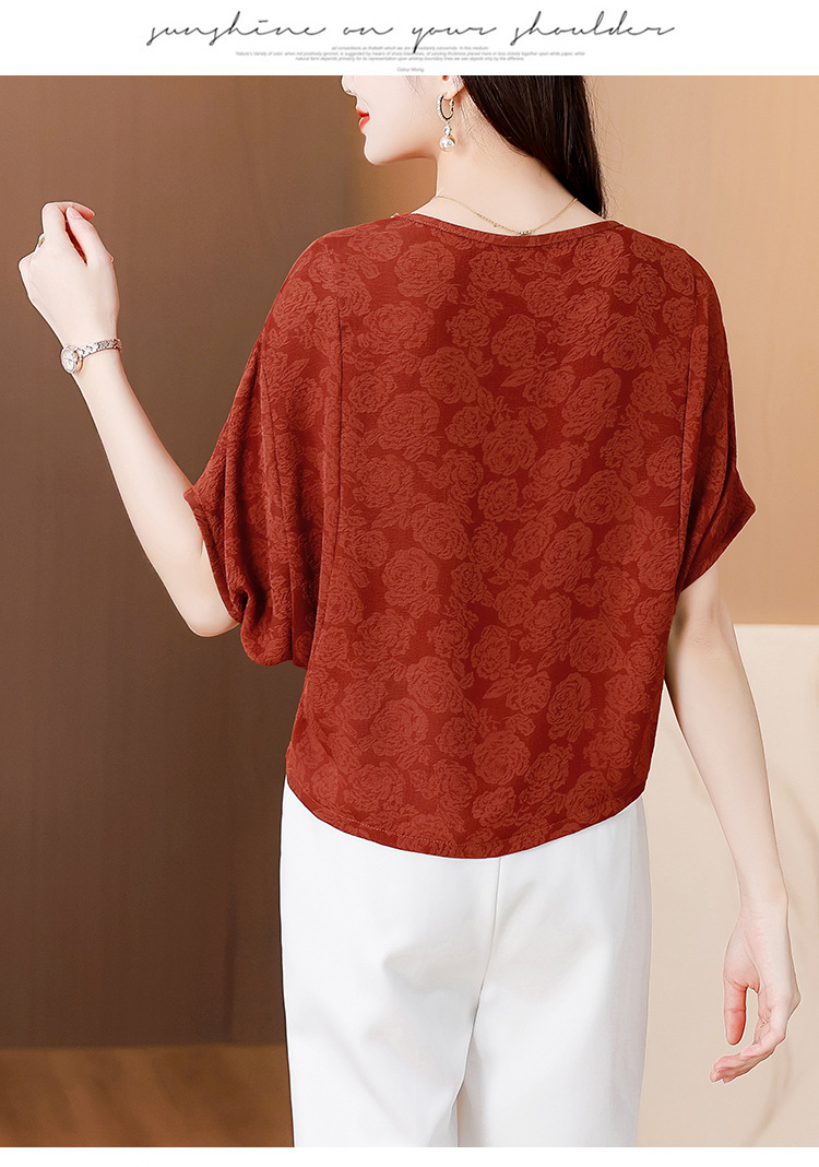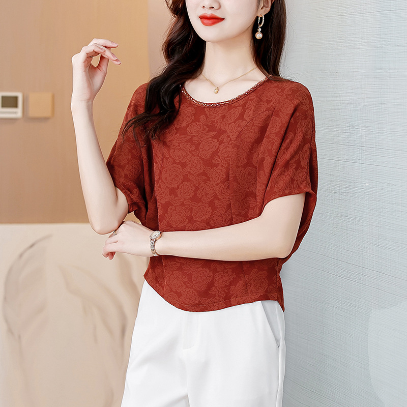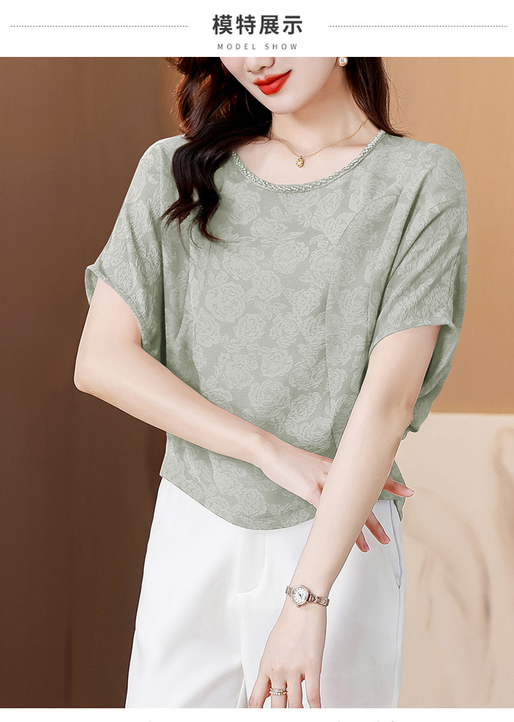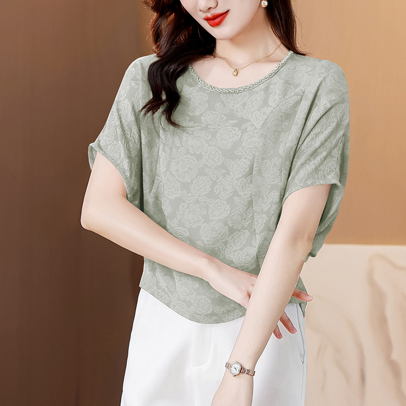 2025 배트 모빌 셔츠 문학 스타일 자카드 반팔 티셔츠 여성용 느슨한 단색 여름 어깨 소매 대형 버전 상단 목