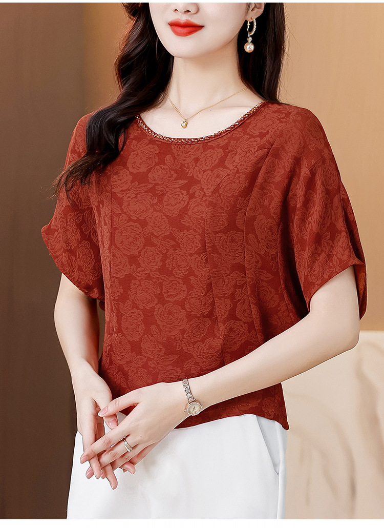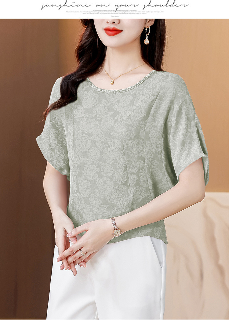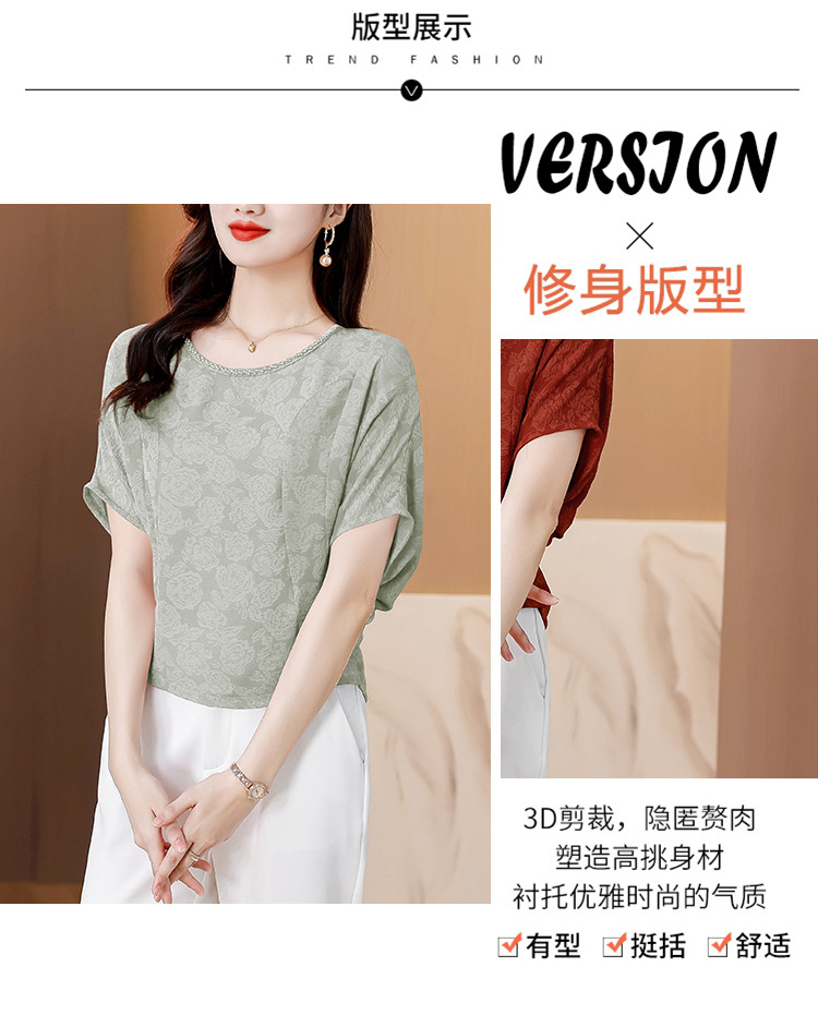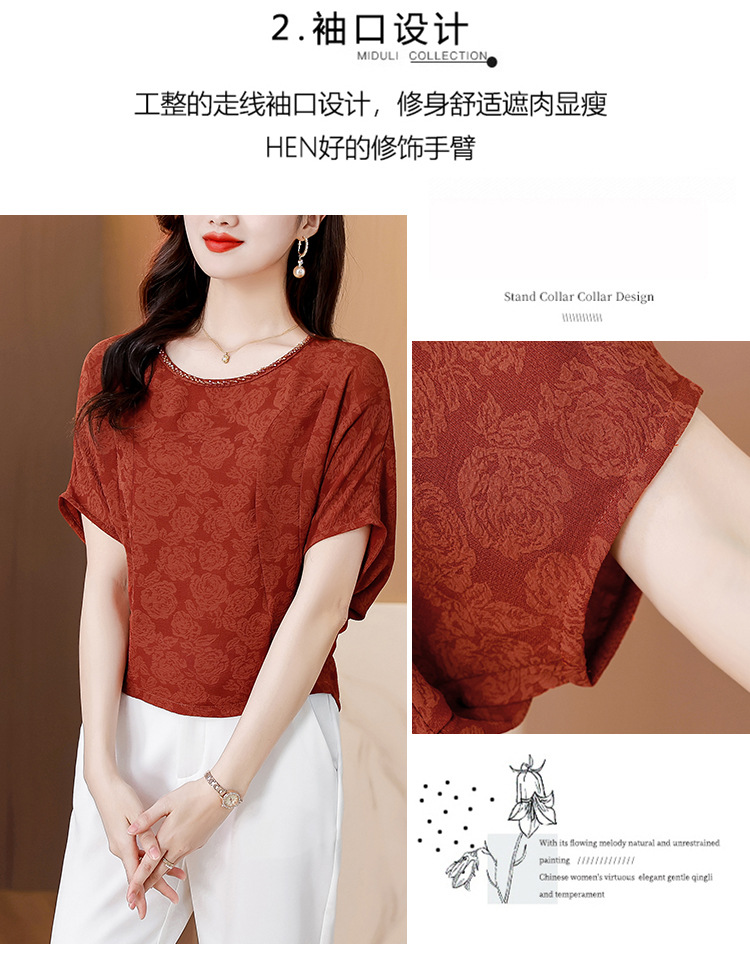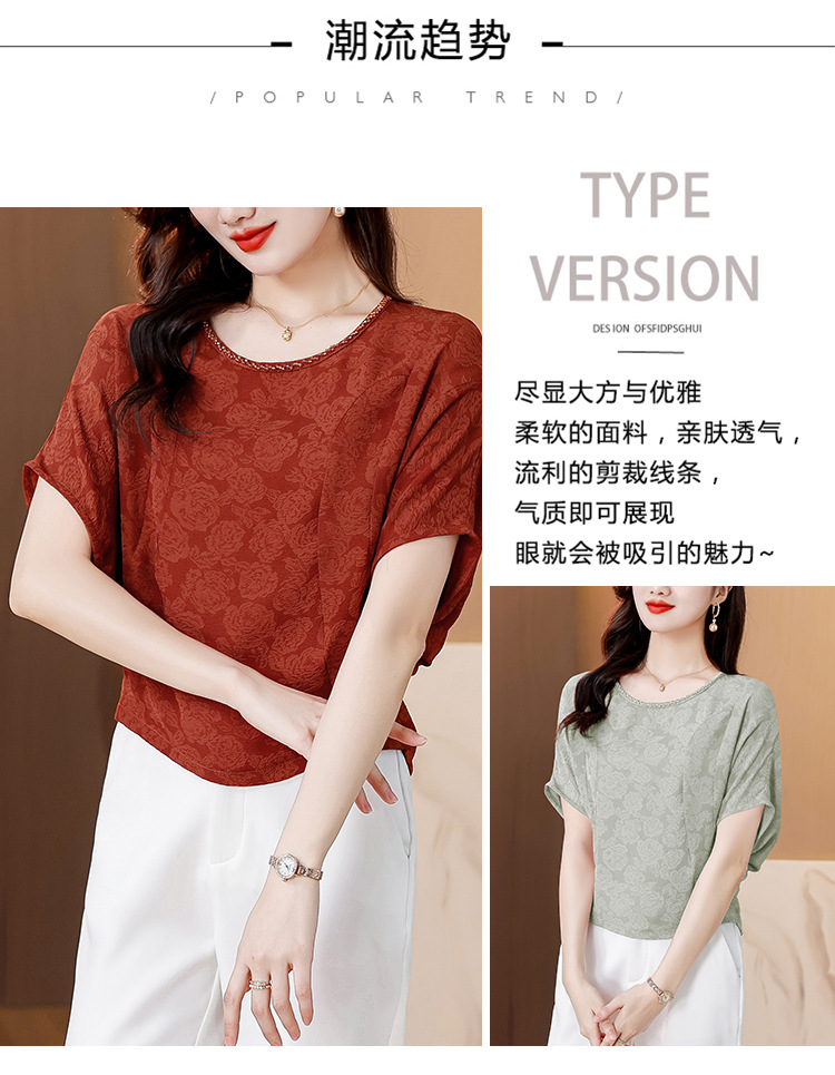 2025 배트 모빌 셔츠 문학 스타일 자카드 반팔 티셔츠 여성용 느슨한 단색 여름 어깨 소매 대형 버전 상단 목스토어 가기