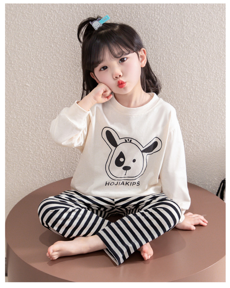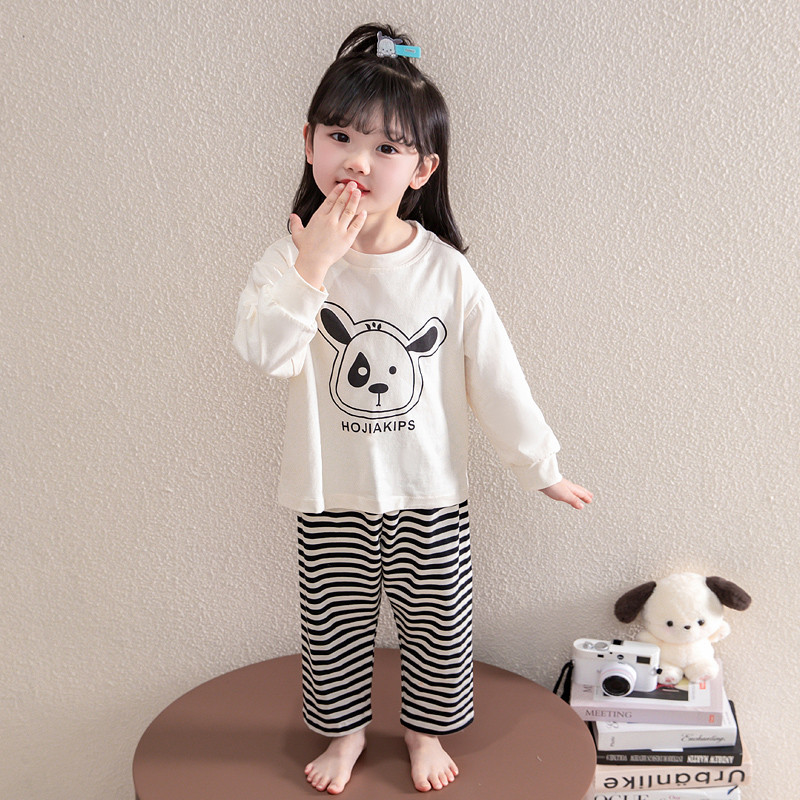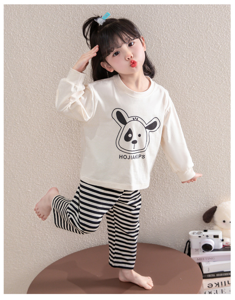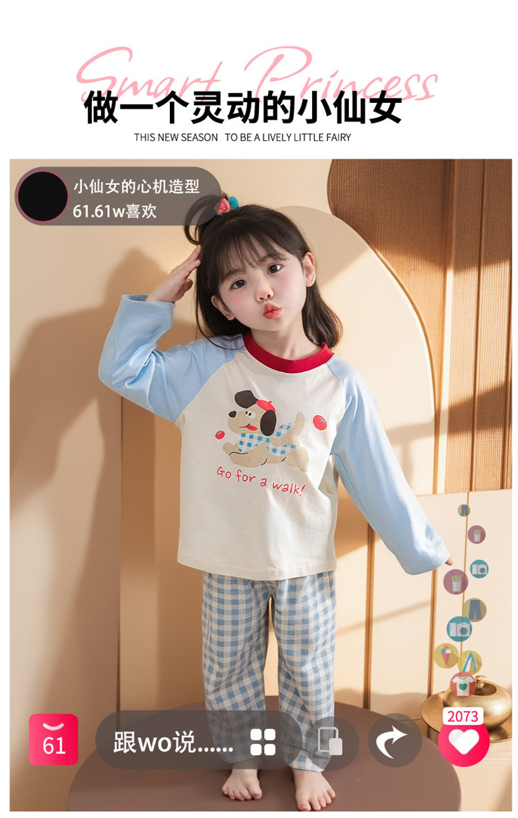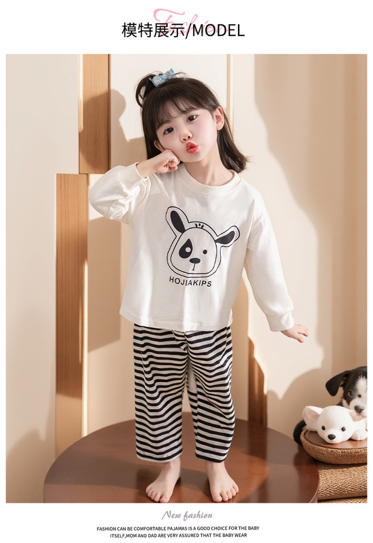소녀 순면 잠옷 봄과 가을 어린 소녀와 아기를위한 긴 소매 속옷 세트 봄과 여름 얇은 어린이 집 옷스토어 가기