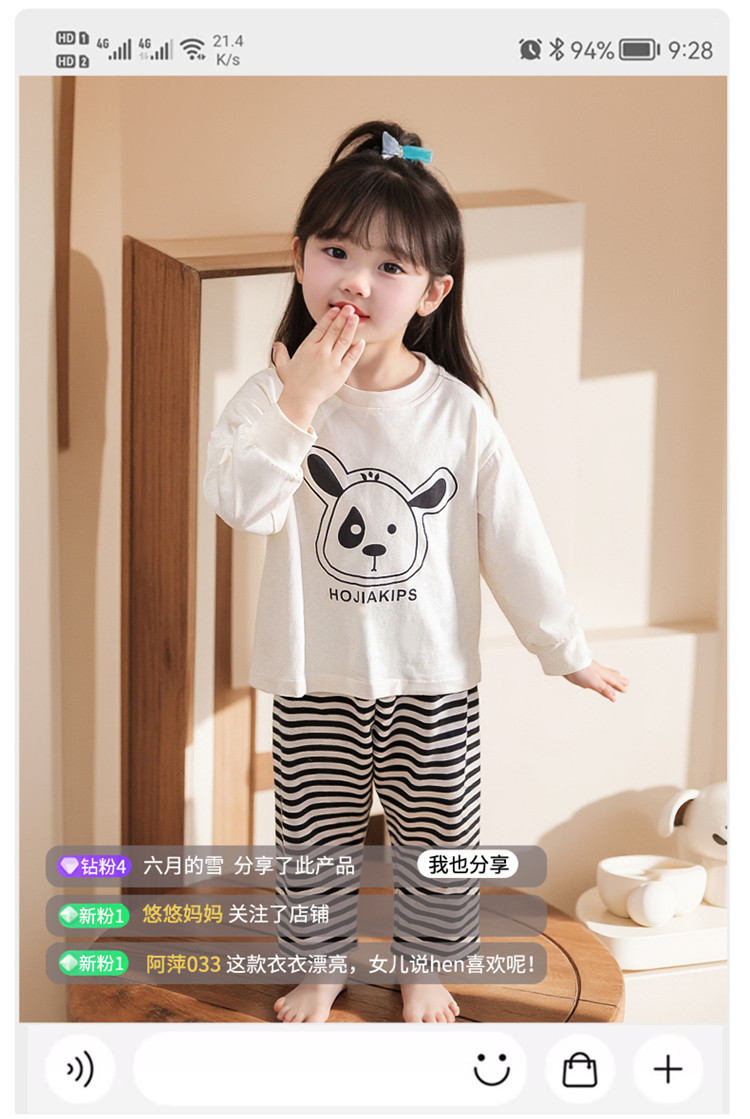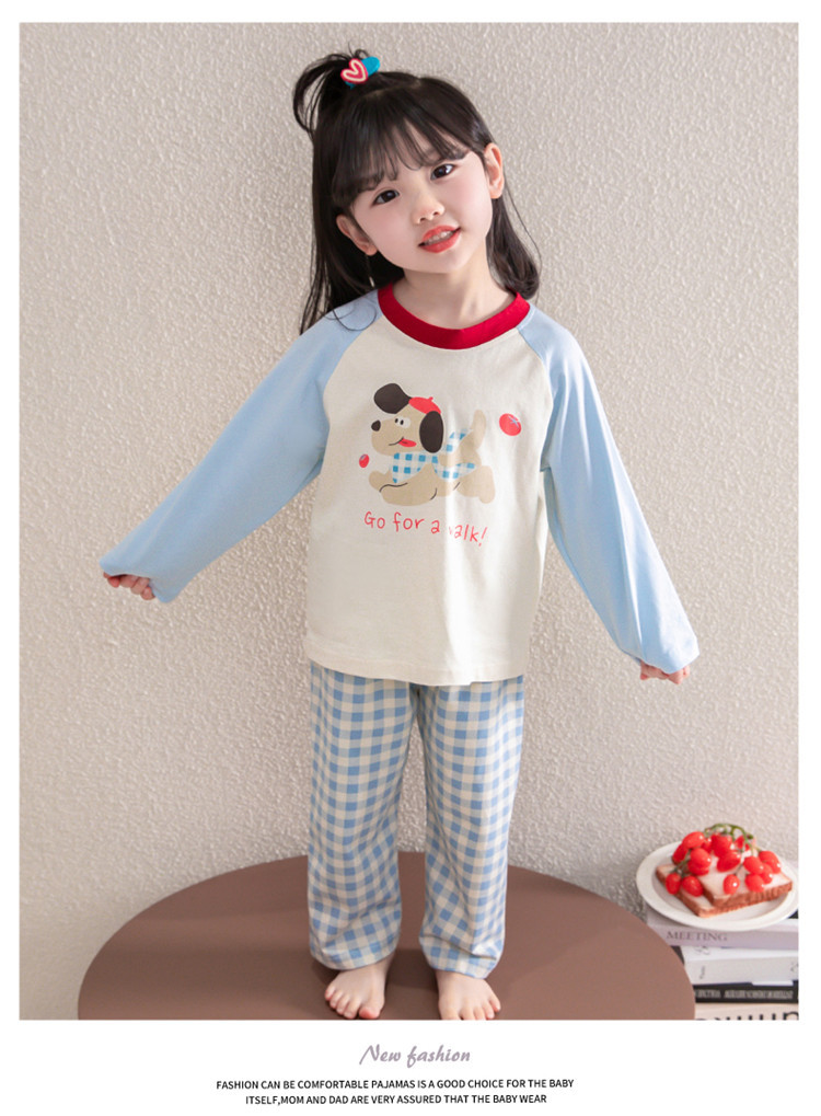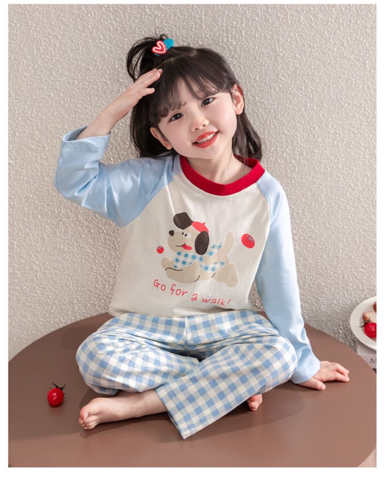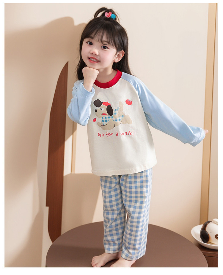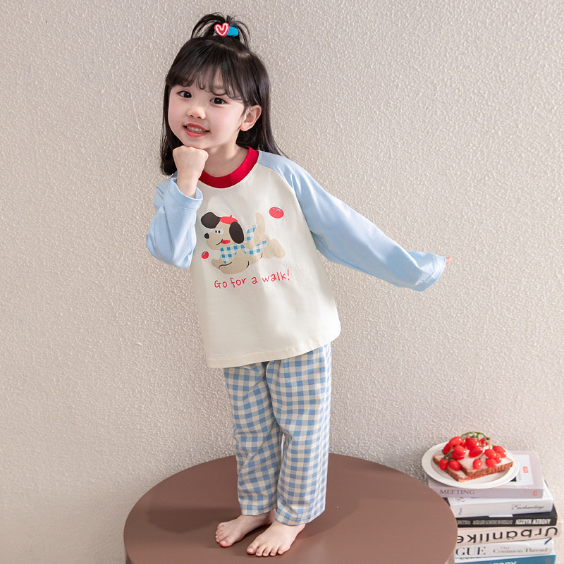 소녀 순면 잠옷 봄과 가을 어린 소녀와 아기를위한 긴 소매 속옷 세트 봄과 여름 얇은 어린이 집 옷스토어 가기