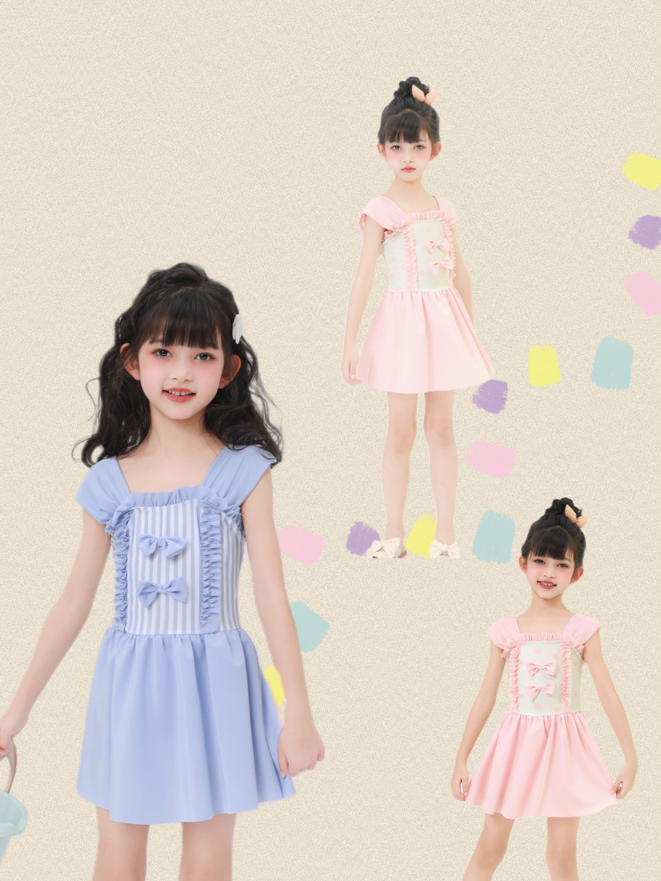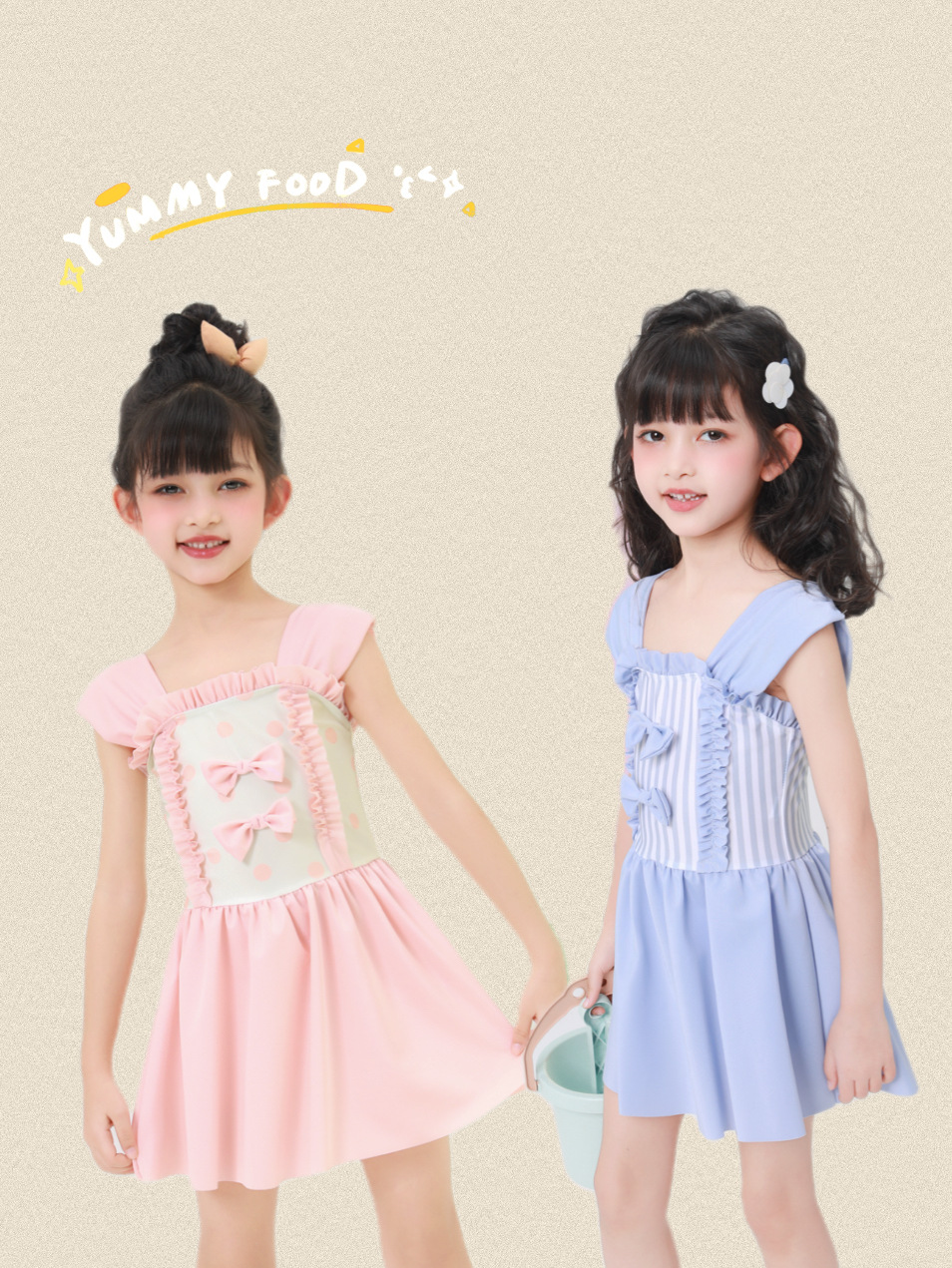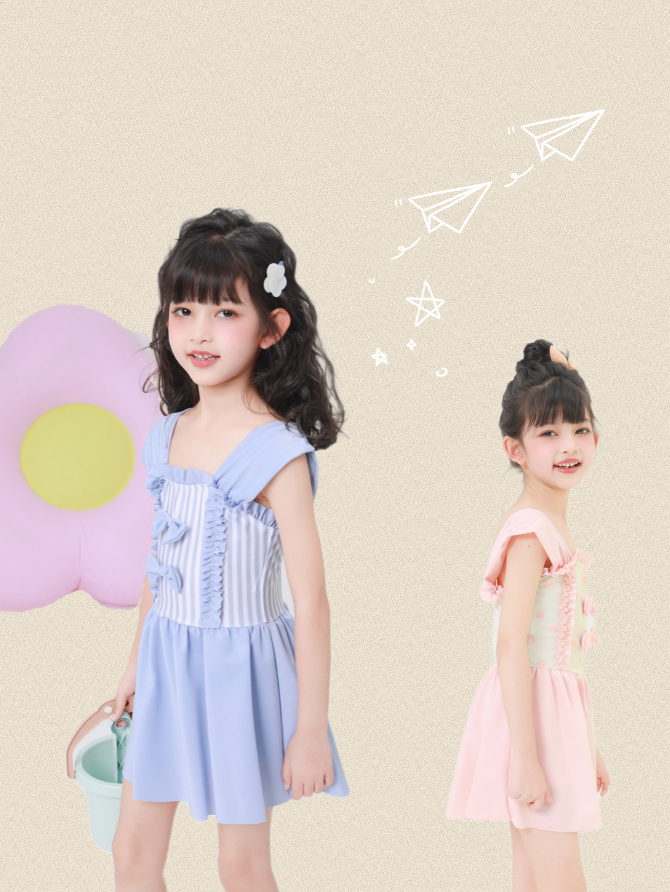 어린이 수영복 소녀 중소 어린이 신선한 한국 줄무늬 공주 치마 소녀 온천 수영복 전문 도매