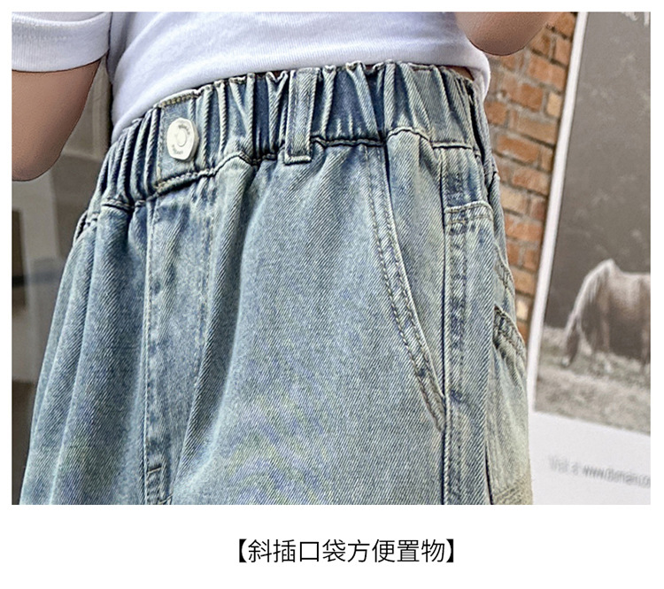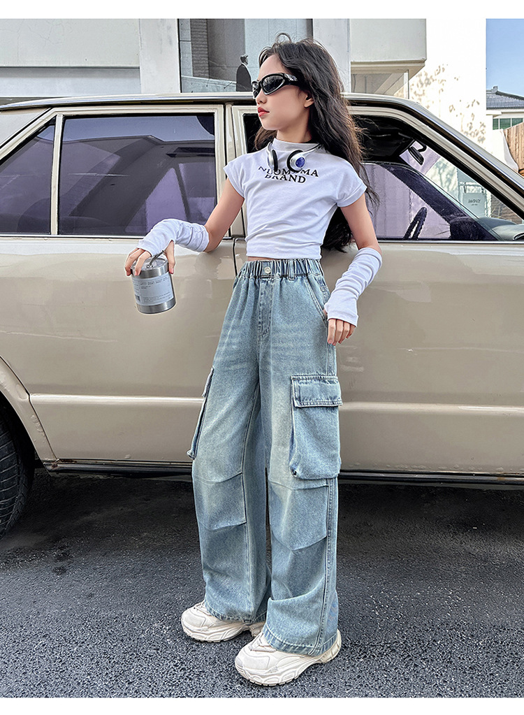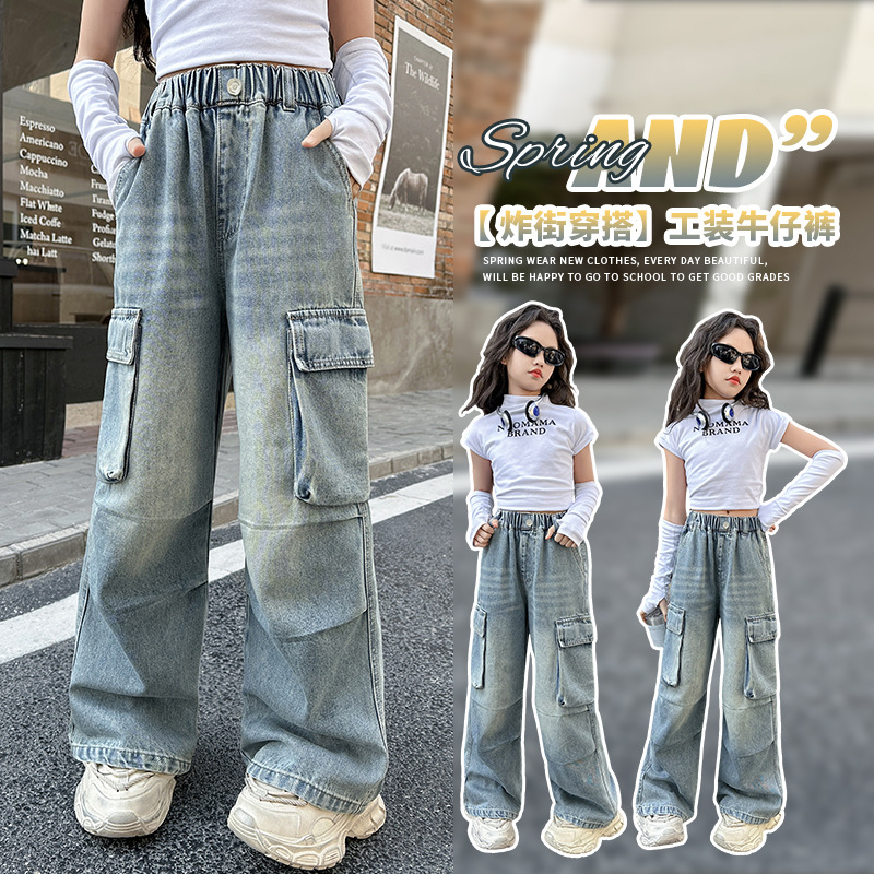 대외 무역 어린이 바지 2025 봄 새로운 소녀 작업 청바지 단색 패션 바지 한국 머리 세대스토어 가기