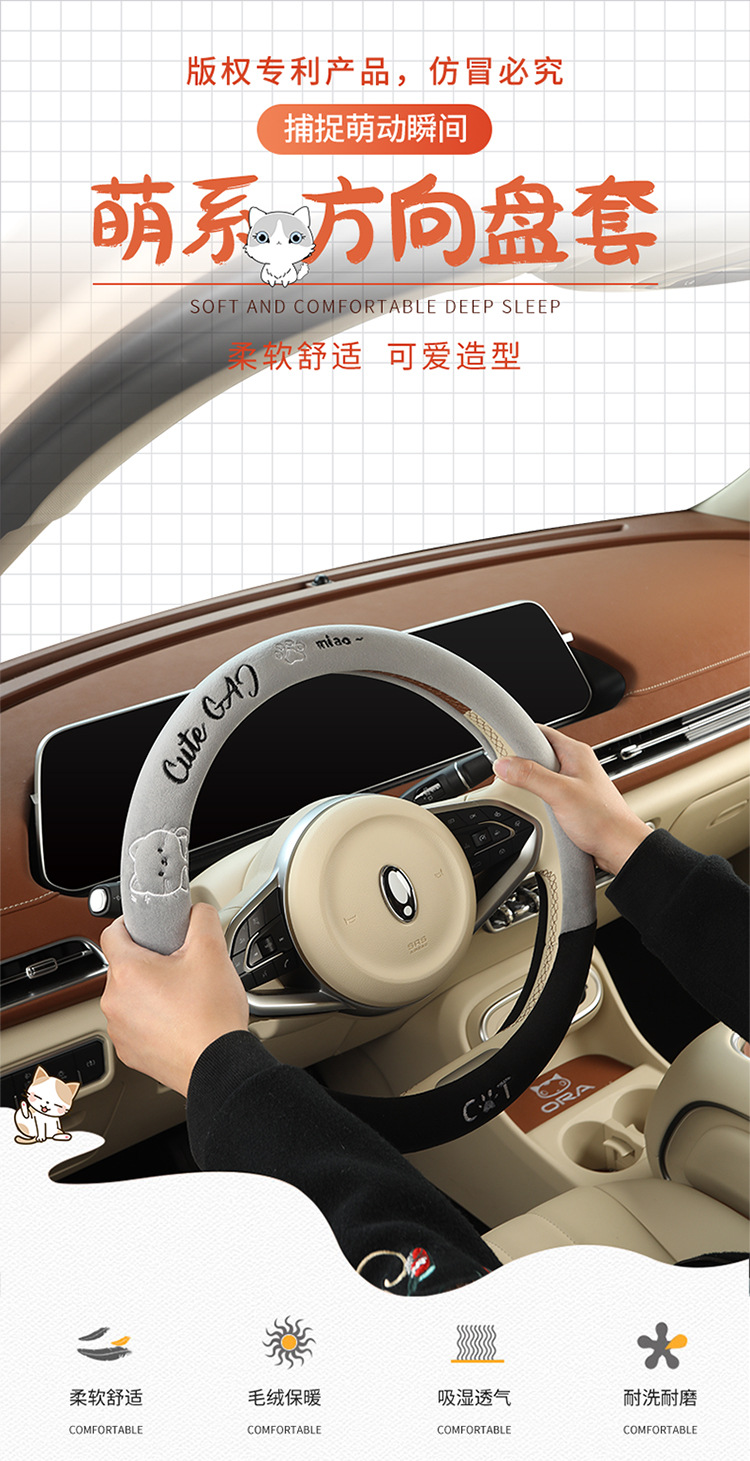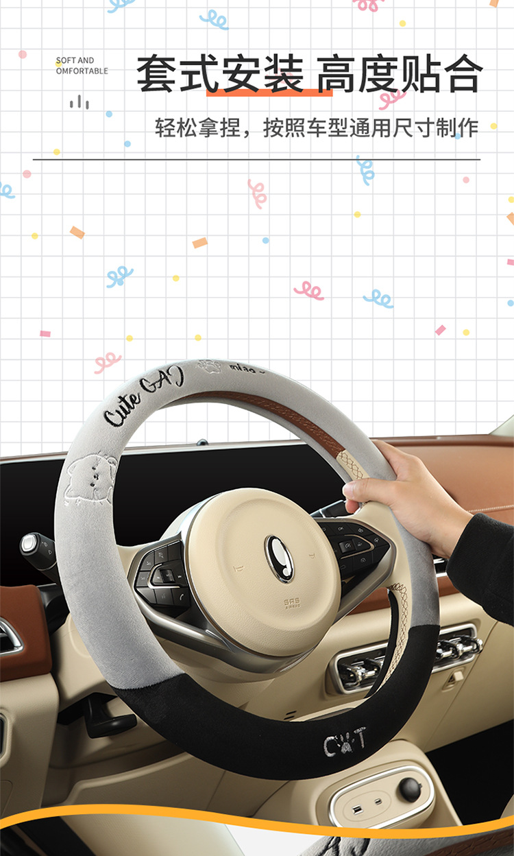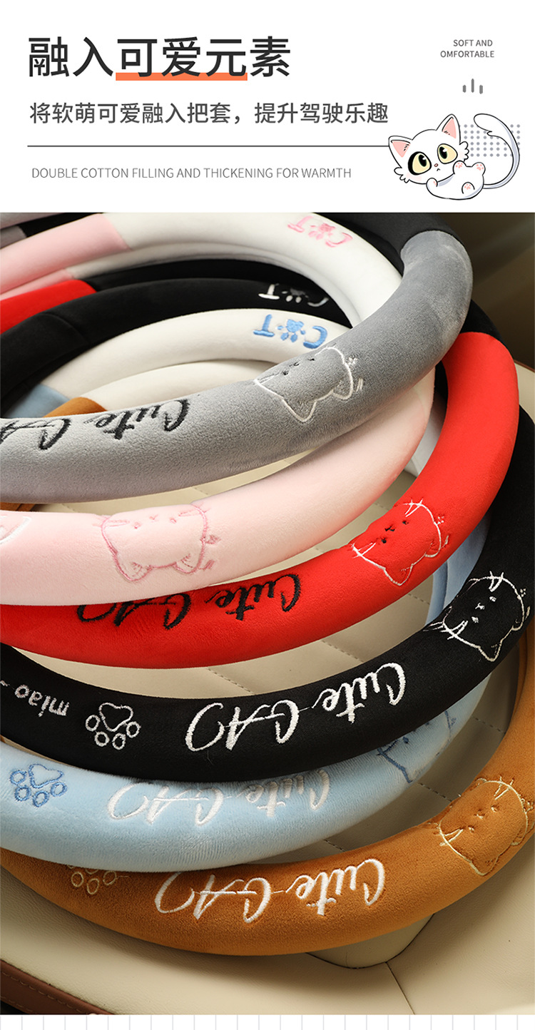 2025 새로운 귀여운 고양이 봉제 겨울 자동차 스티어링 휠 커버 공장 헤어 세대의 직접 판매스토어 가기