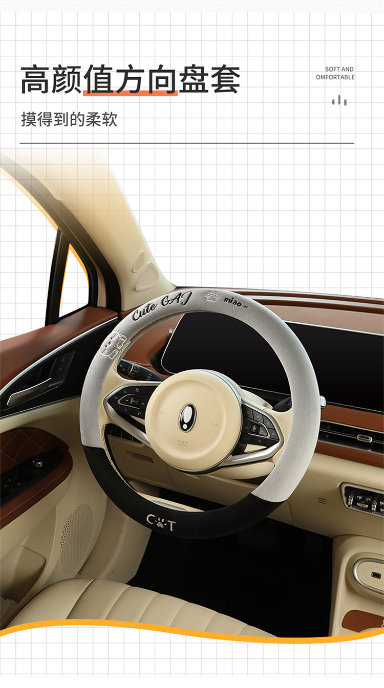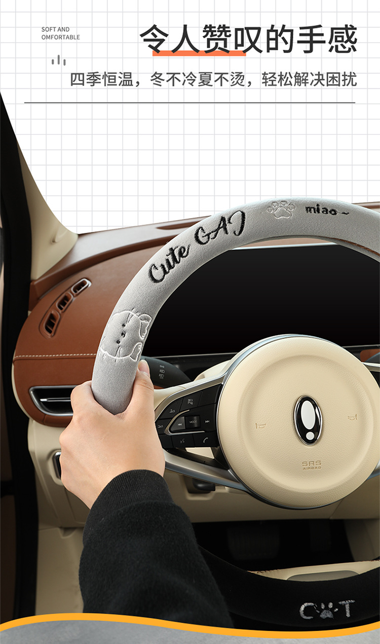 2025 새로운 귀여운 고양이 봉제 겨울 자동차 스티어링 휠 커버 공장 헤어 세대의 직접 판매