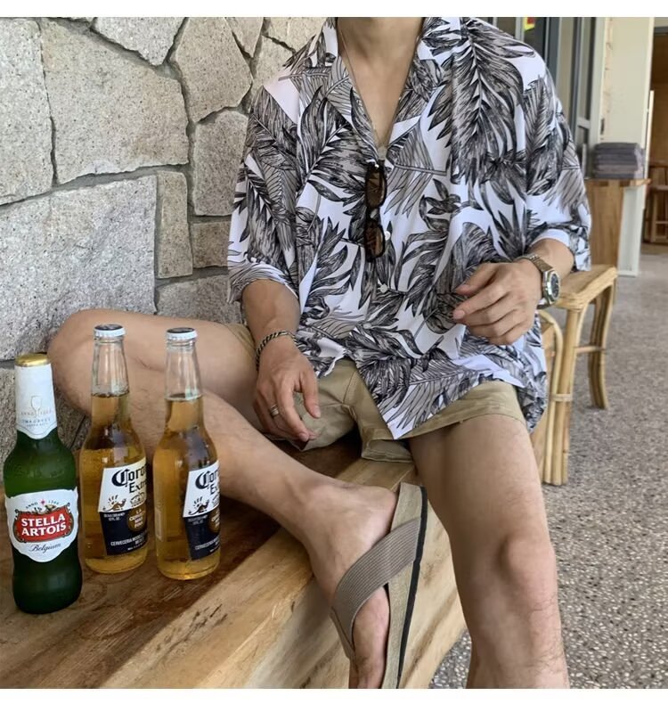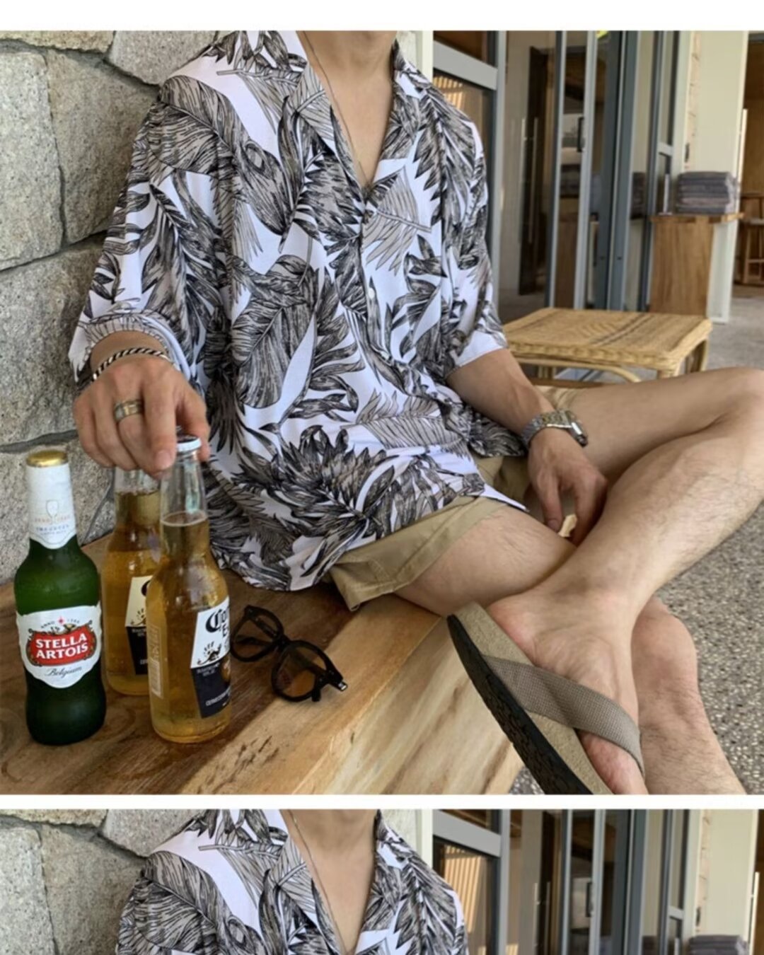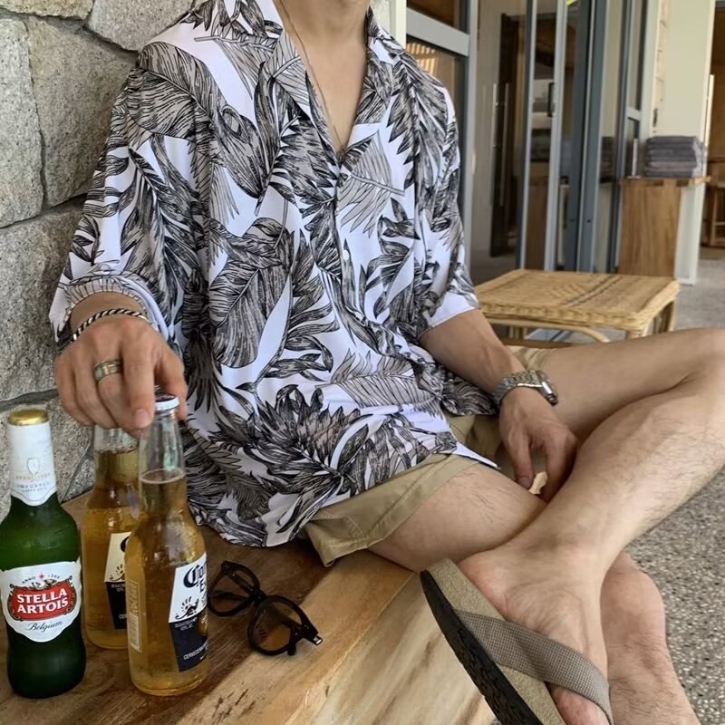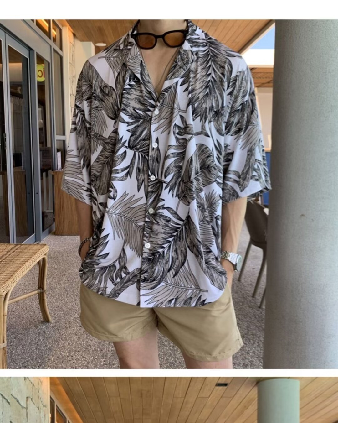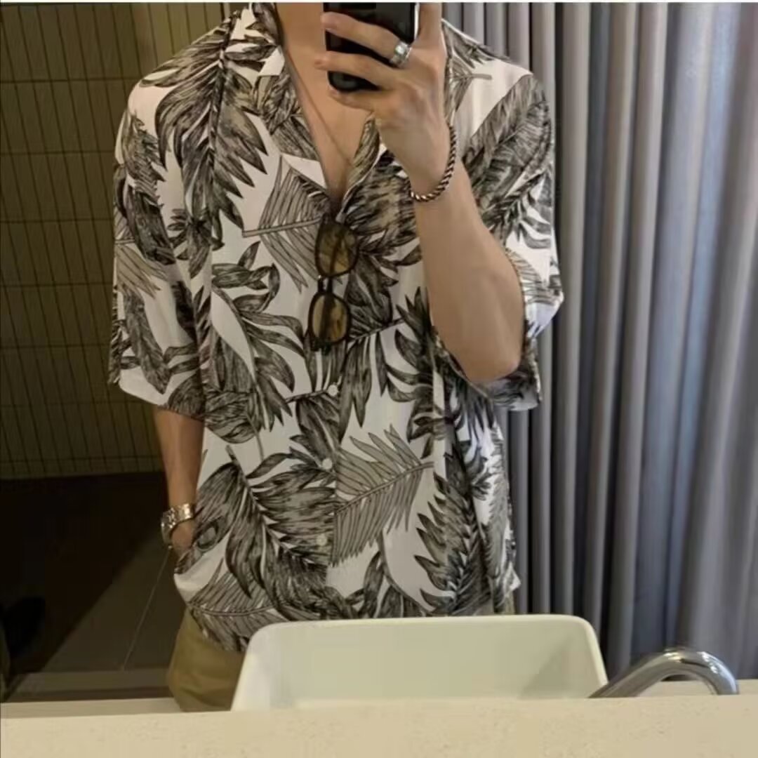 여름 꽃 셔츠 남자 2025 여름 새로운 도착 푹신한 잘생긴 7 점 소매 느슨한 셔츠 비치 하와이 셔츠 남성복스토어 가기