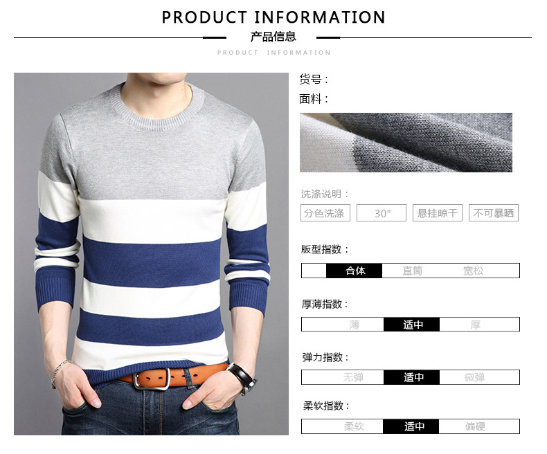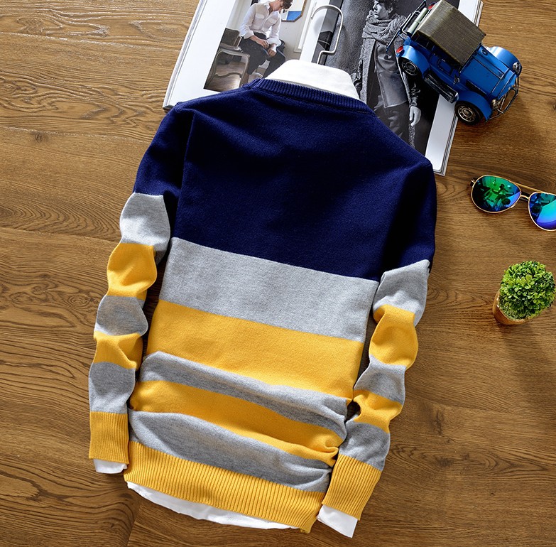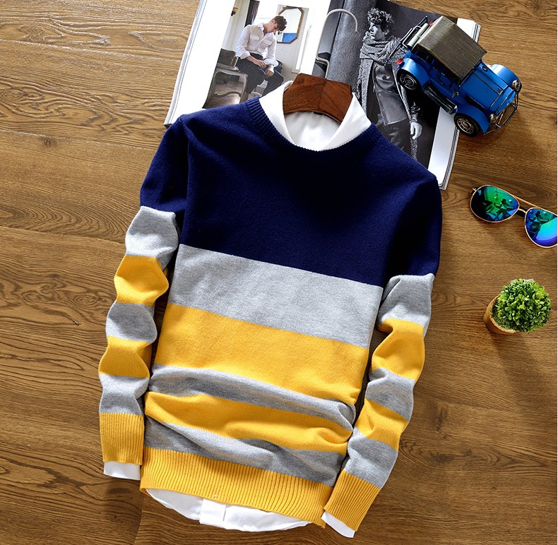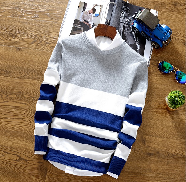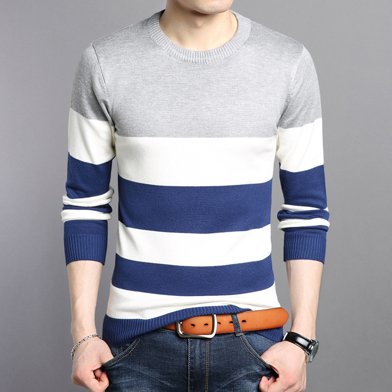 2025 봄과 가을 새로운 남자 스웨터 패션 트렌드 한국 풀오버 크루 넥 스트라이프 남자 스웨터스토어 가기