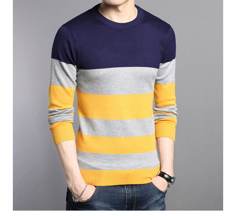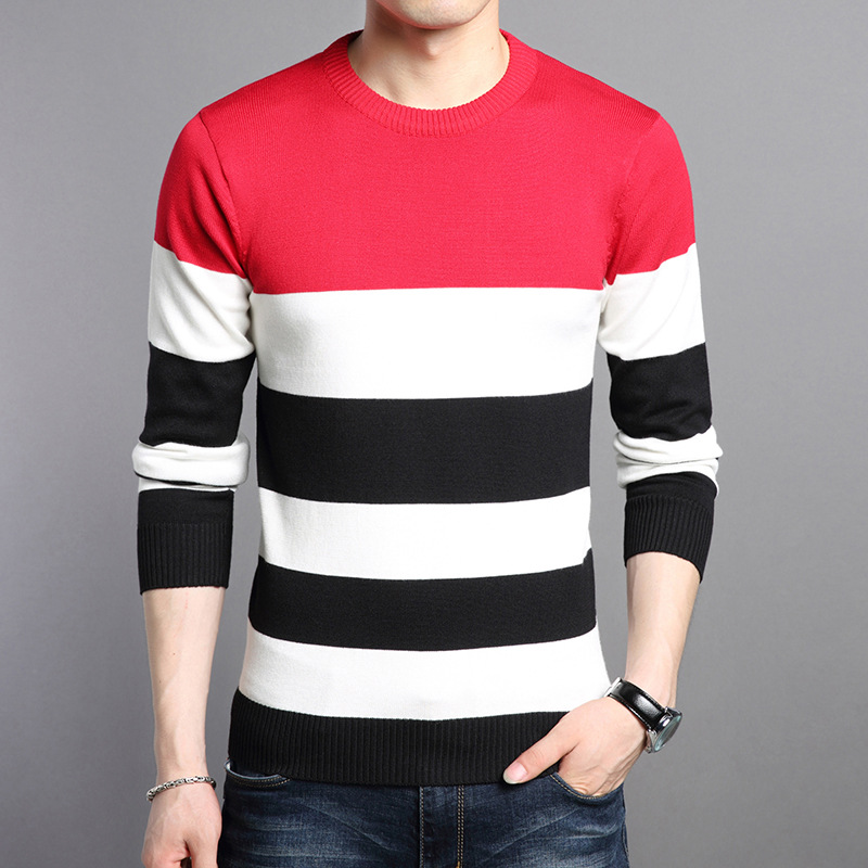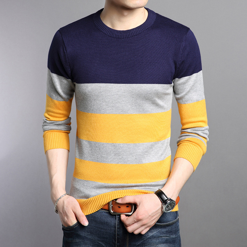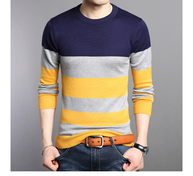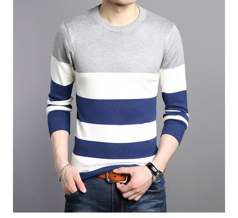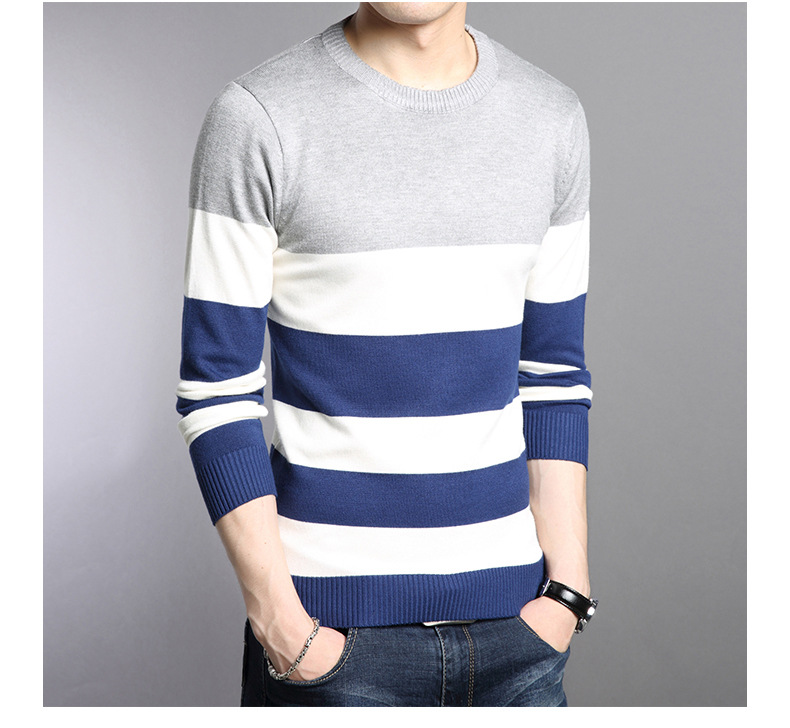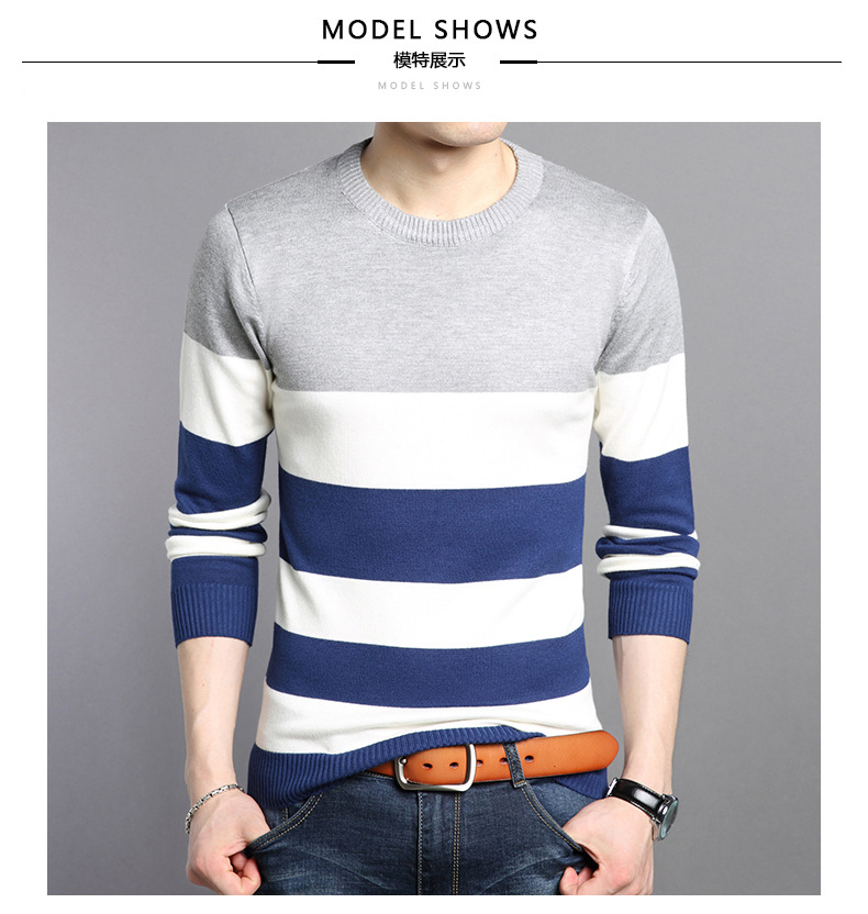 2025 봄과 가을 새로운 남자 스웨터 패션 트렌드 한국 풀오버 크루 넥 스트라이프 남자 스웨터