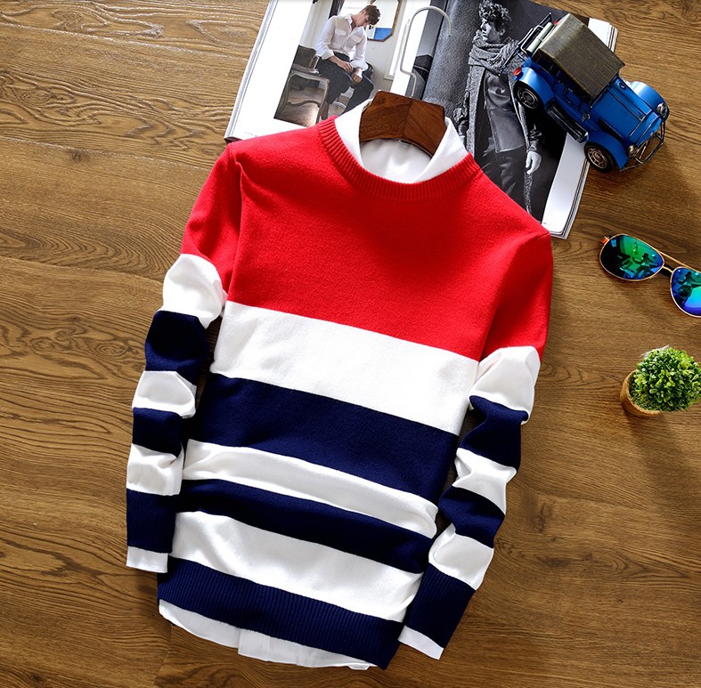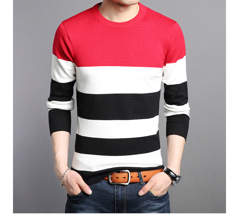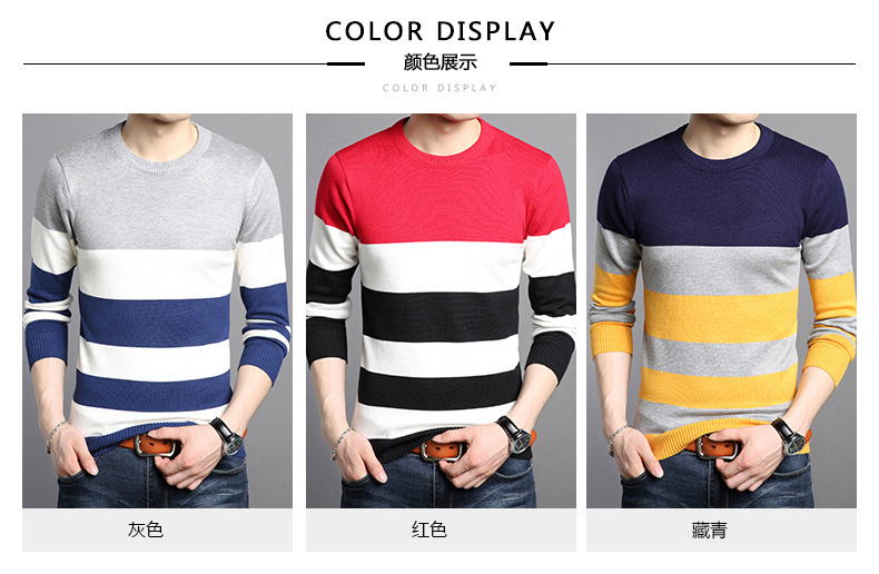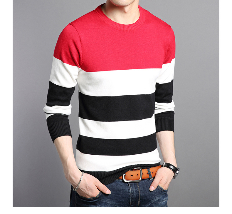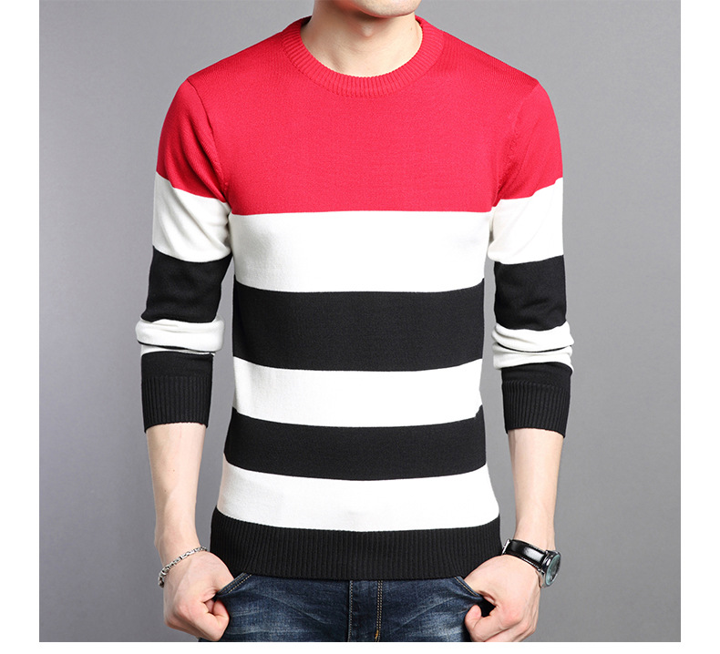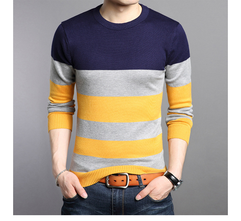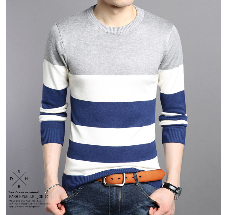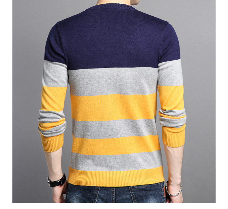 2025 봄과 가을 새로운 남자 스웨터 패션 트렌드 한국 풀오버 크루 넥 스트라이프 남자 스웨터