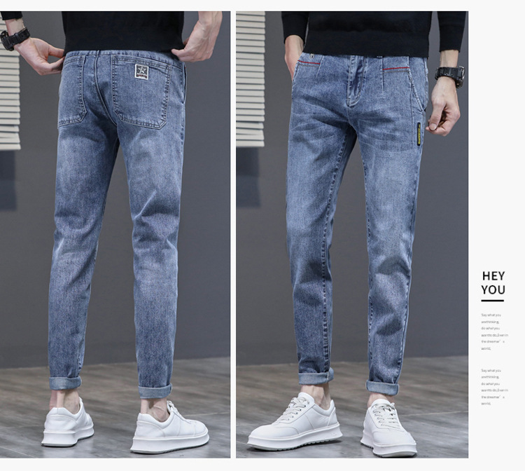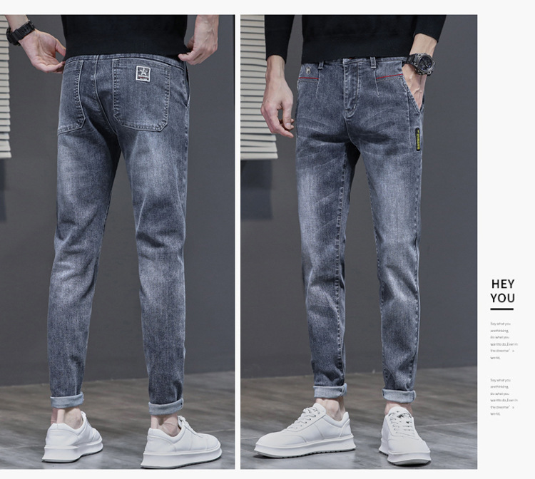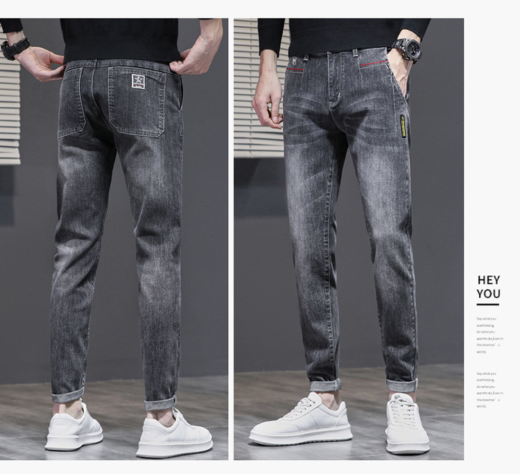 2025 새로운 남성 청바지 슬림 피트 하이 엔드 블루 그레이 세탁 캐주얼 바지 세대의 소리를 흔들어스토어 가기