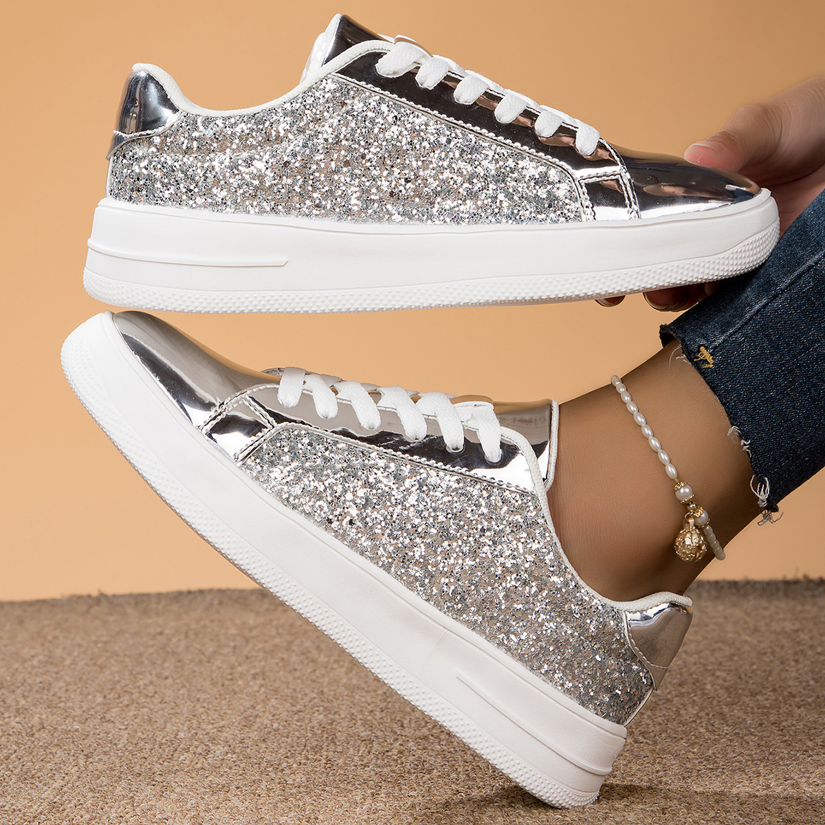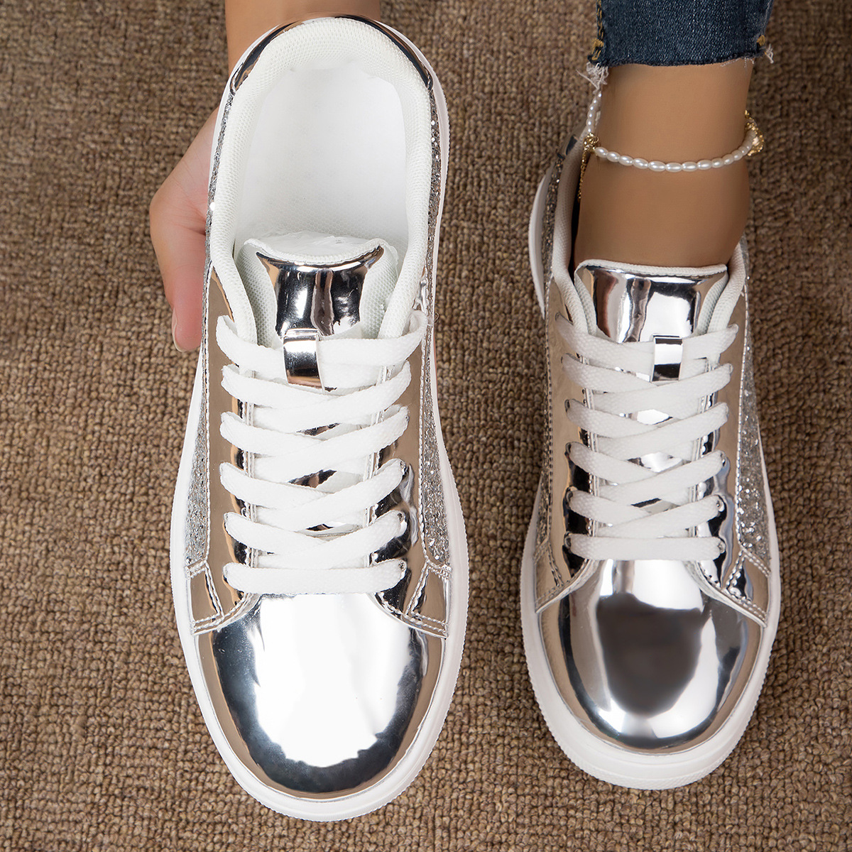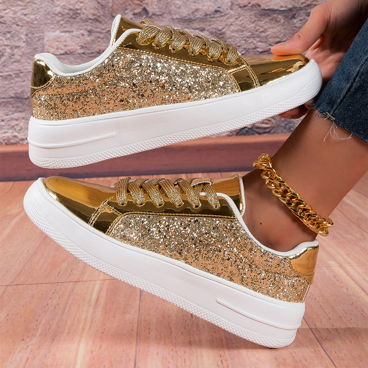대외 무역 경량 여성 신발 형광 골드 및 실버 편안한 여성 신발 패션 운동화 국경 여성 신발 패션 캐주얼 보드 신발