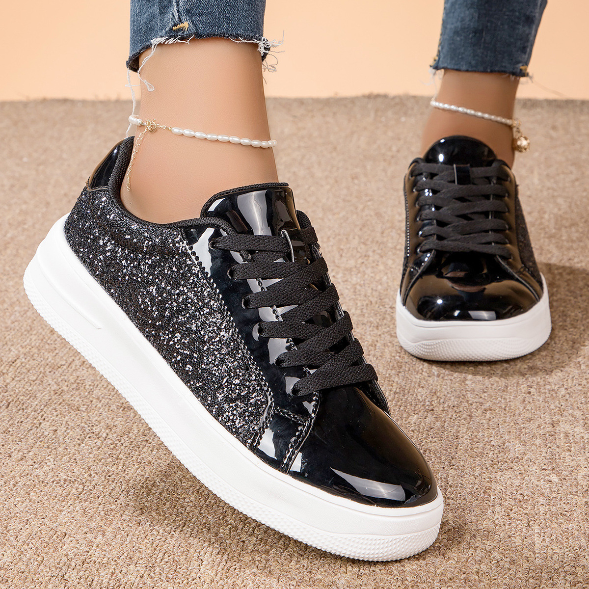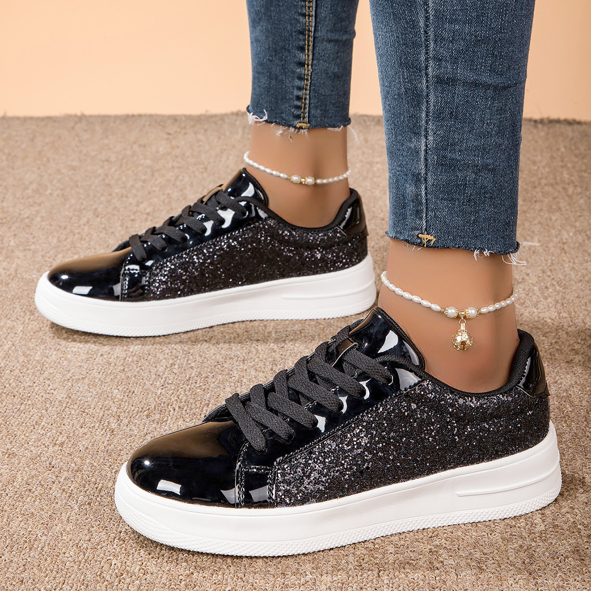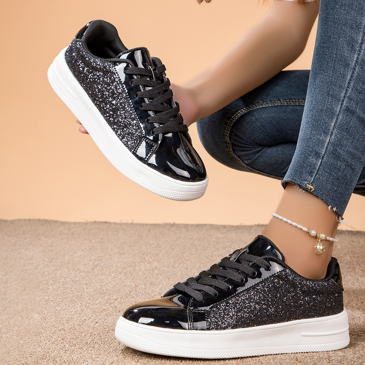 대외 무역 경량 여성 신발 형광 골드 및 실버 편안한 여성 신발 패션 운동화 국경 여성 신발 패션 캐주얼 보드 신발