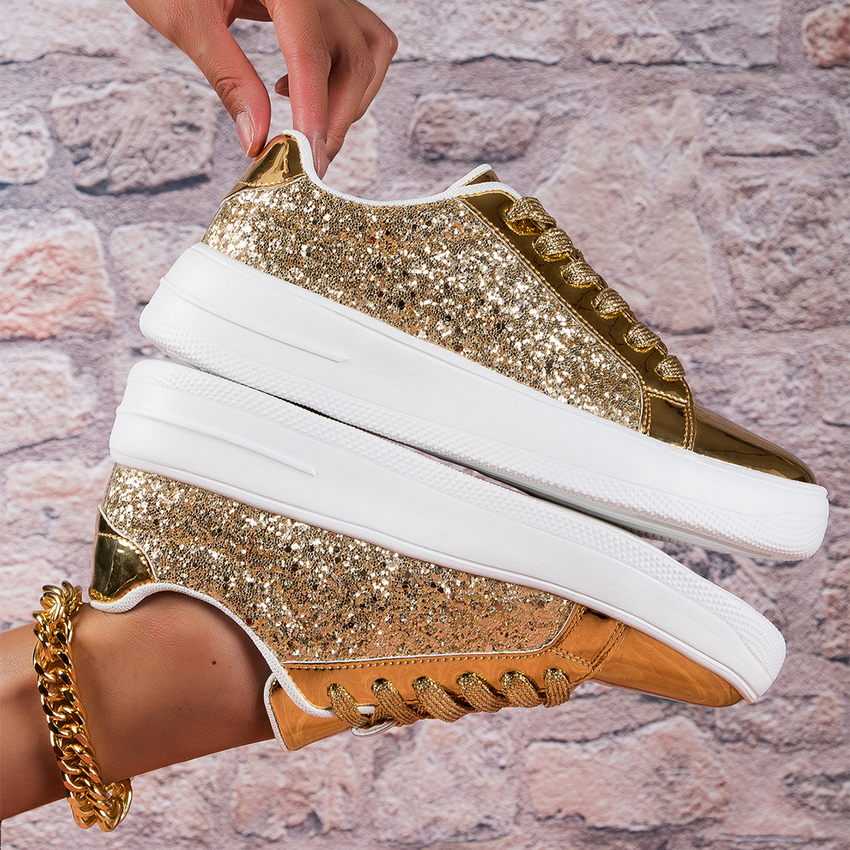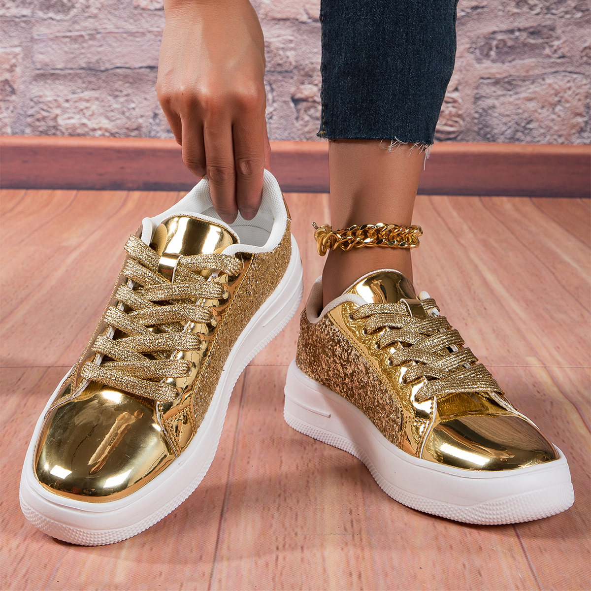 대외 무역 경량 여성 신발 형광 골드 및 실버 편안한 여성 신발 패션 운동화 국경 여성 신발 패션 캐주얼 보드 신발스토어 가기