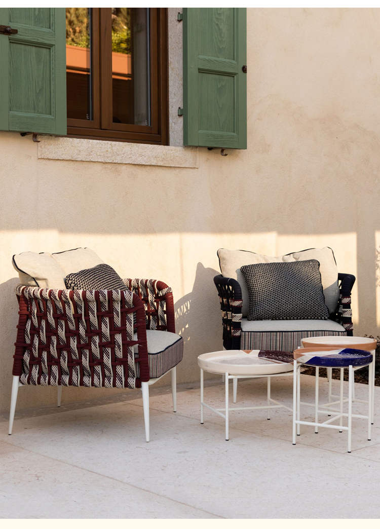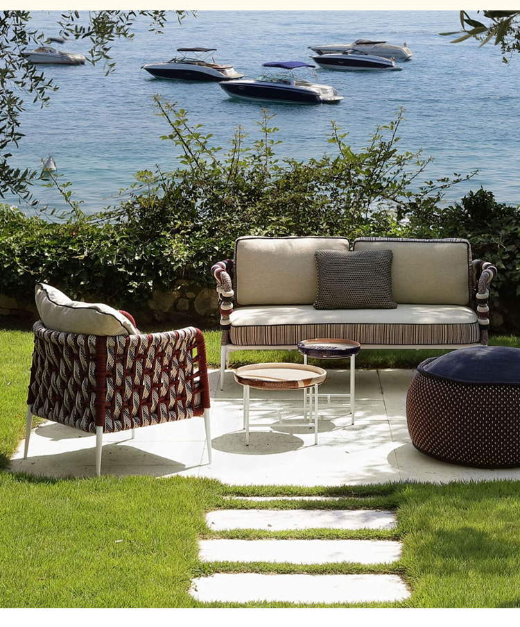 야외 소파 코트야드 가든 호텔 야외 야외 방수 선 스크린 빌라 테라스 창조적 인 등나무 가구 조합