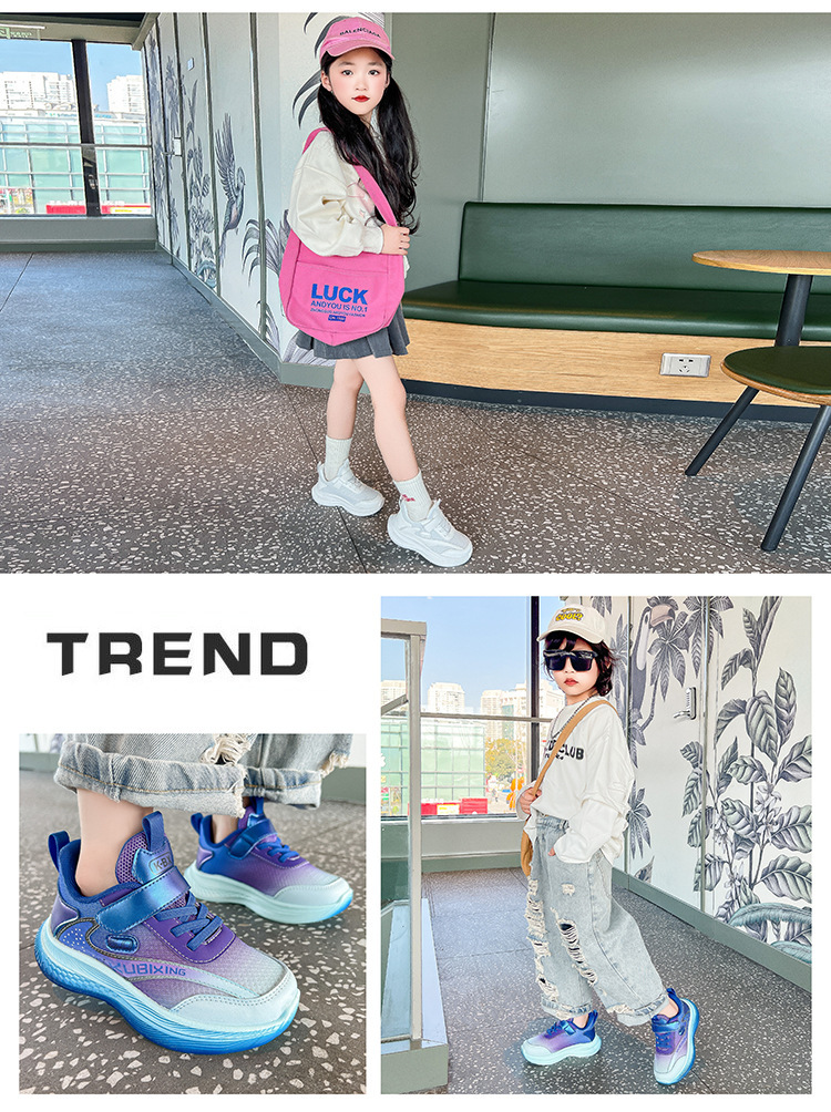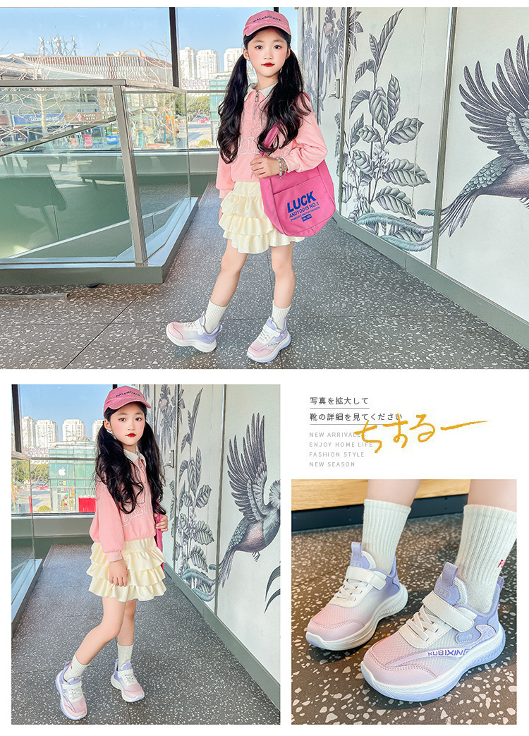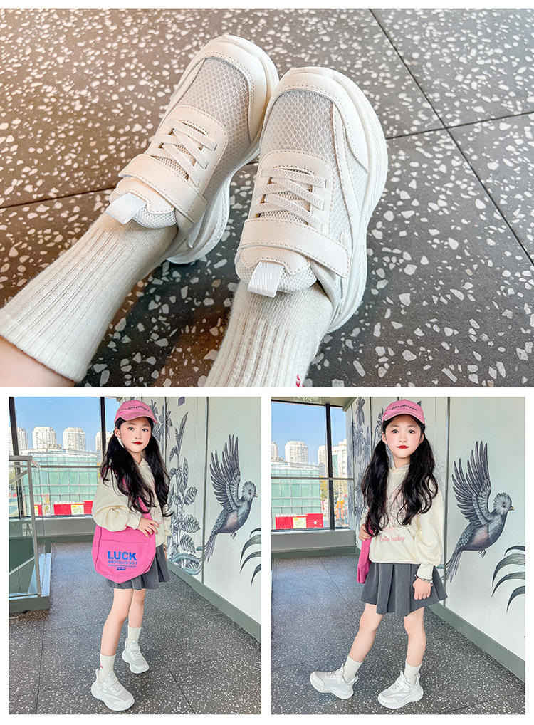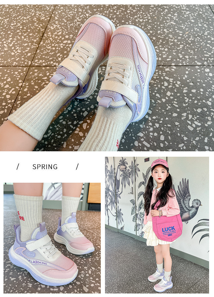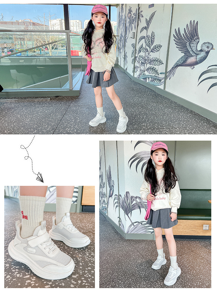 Four Seasons 어린이 운동화 메쉬 소프트 솔 봄 및 가을 새 스타일 빅 보이 걸스 토레 신발 경량 소년 런닝 신발