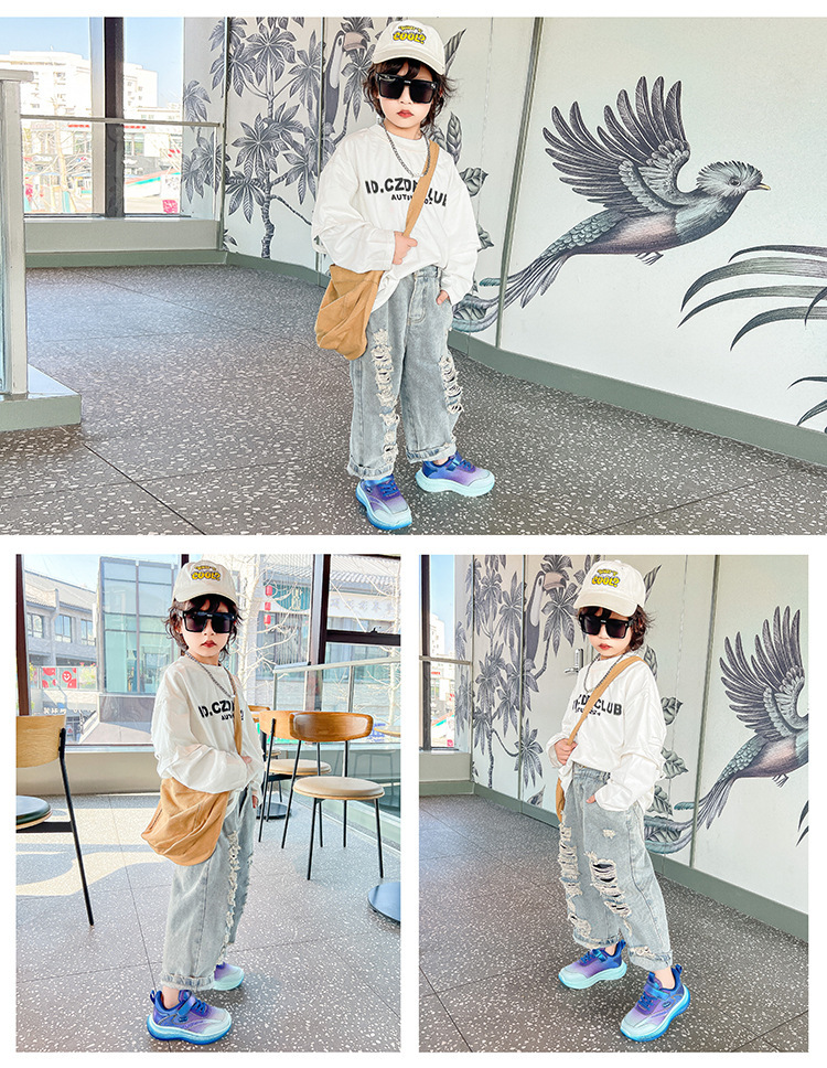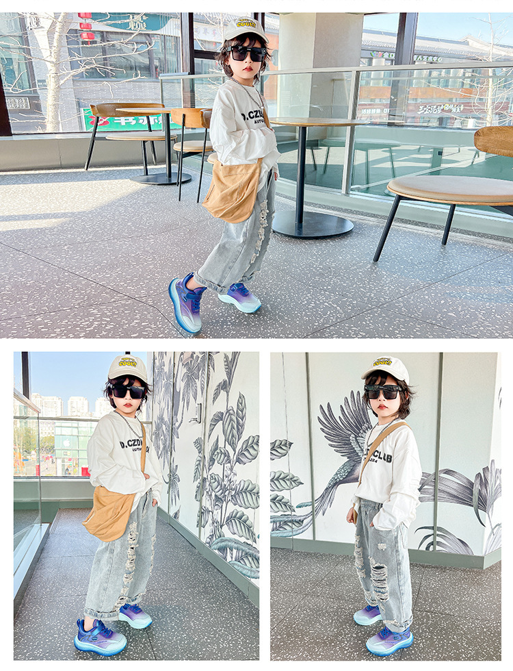 Four Seasons 어린이 운동화 메쉬 소프트 솔 봄 및 가을 새 스타일 빅 보이 걸스 토레 신발 경량 소년 런닝 신발스토어 가기