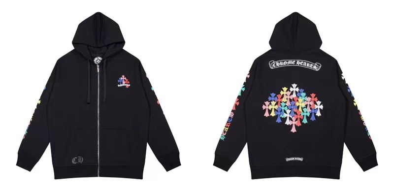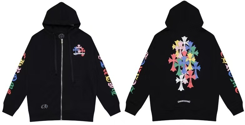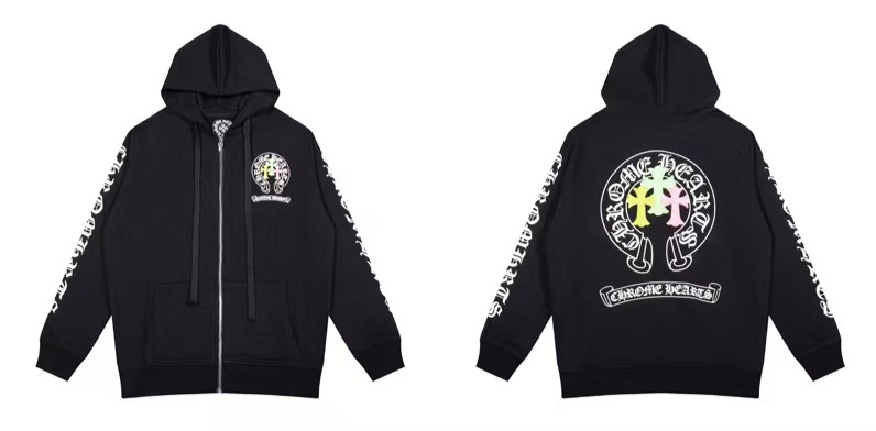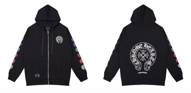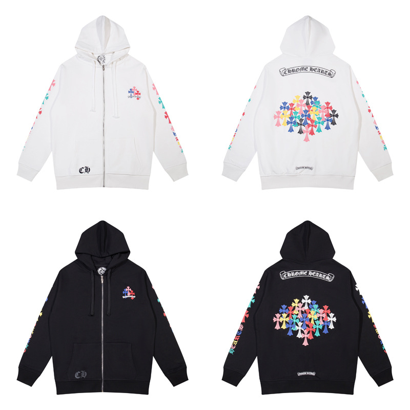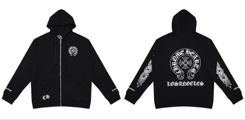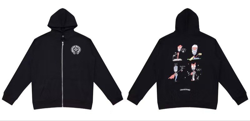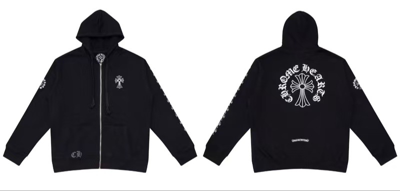 대외 무역 트렌디 브랜드 크롬 하트 그램 루오 순면 테리 지퍼 카디건 후드 스웨터 재고 도매
