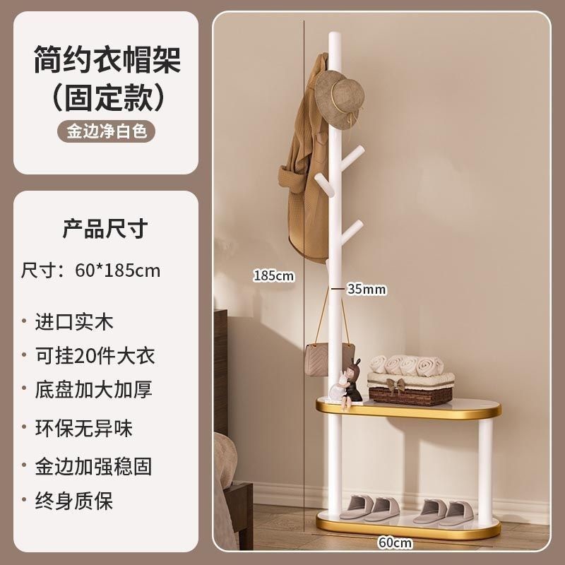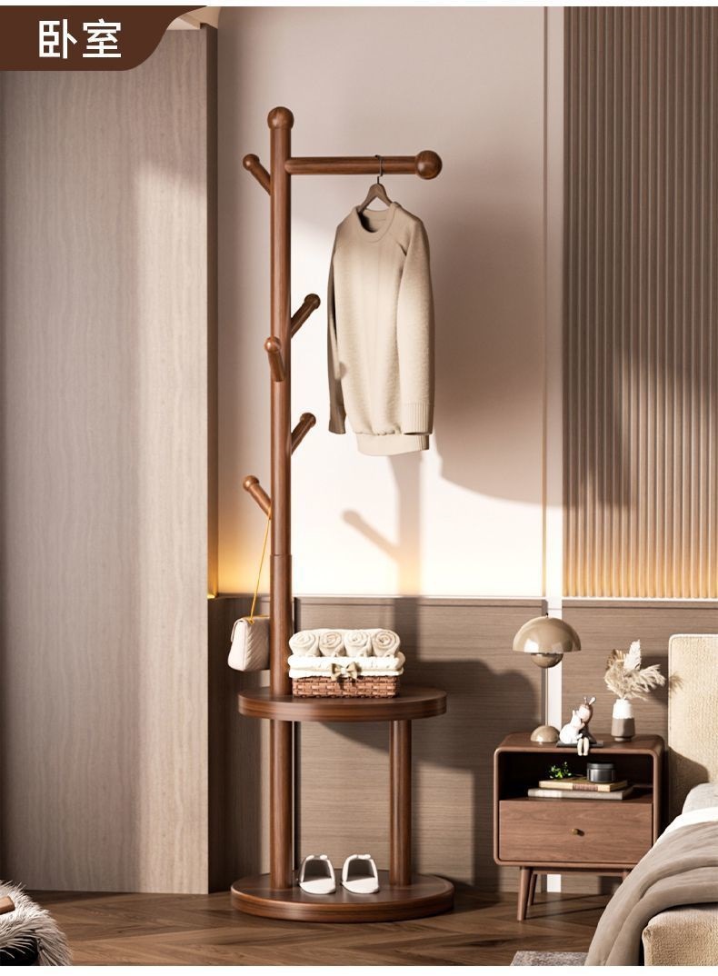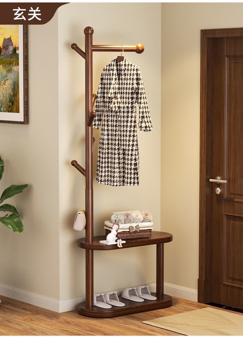 옷 옷걸이 바닥에 서있는 침실 옷걸이 작은 코트 랙은 밤에 옷을위한 공간을 차지하지 않습니다 간단한 단단한 나무 저장 랙