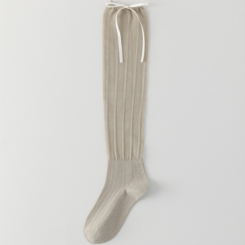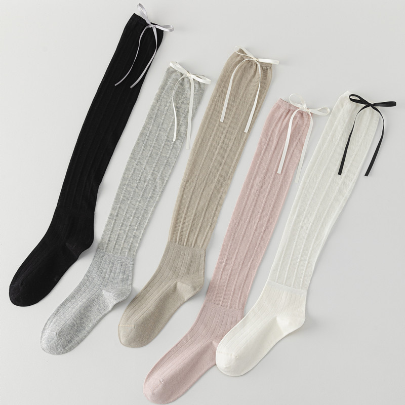 프랑스 스타일 발레 할로우-아웃 중공-다리 양말 여성용 JK 롱 배럴, 부츠 봄과 여름 얇은 달콤한 리본 활 양말