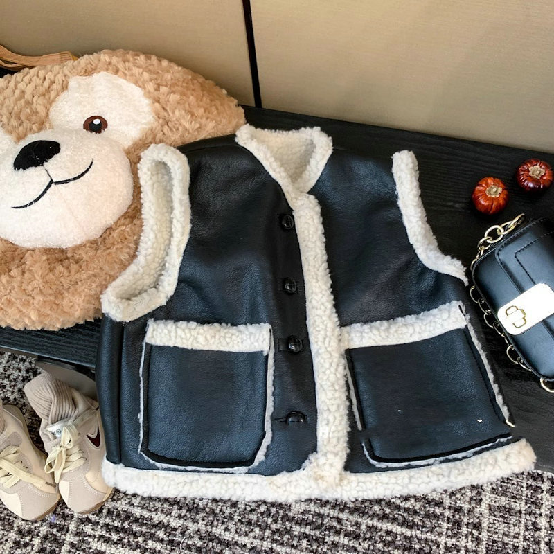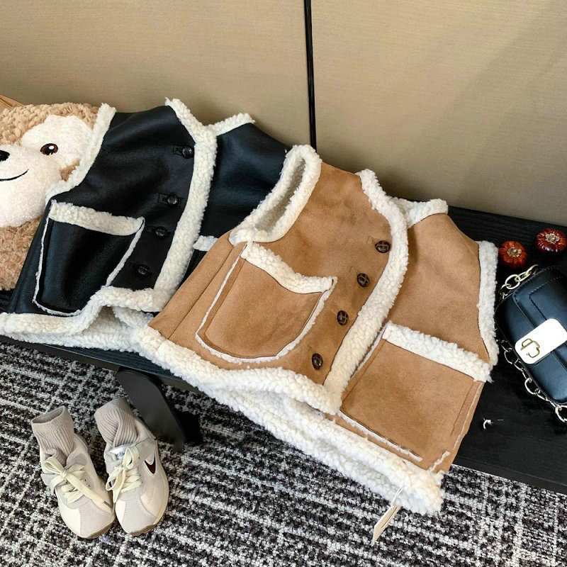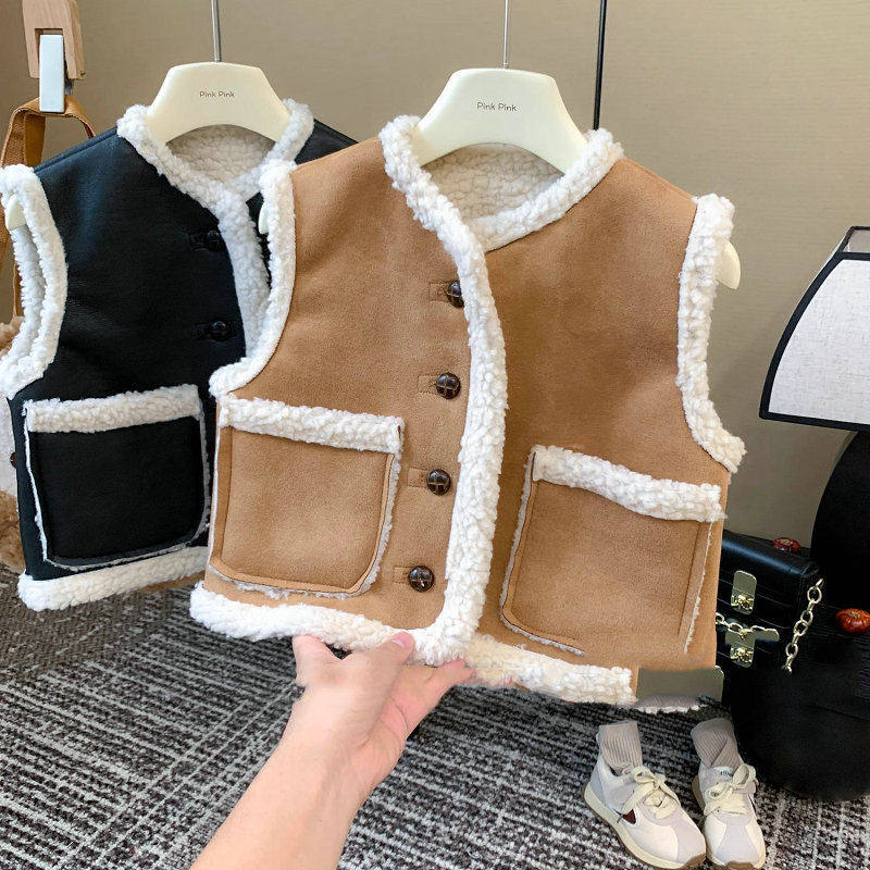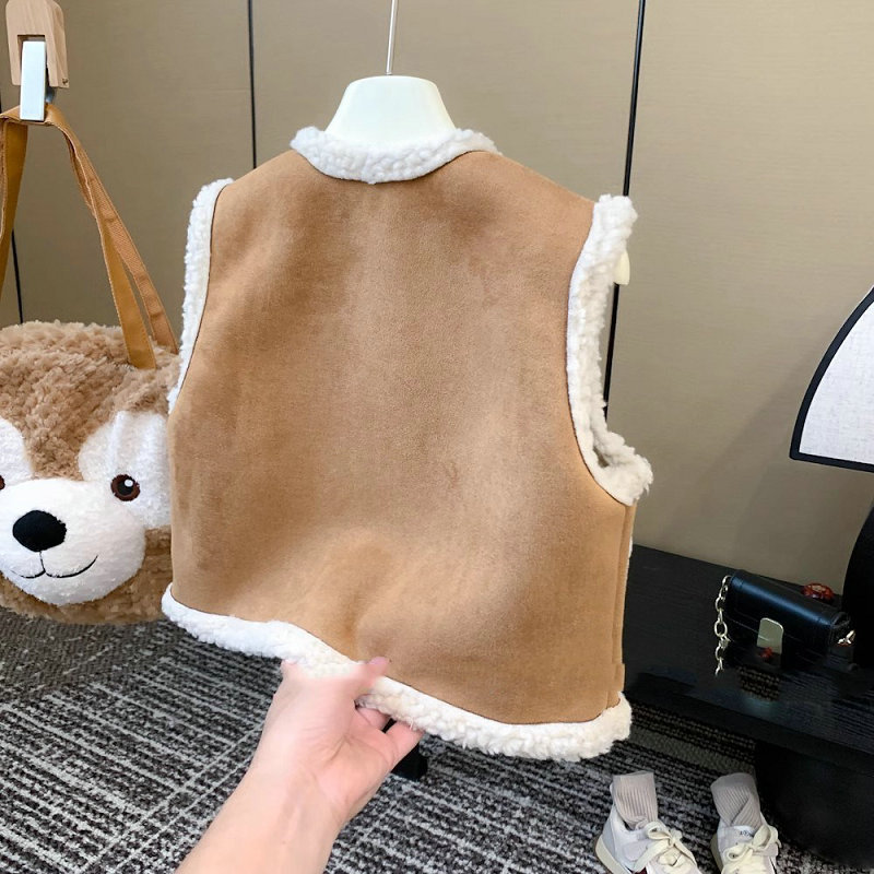 男童女童马甲鹿皮绒复合羊羔绒冬季保暖坎肩上衣2025新款外贸童装스토어 가기
